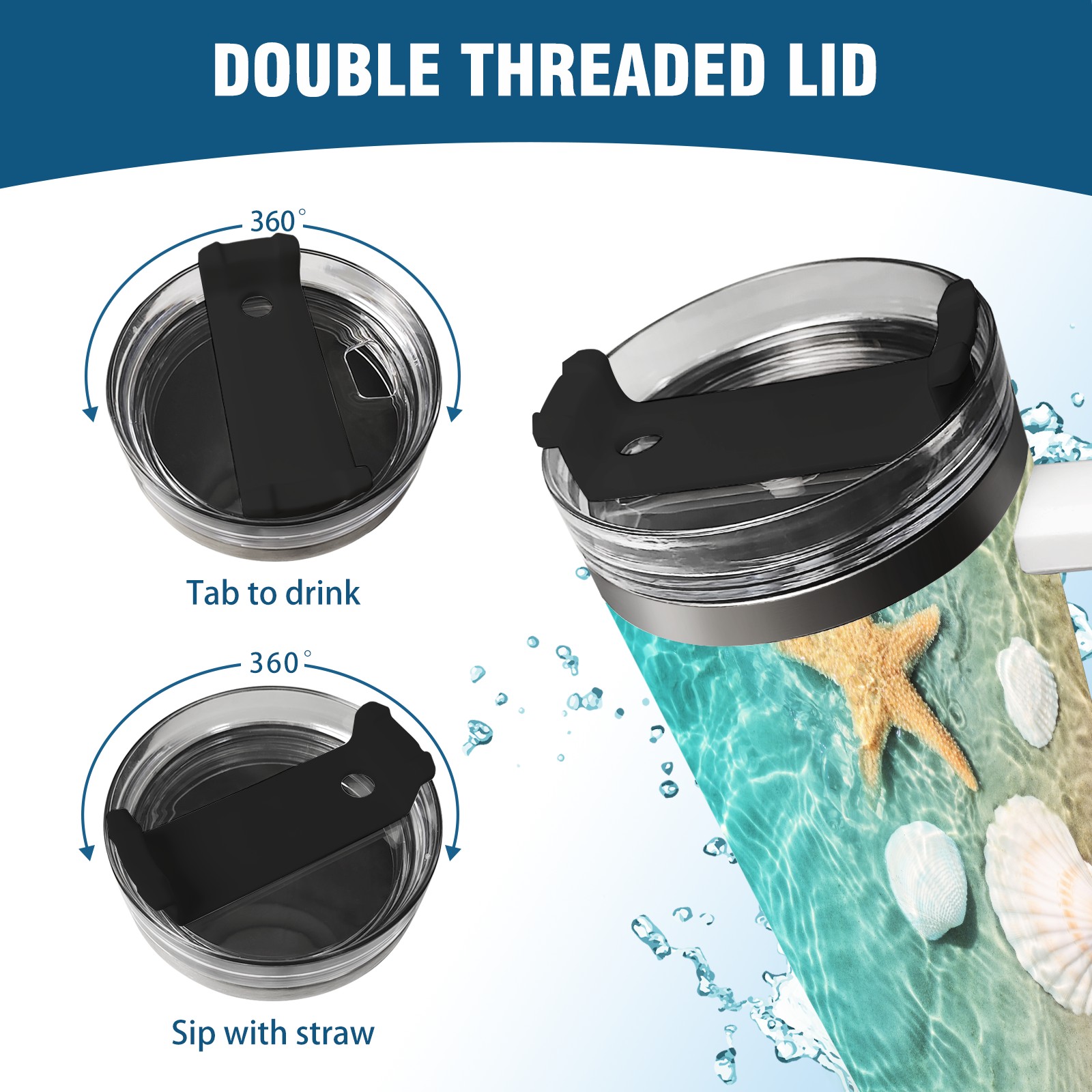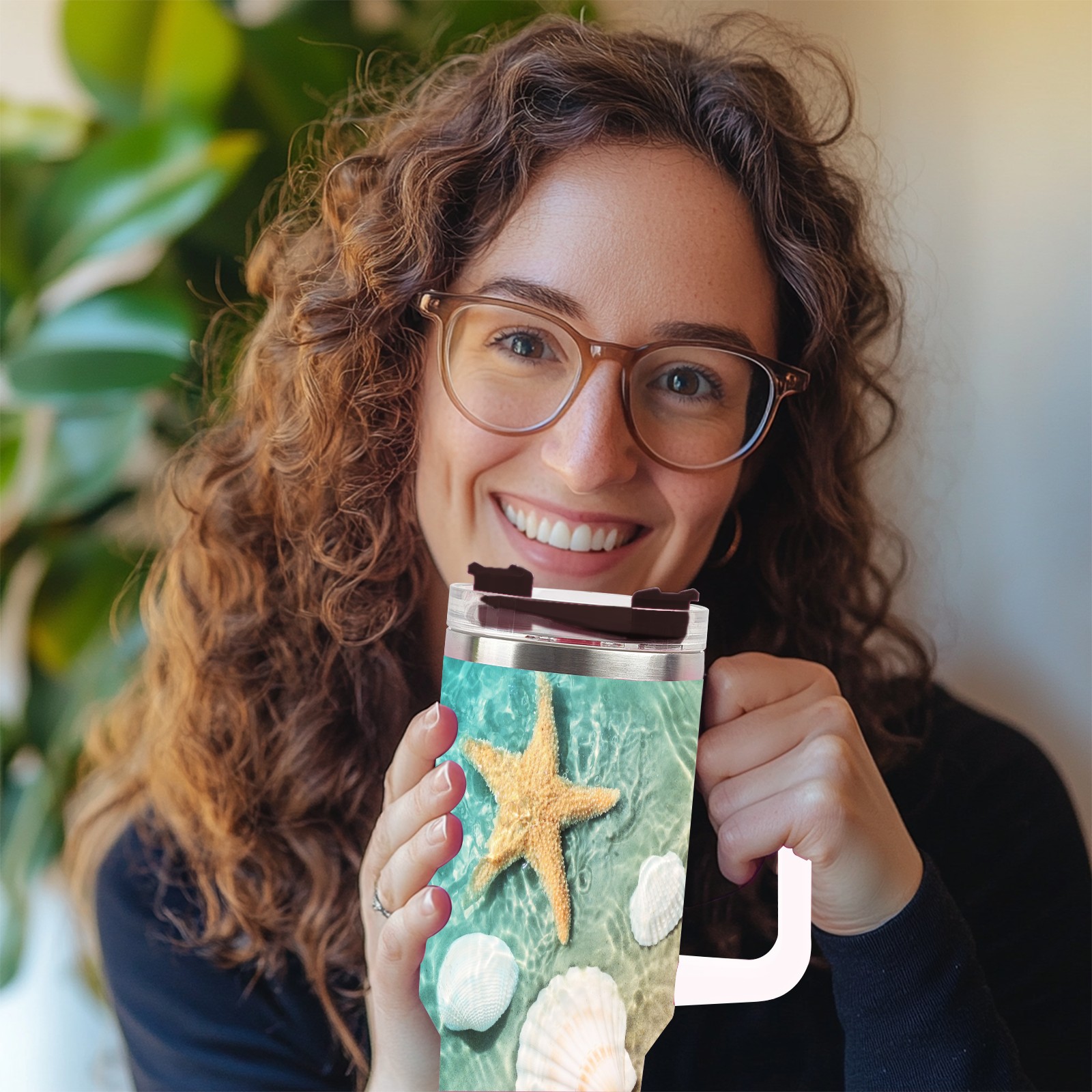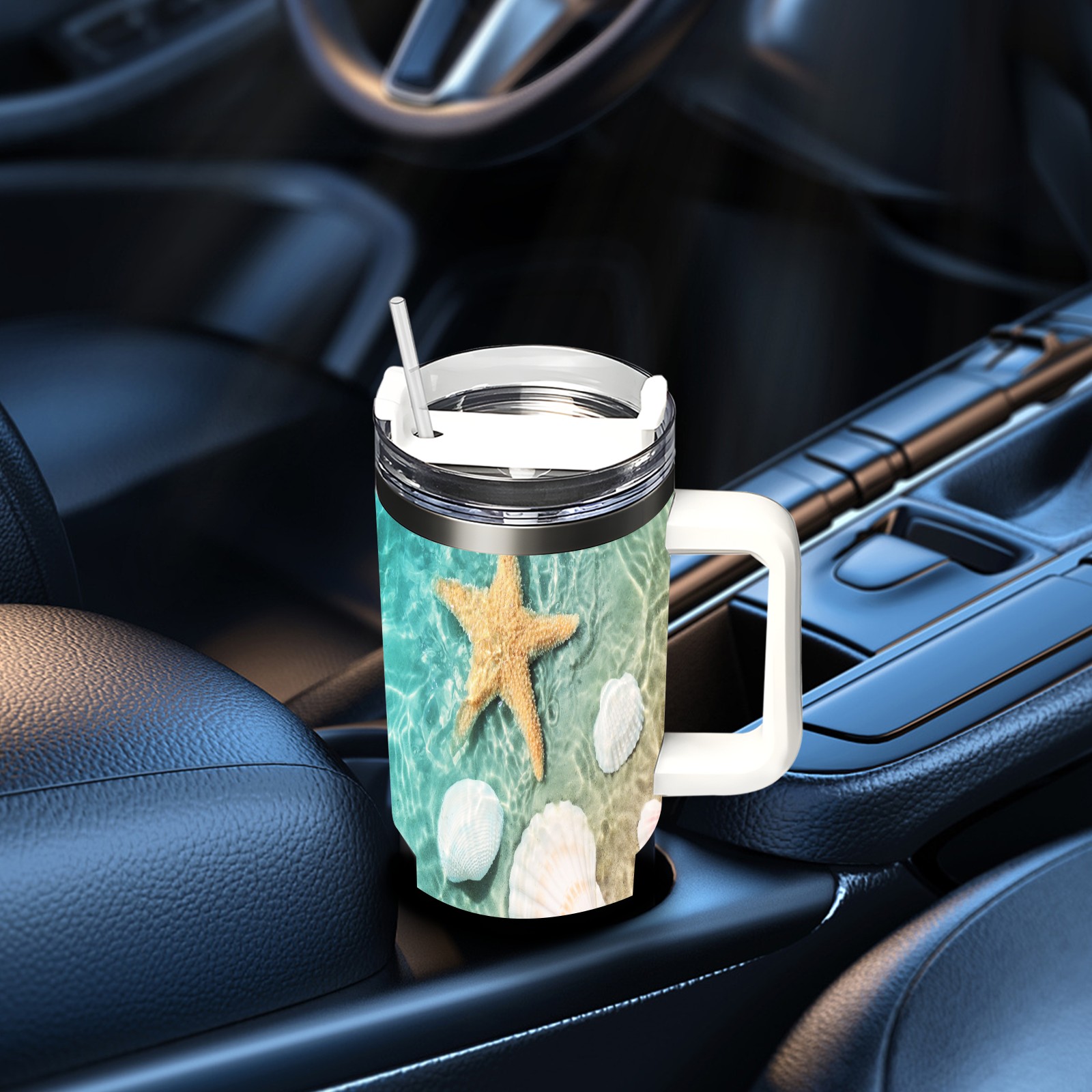 40 унций полностью напечатанный автомобильный стакан Ocean Water Sea Beach Starfish Shell