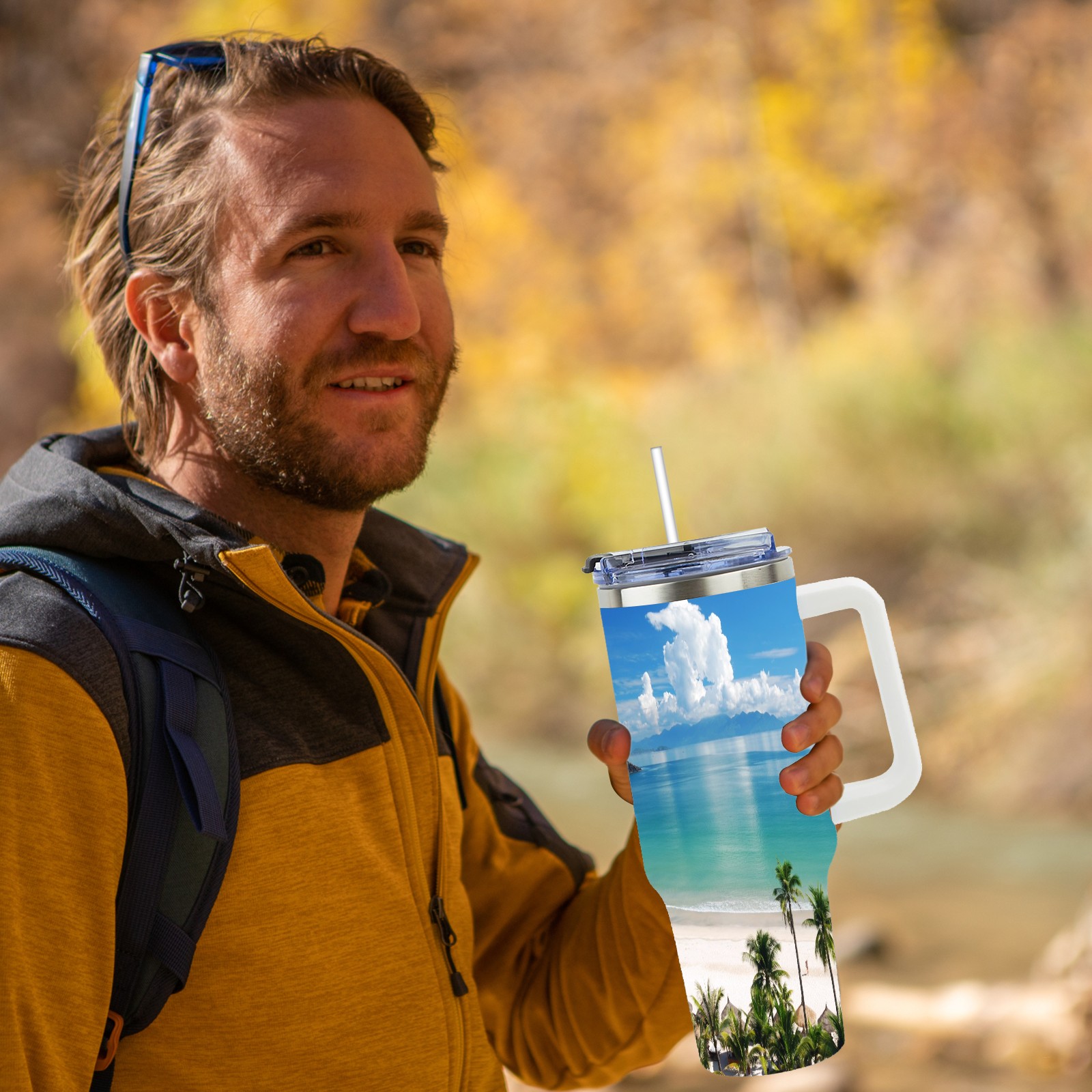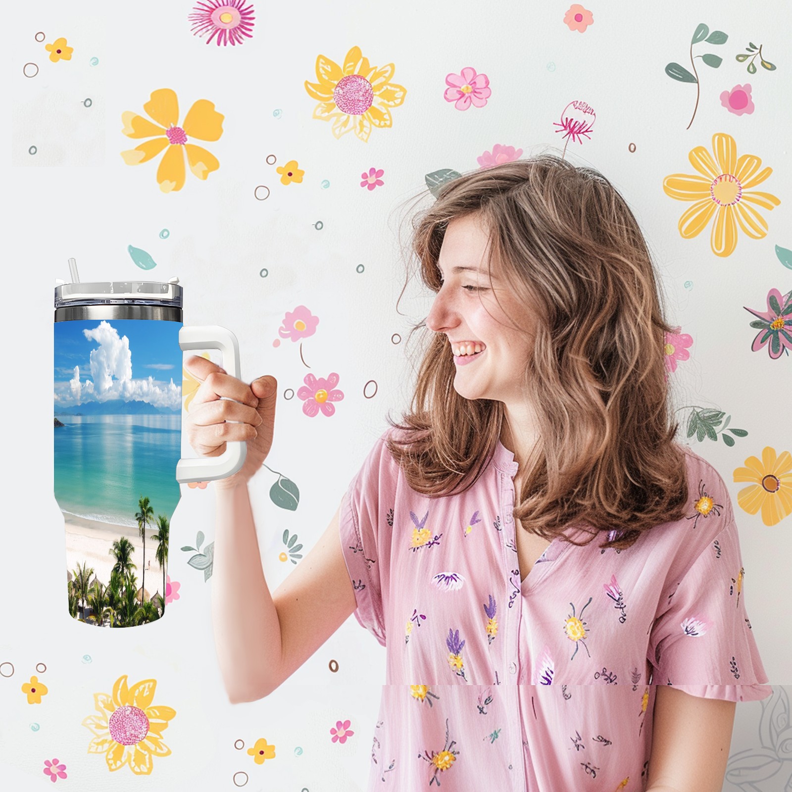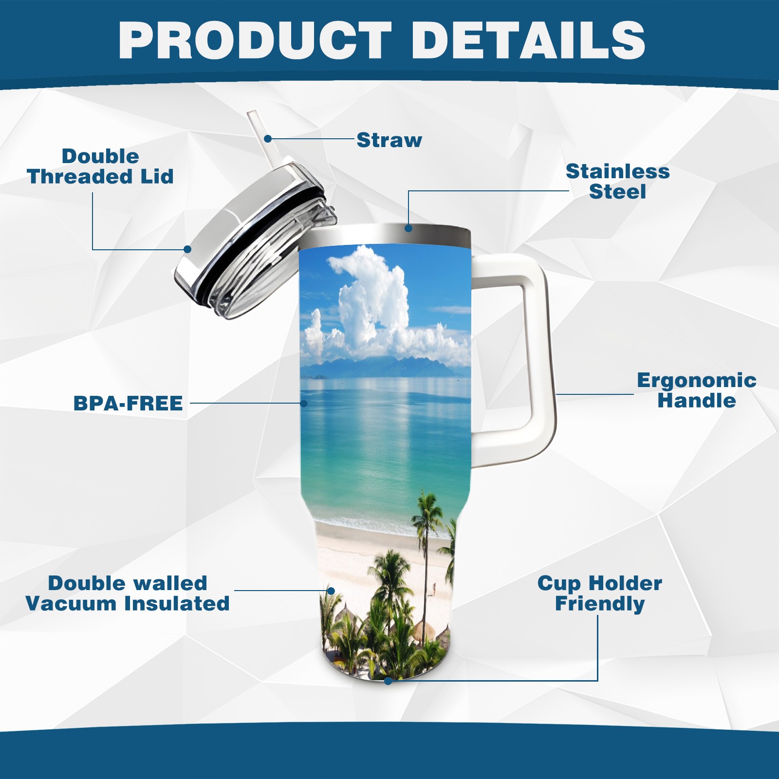 40 унций полностью напечатанный автомобильный стакан Beach Coast Sea Palm Trees