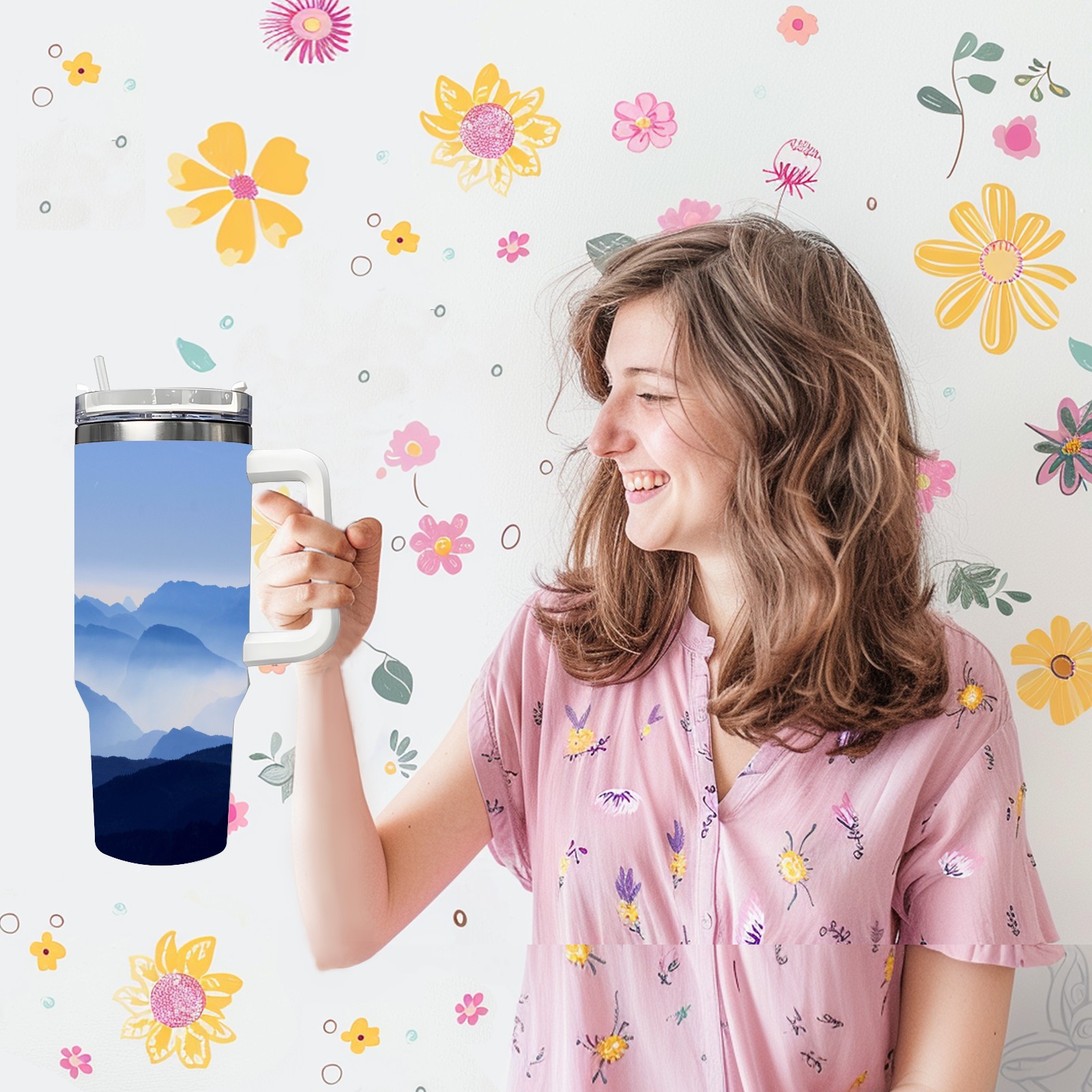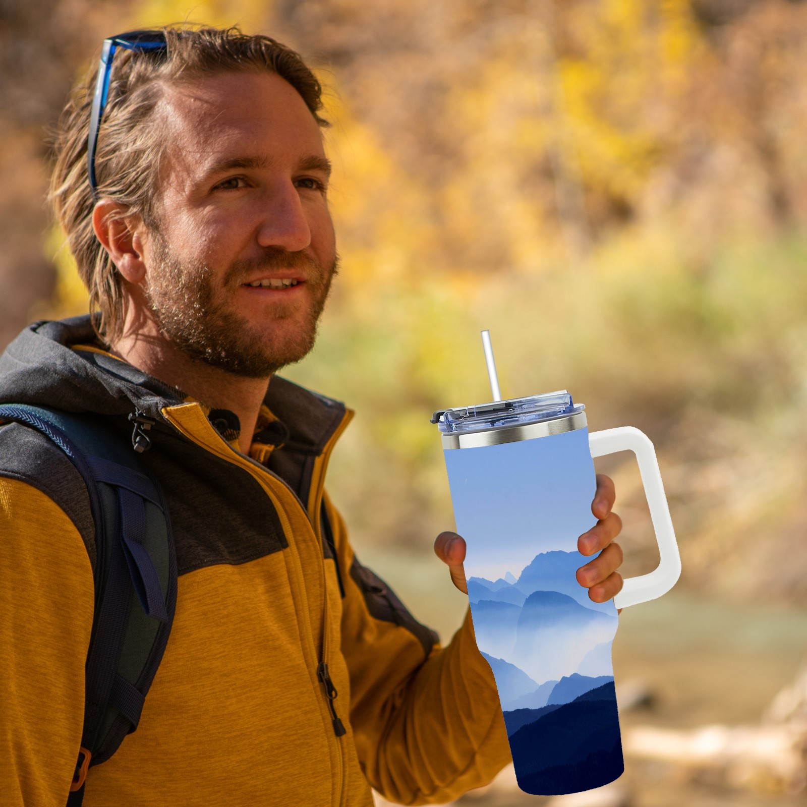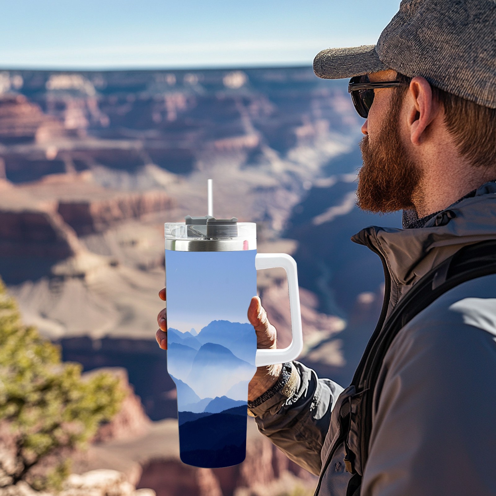 40 унций полностью напечатанный автомобильный стакан Landscape Blue Mountain Clouds