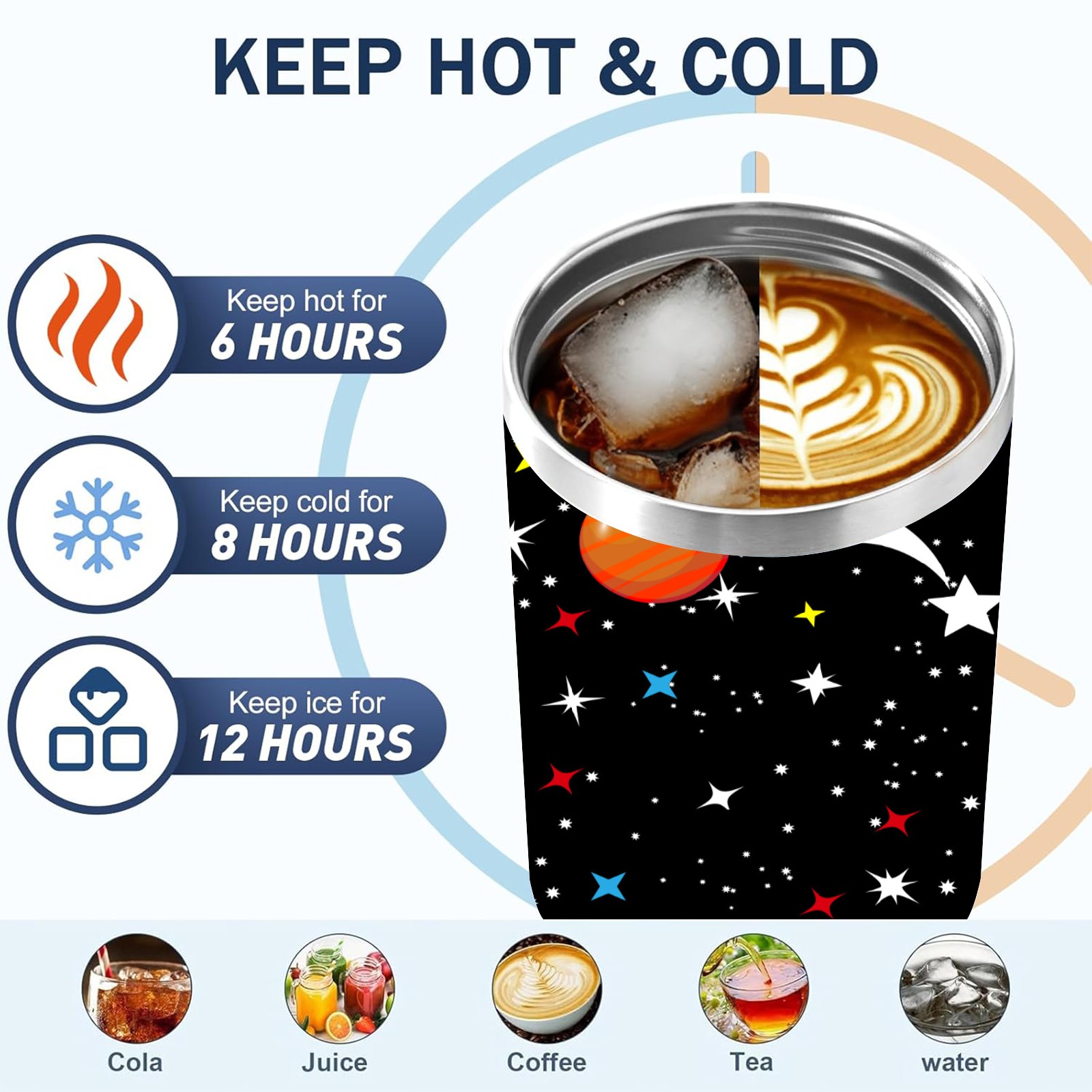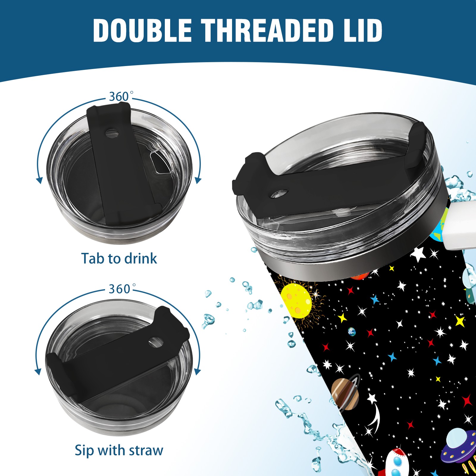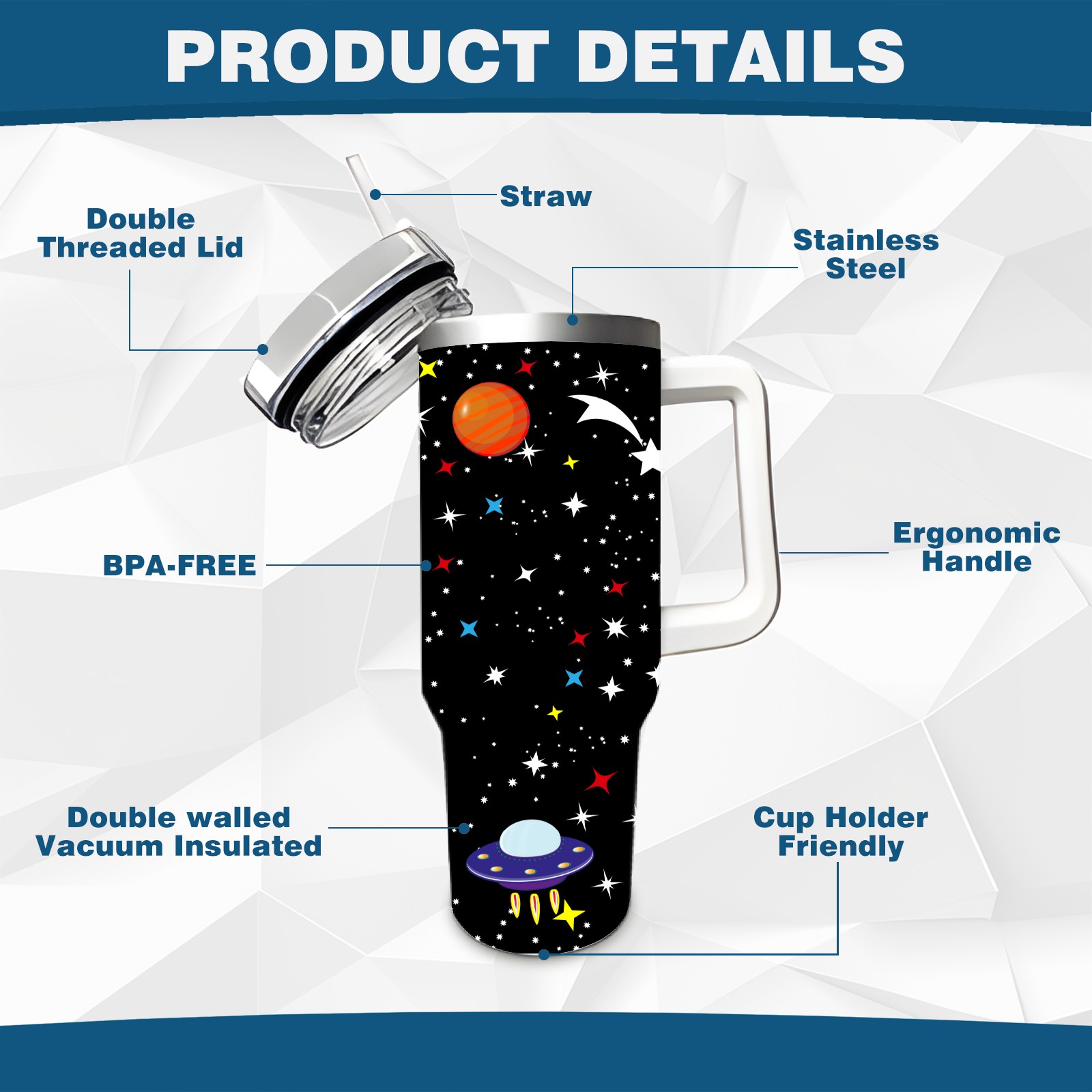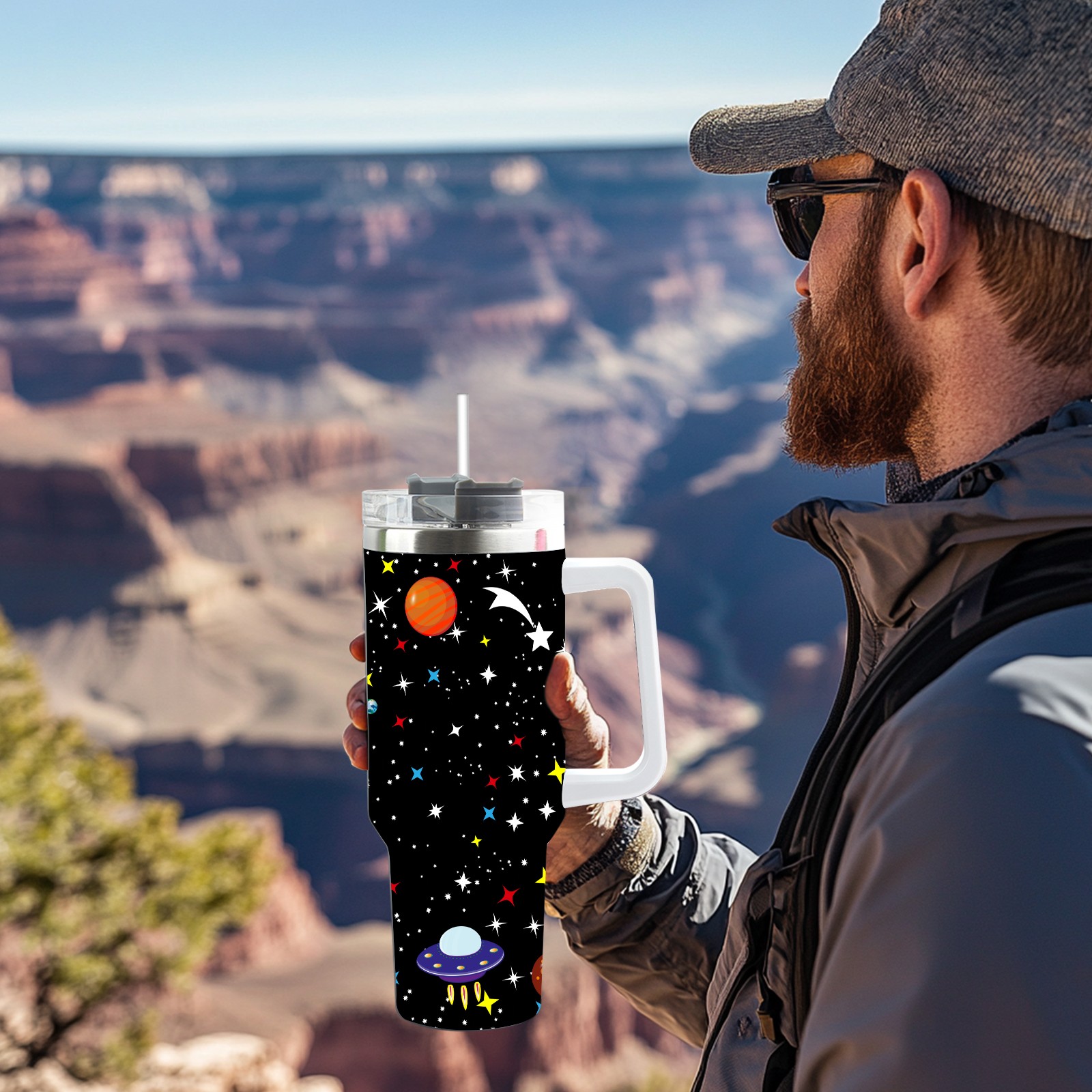 40 унций полностью напечатанный автомобильный стакан Space Planet Spaceship Rockets