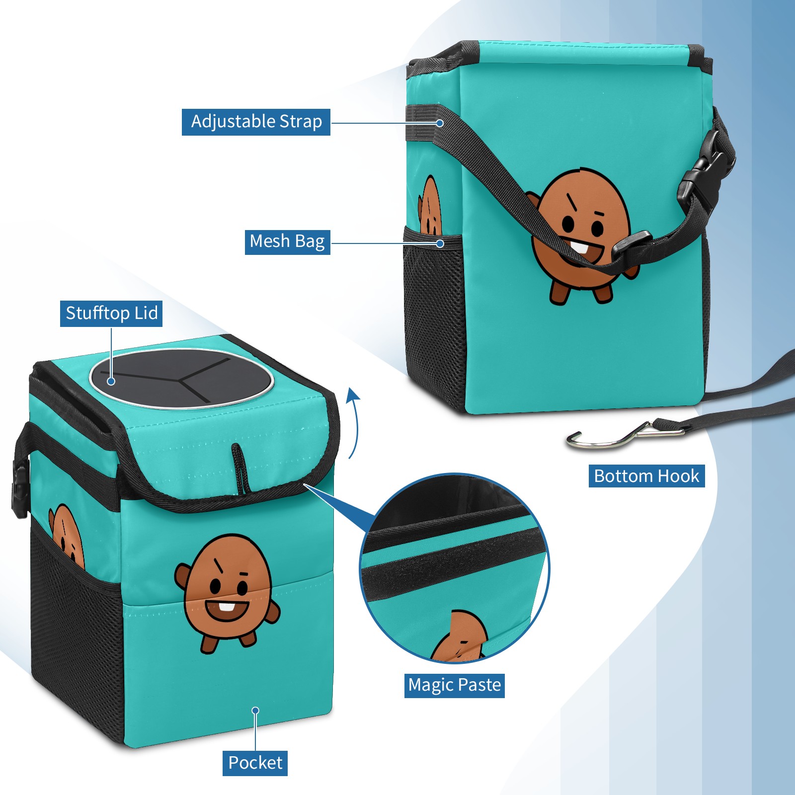 • Компактная мусорная корзина для автомобиля — это незаменимый аксессуар для поддержания порядка в салоне. Она легко монтируется на переднее или заднее сиденье, не занимает много места и позволяет удобно собирать мусор во время поездок.
