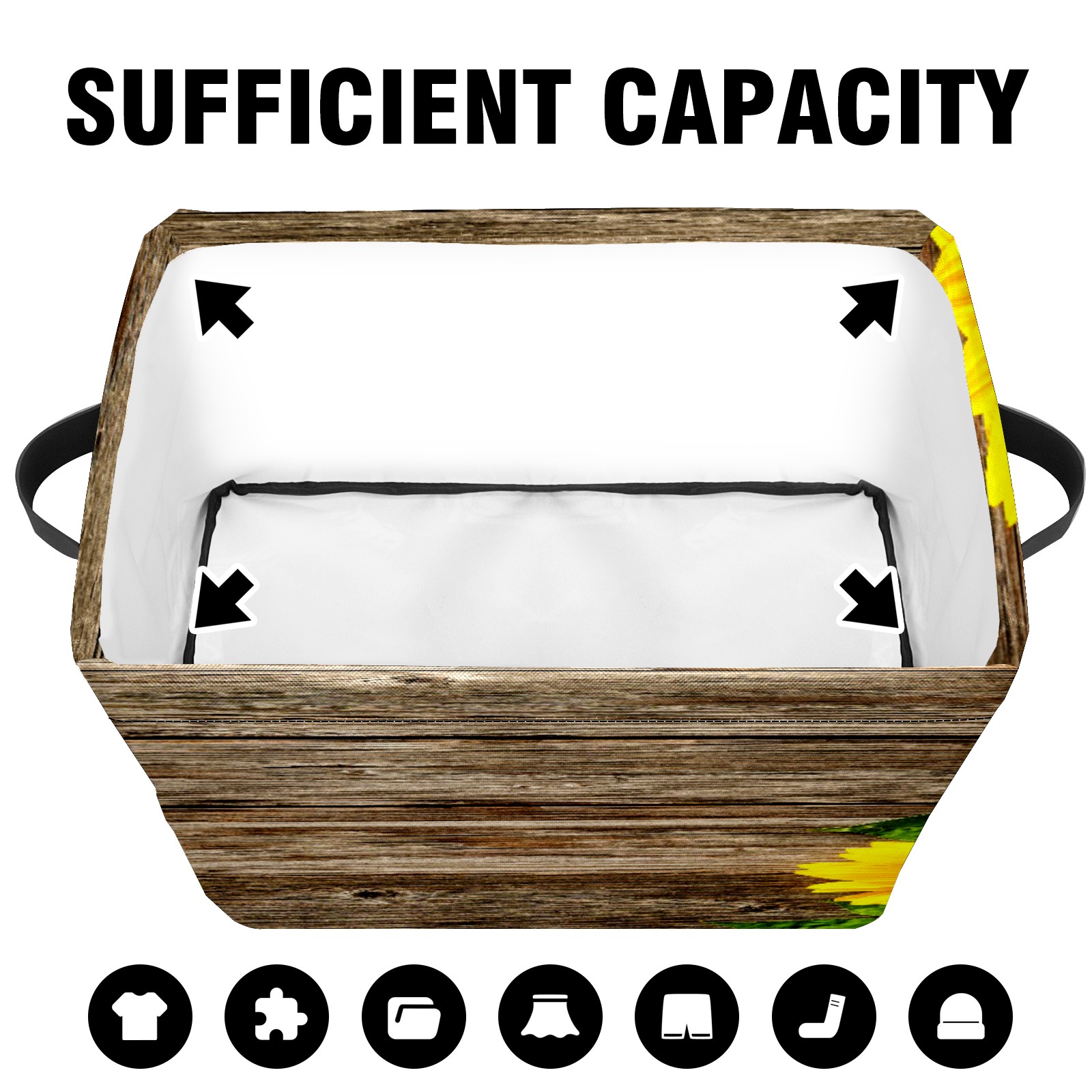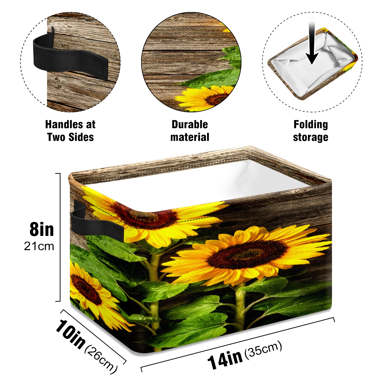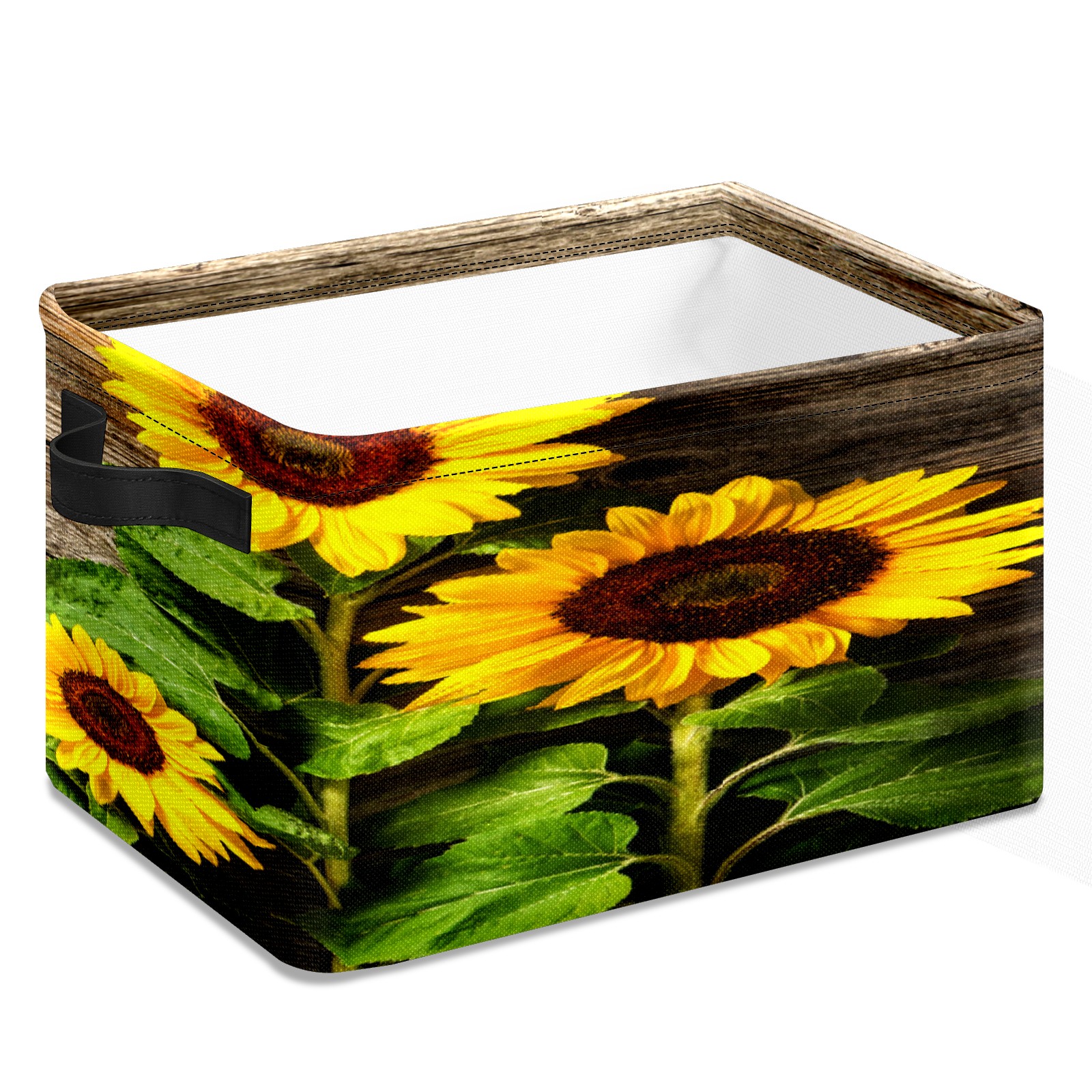 Складная тара Yellow Sunflowers Floral Rustic Wood Texture