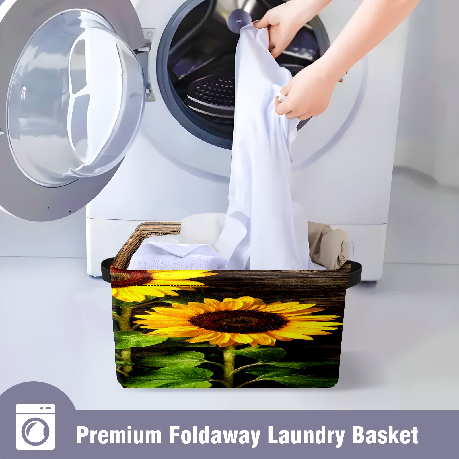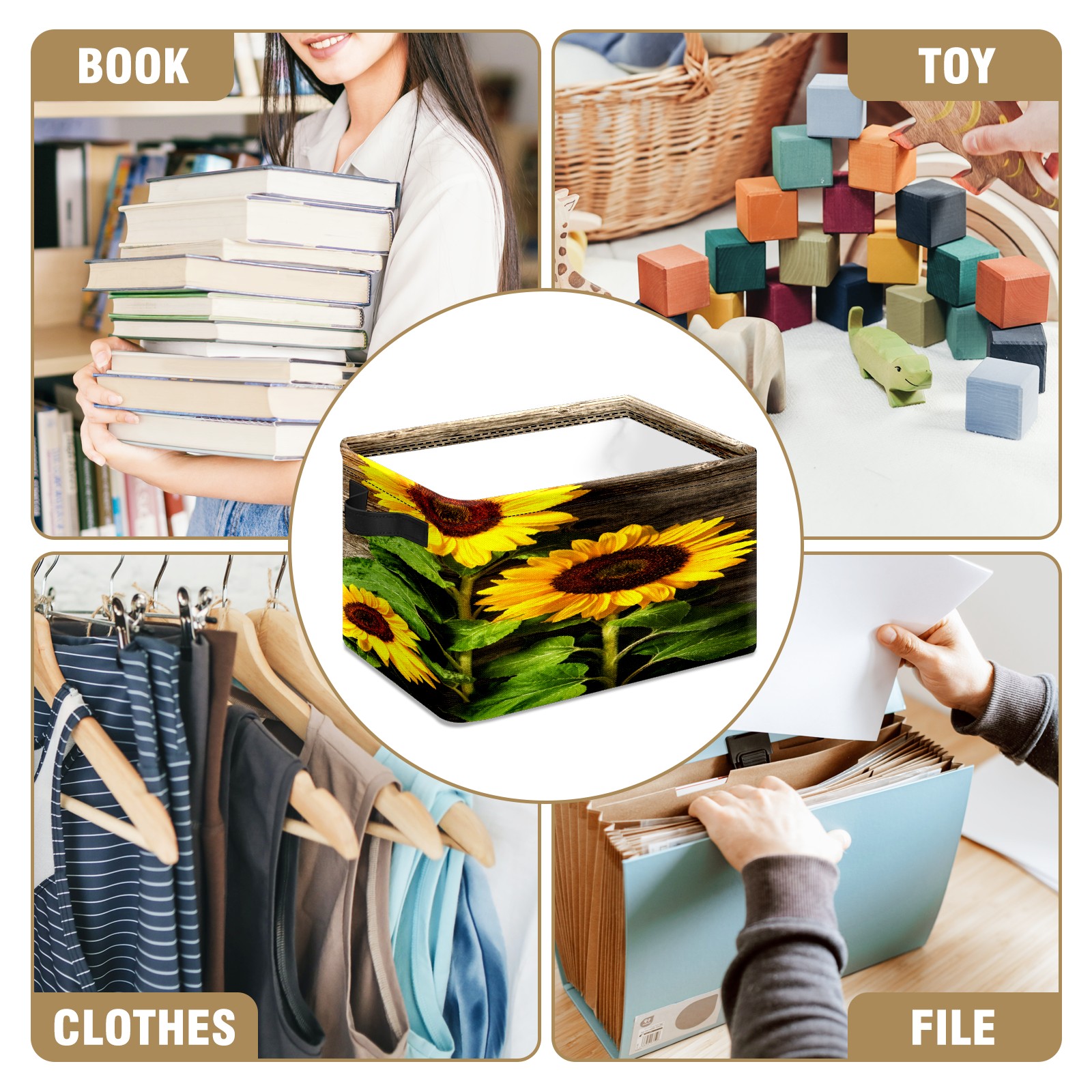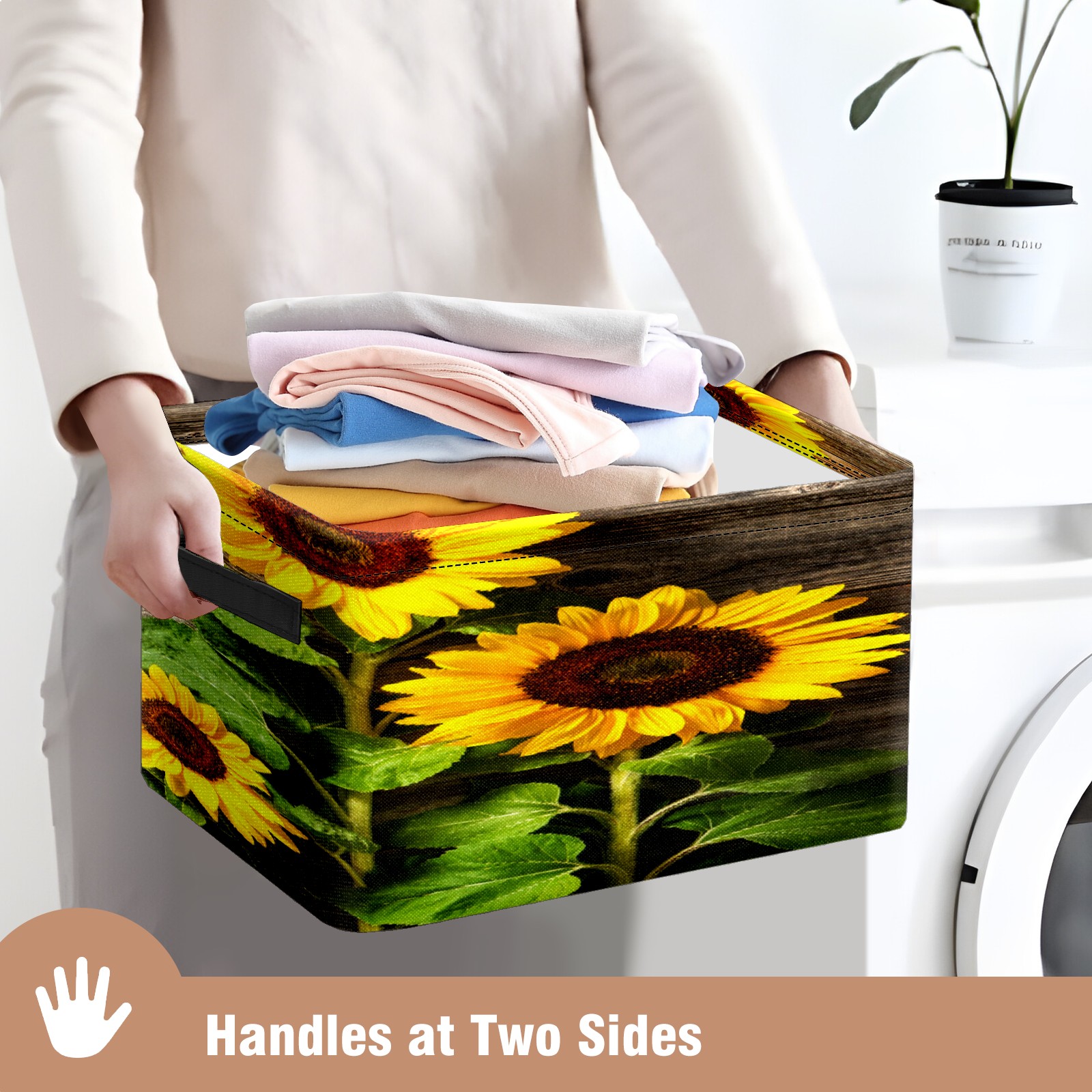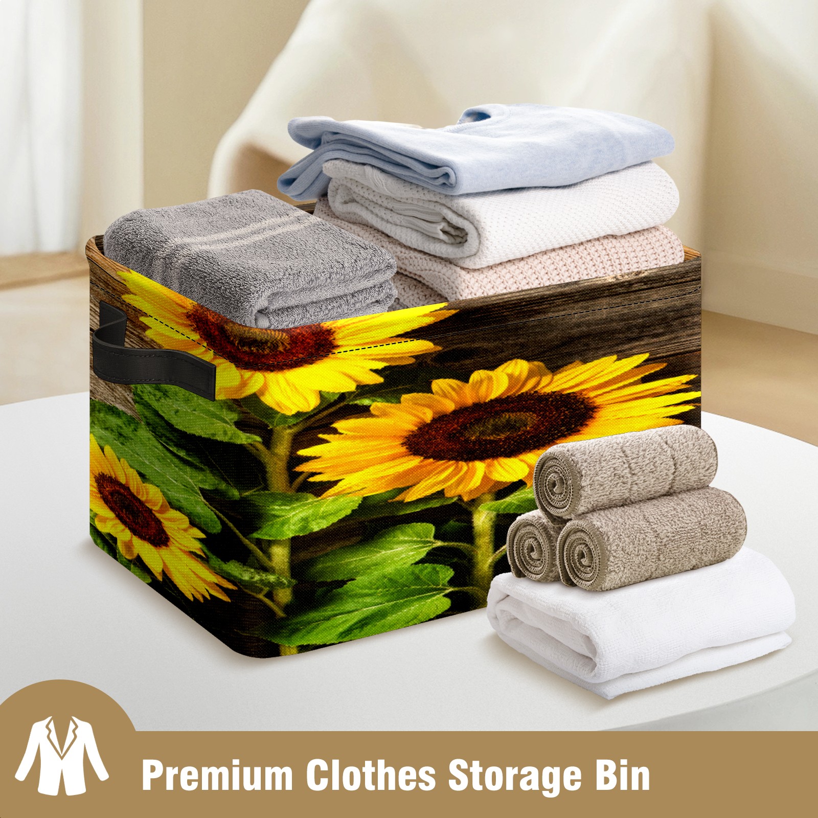 Складная тара Yellow Sunflowers Floral Rustic Wood Texture