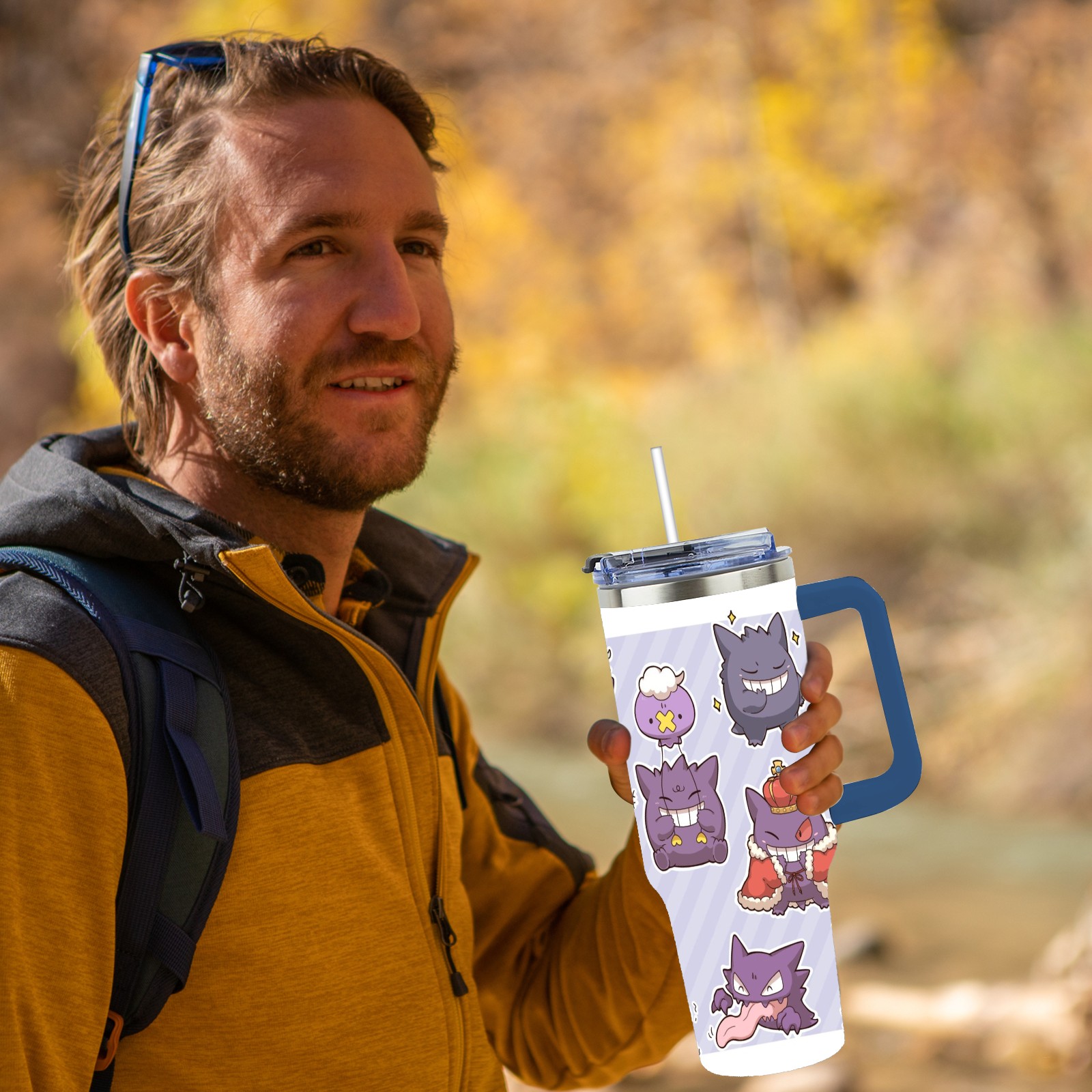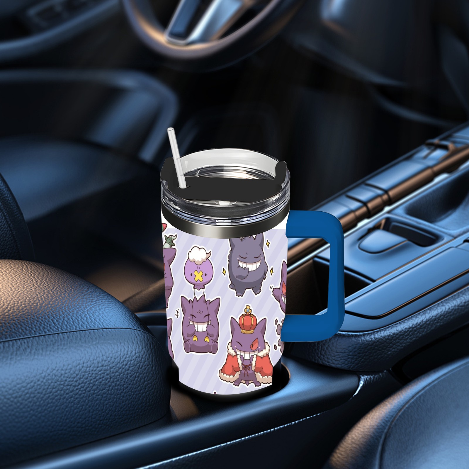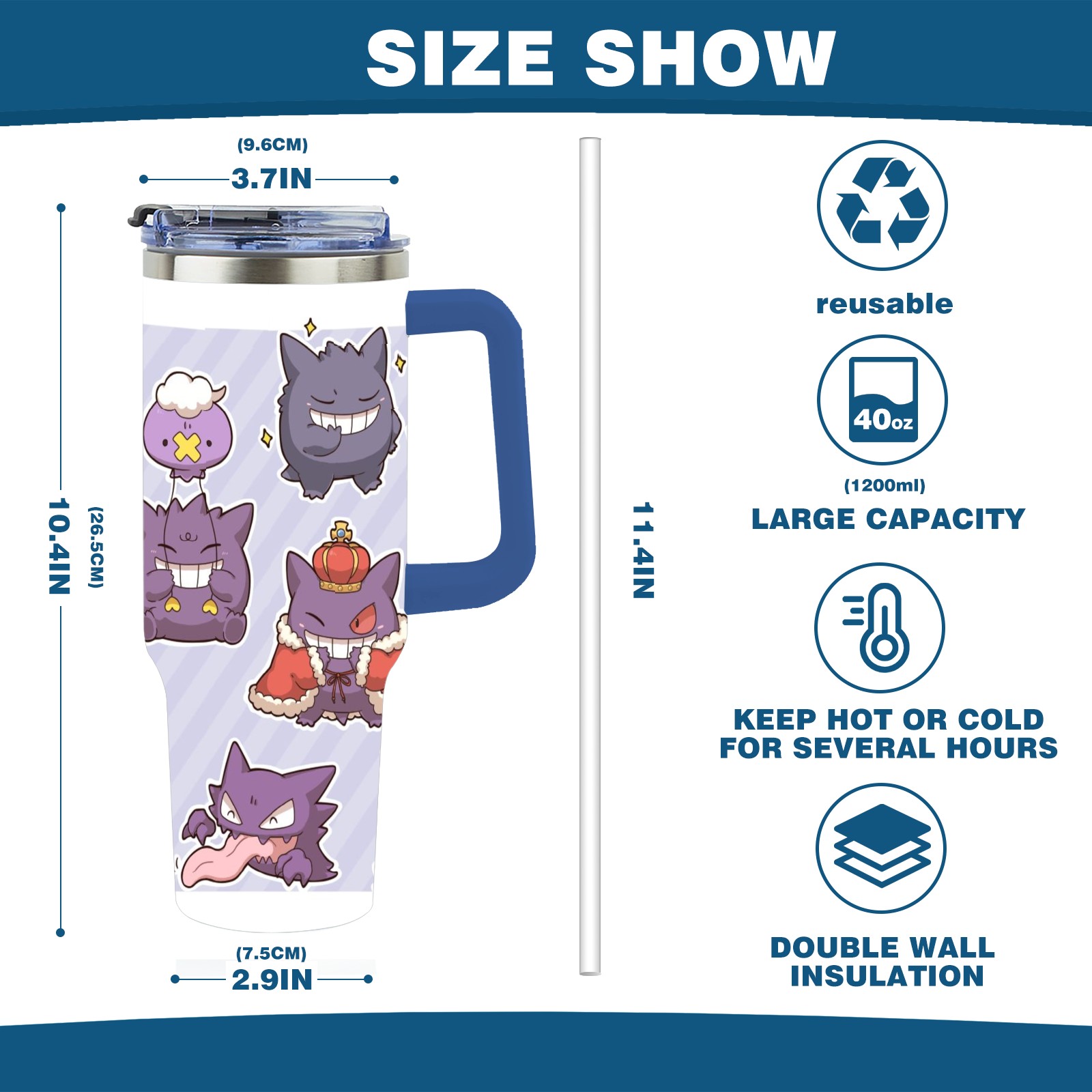 40oz 横图A (111) thermos with lid and straw, leak-proof stainless steel, with handle, spill-proof bottle, convenient for travel(blue)