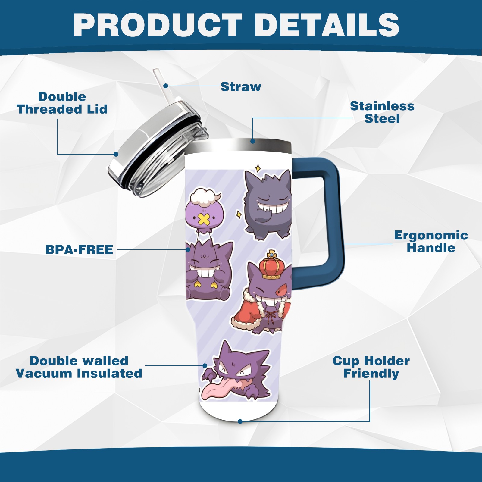 • <p>This multi-functional insulated water bottle features a simple and practical design, suitable for various daily scenarios. The ergonomic handle allows for easy one-handed drinking, and the detachable handle can be adjusted or removed as needed, making it convenient for commuting, exercising, or carrying to meetings. Made of high-quality stainless steel, it is BPA-free and features double-walled vacuum insulation technology that keeps drinks cold for 8 hours and hot for 6 hours, ensuring you can enjoy your beverage at the perfect temperature anytime, anywhere. The 40-ounce Christmas edition comes with a sliding lid, silicone straw, and a non-slip design. Accessories are dishwasher safe, and the narrow bottom and wide mouth design perfectly fits car cup holders. The exclusive flip-top straw lid is environmentally friendly and durable, with a one-touch leak-proof closure and two drinking modes: sip and gulp. A dust cover provides effective protection. This bottle is suitable for travel, office work, sports, camping, and other occasions, making it a thoughtful gift for friends and family.</p>