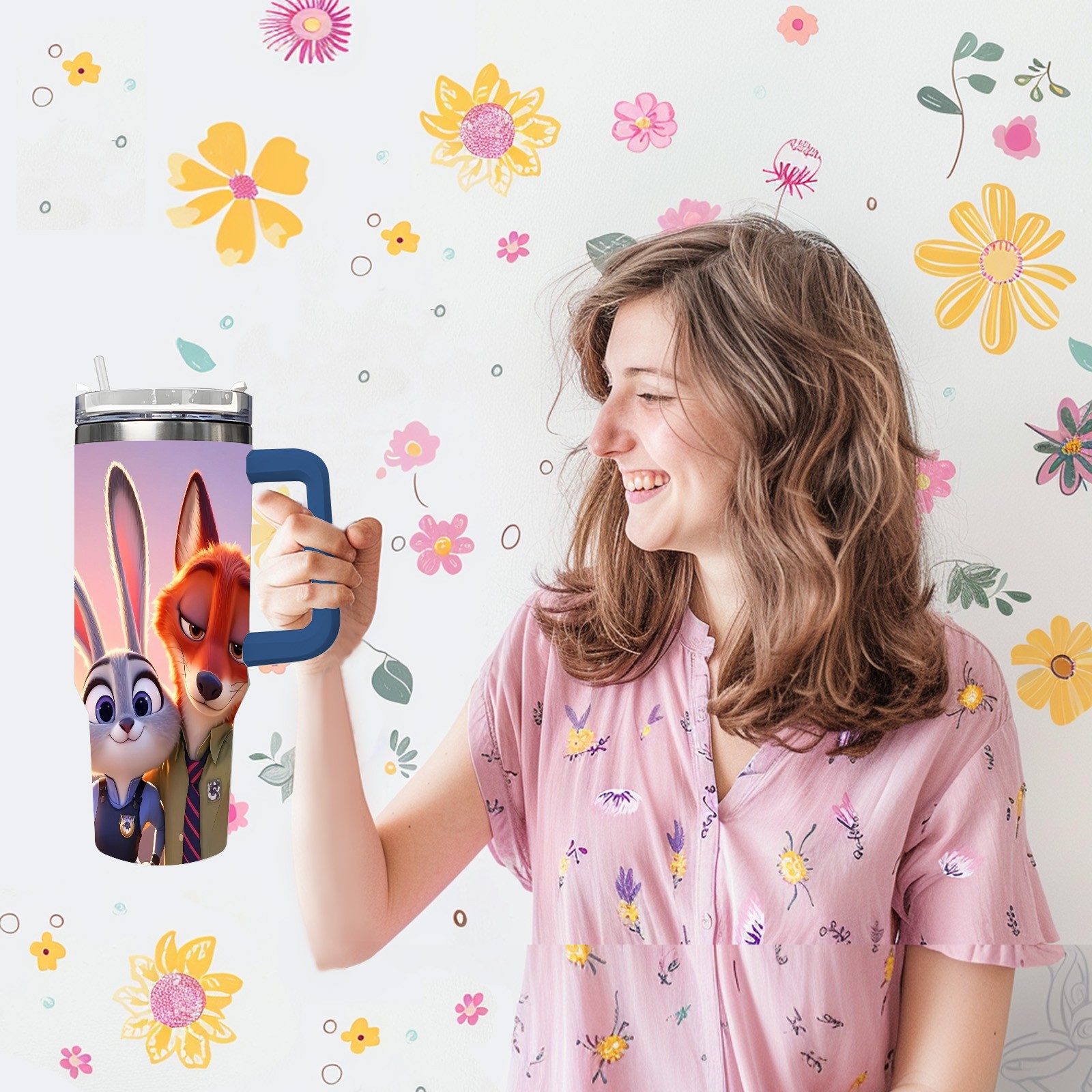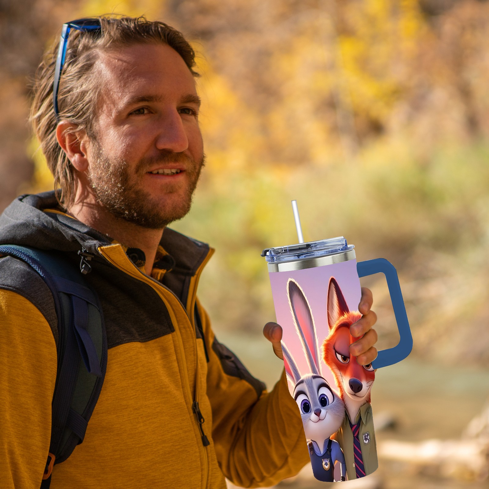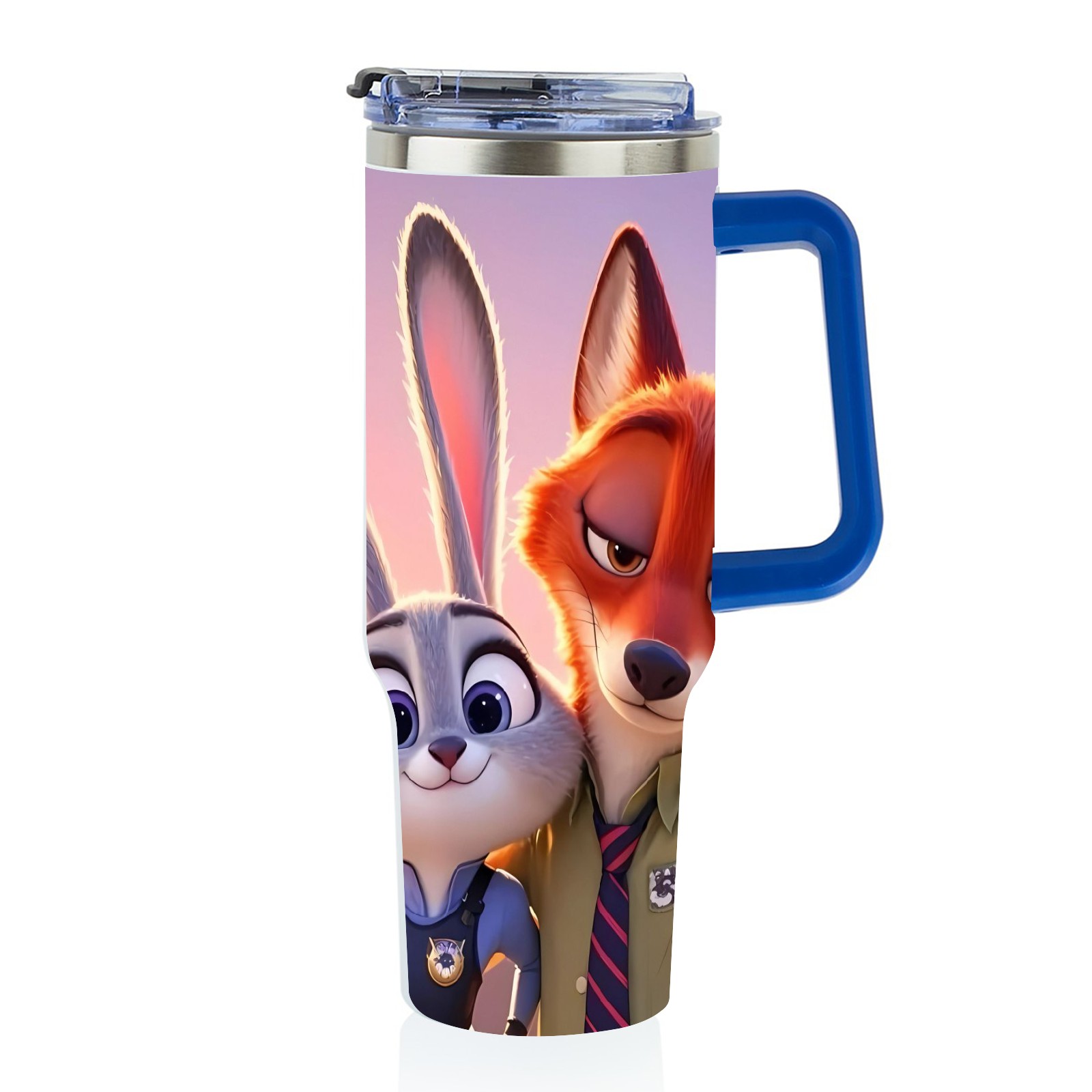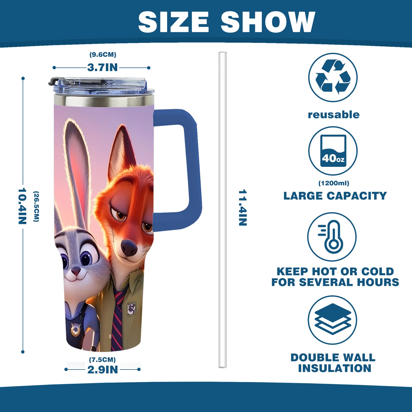 40oz 疯狂动物城 新增 IPad 04 thermos with lid and straw, leak-proof stainless steel, with handle, spill-proof bottle, convenient for travel(blue)