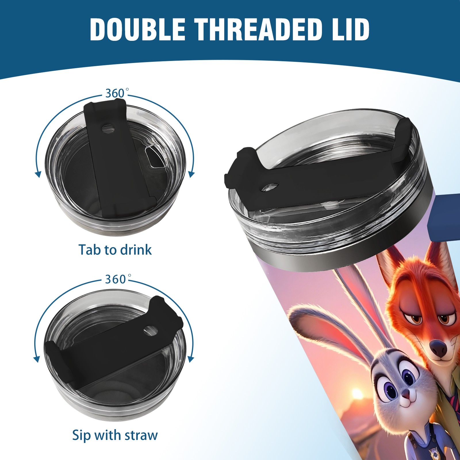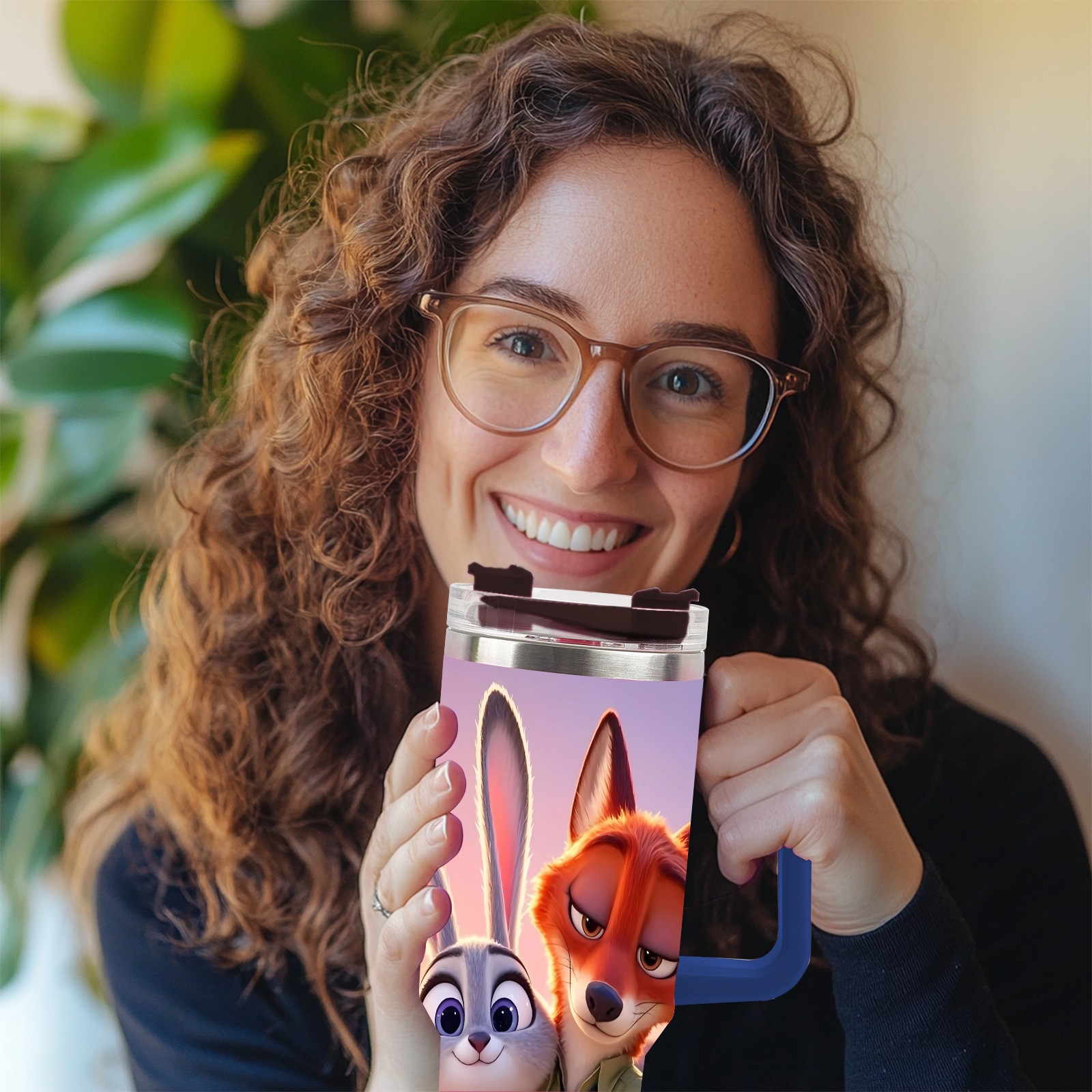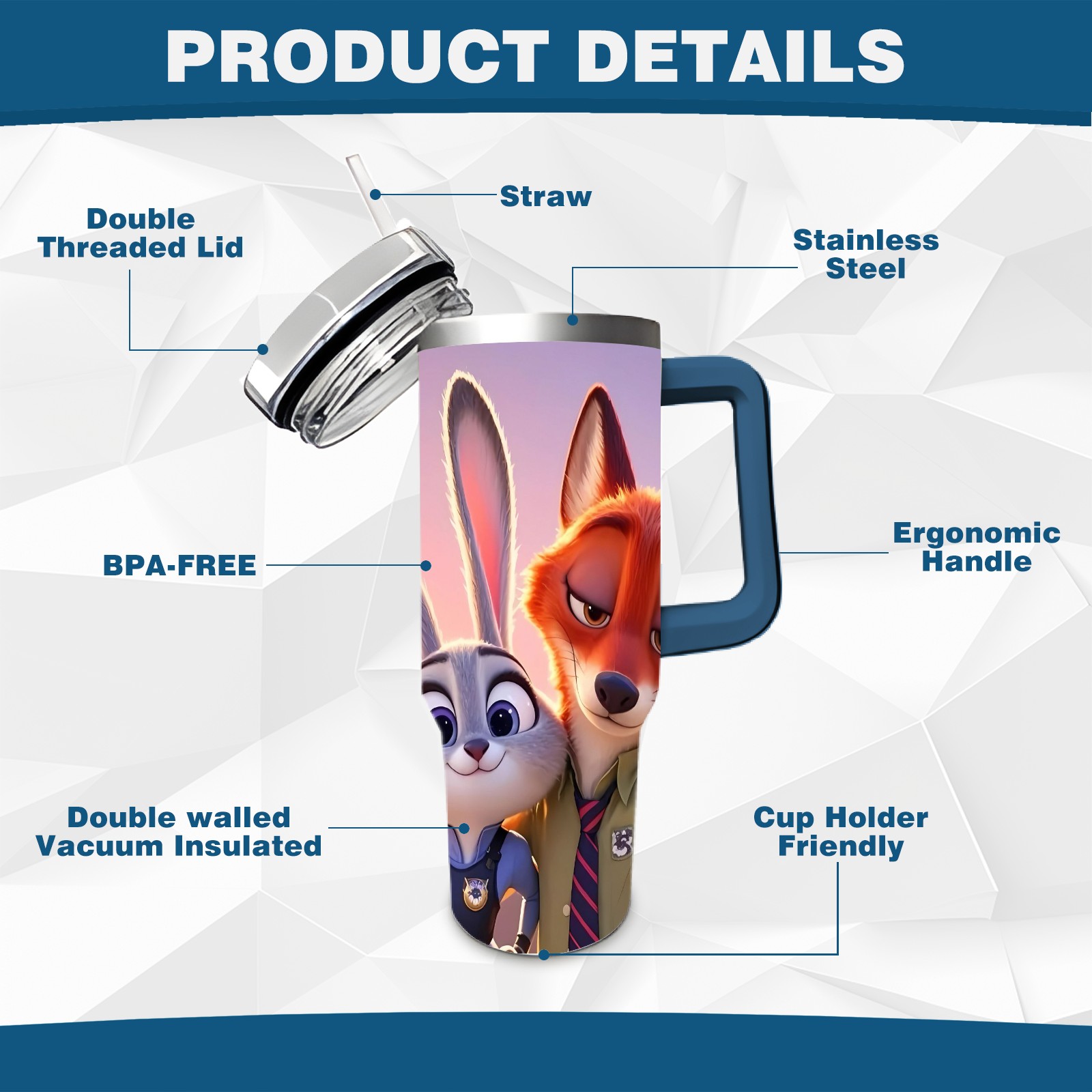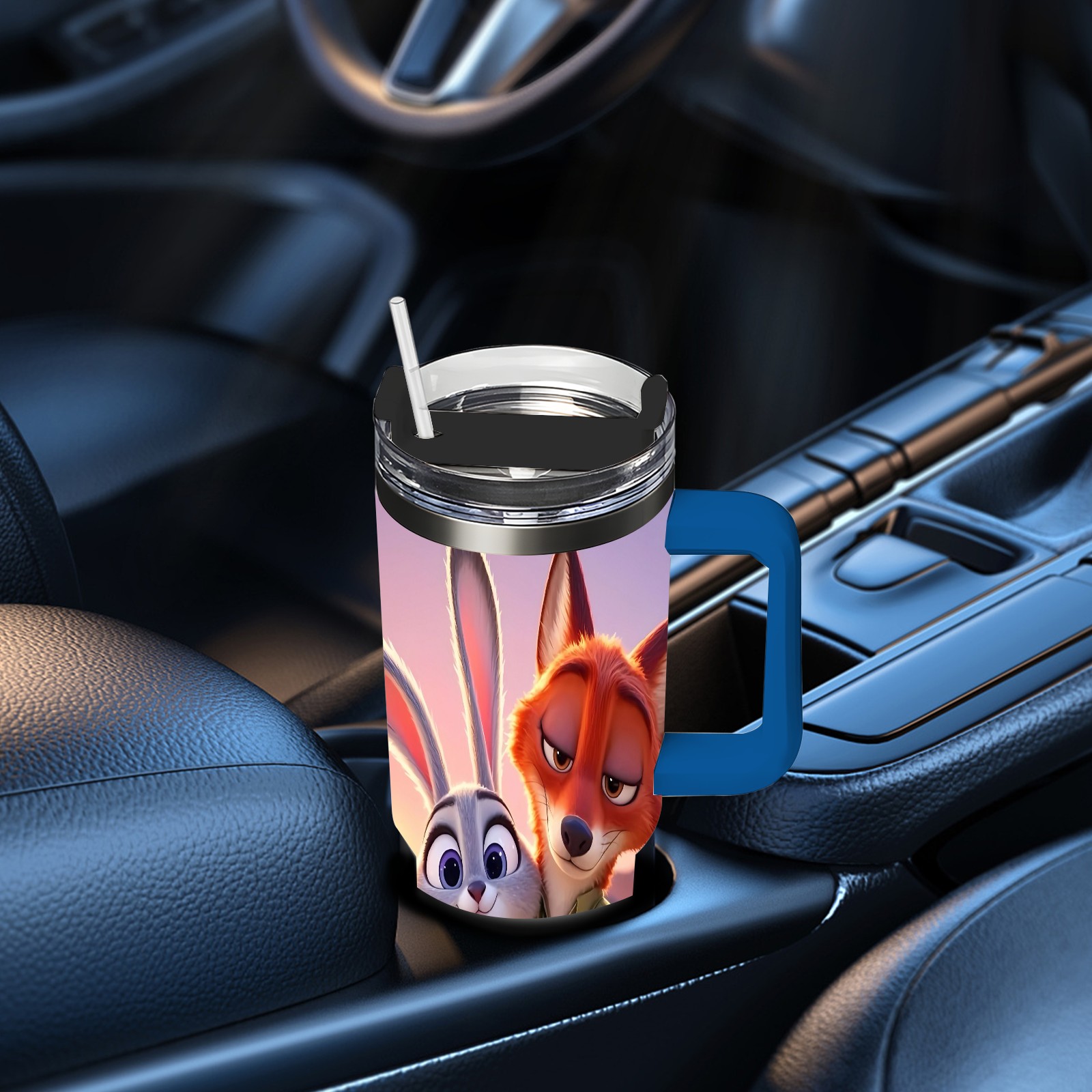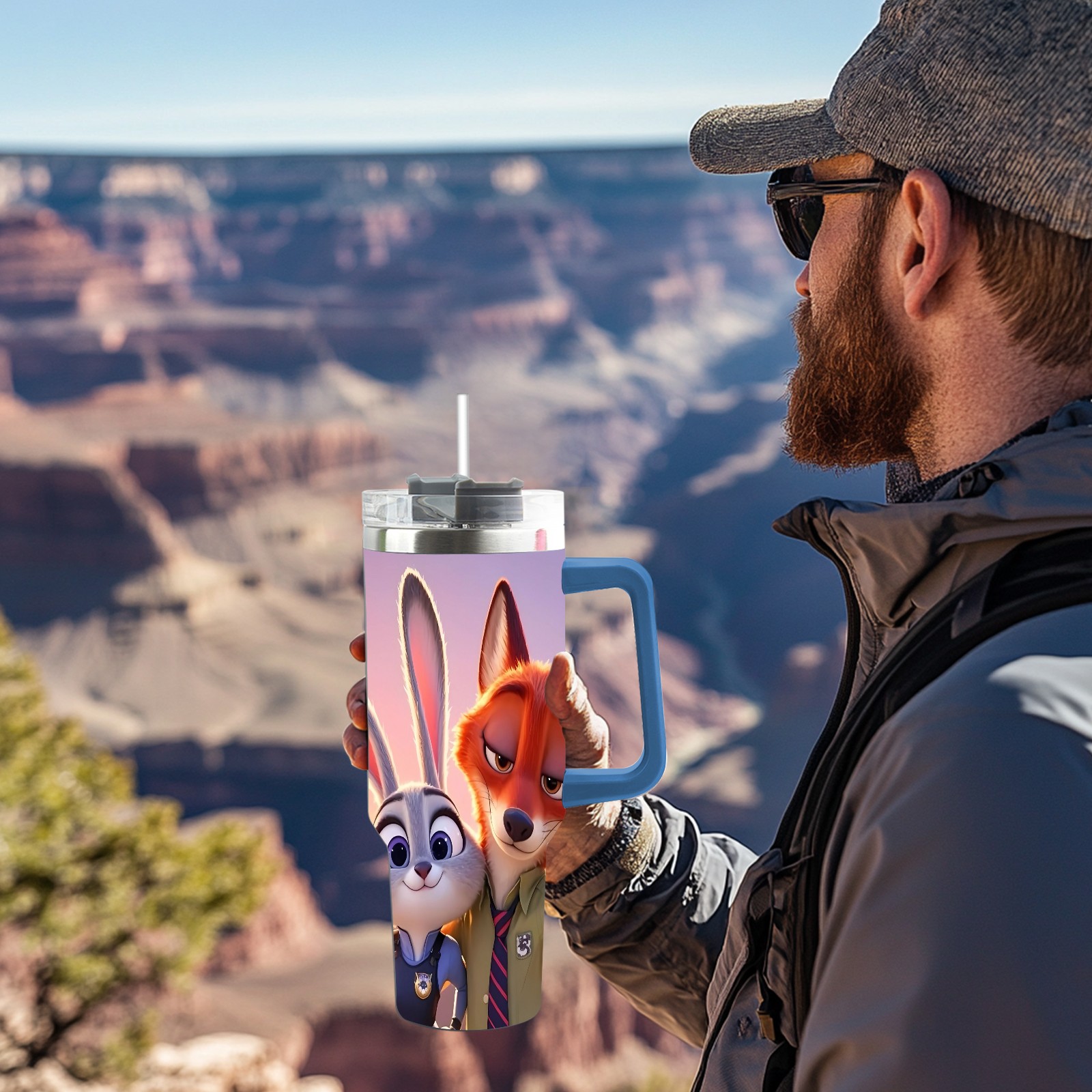 40oz 疯狂动物城 新增 IPad 04 thermos with lid and straw, leak-proof stainless steel, with handle, spill-proof bottle, convenient for travel(blue)