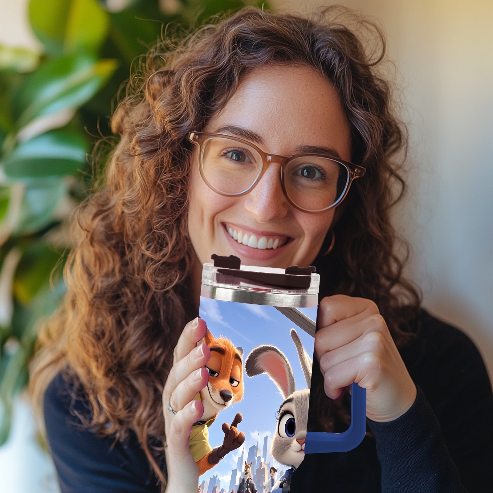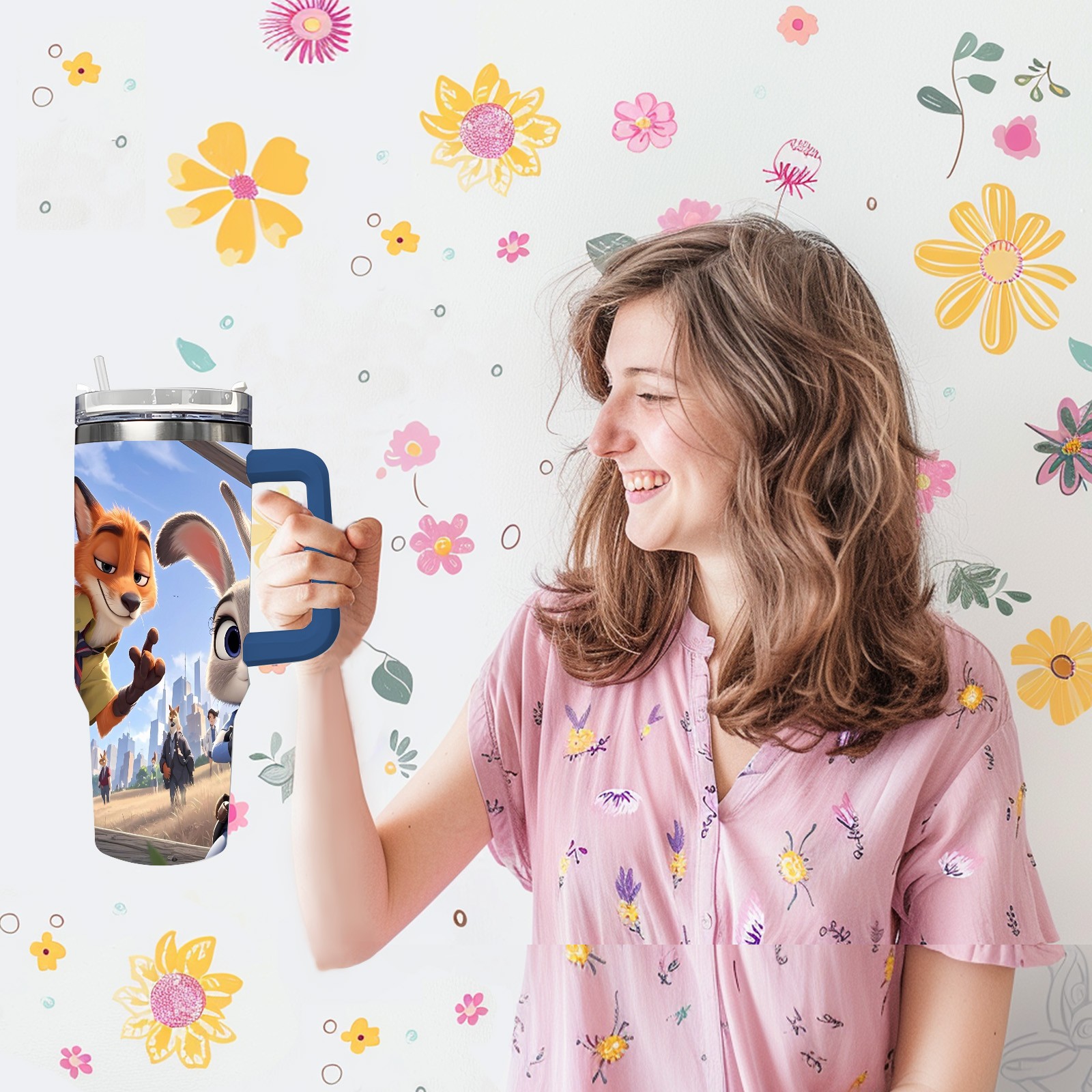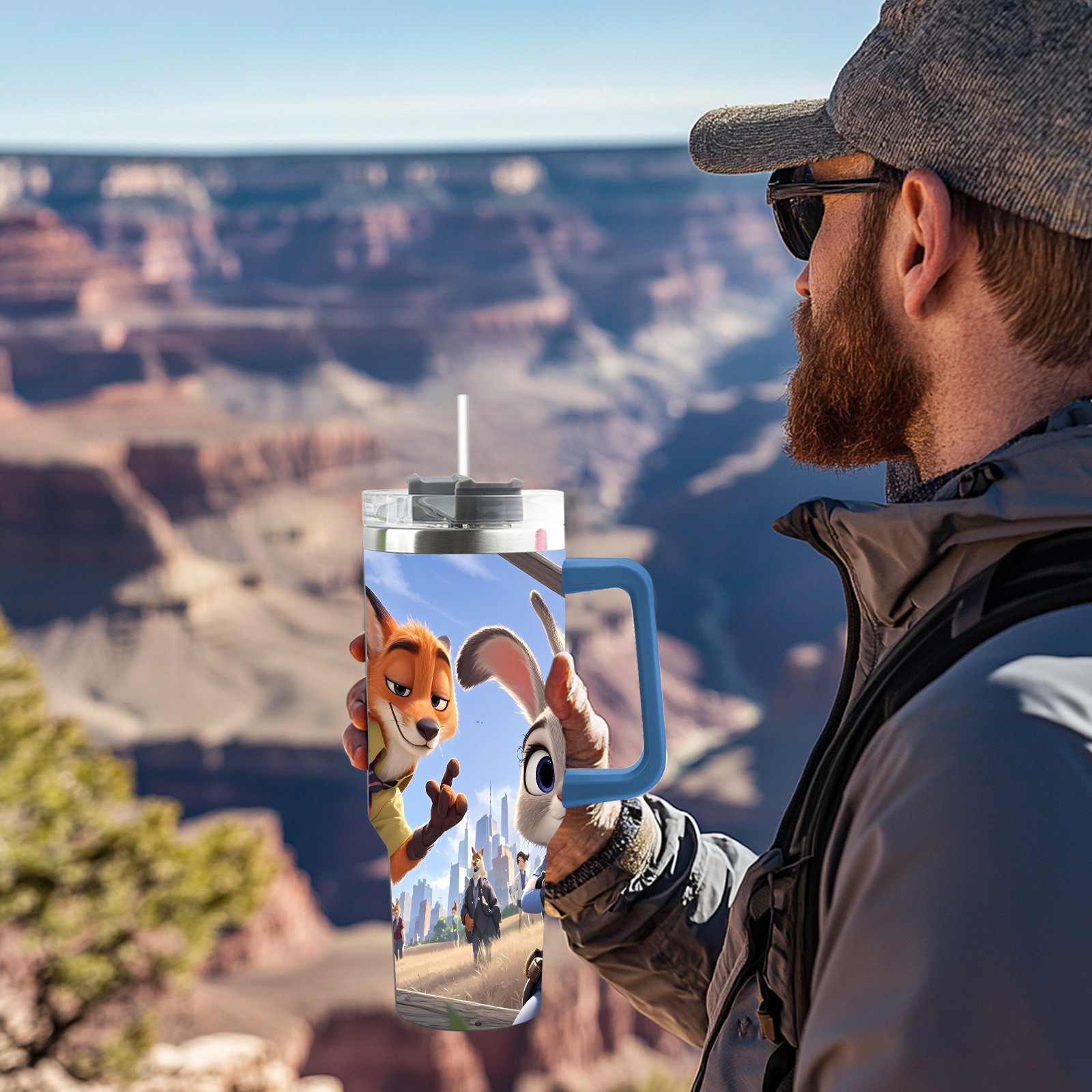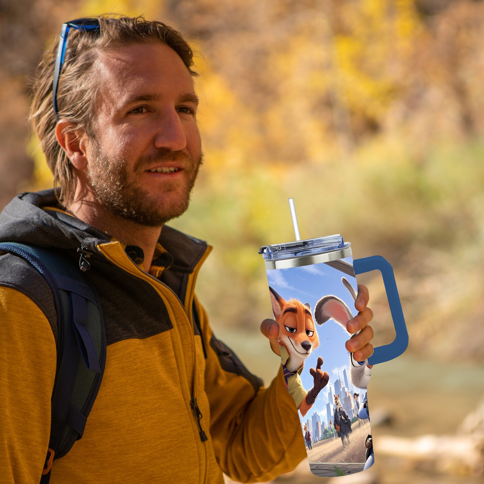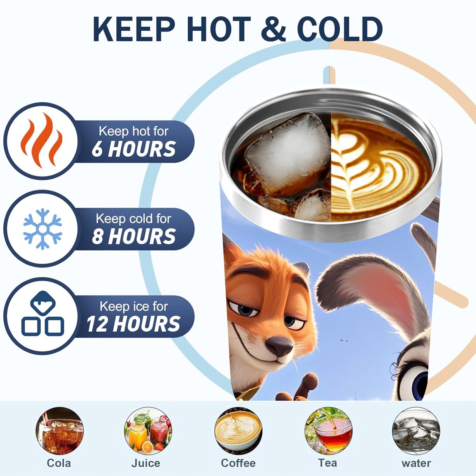 40oz 疯狂动物城 IPad版 08 thermos with lid and straw, leak-proof stainless steel, with handle, spill-proof bottle, convenient for travel(blue)