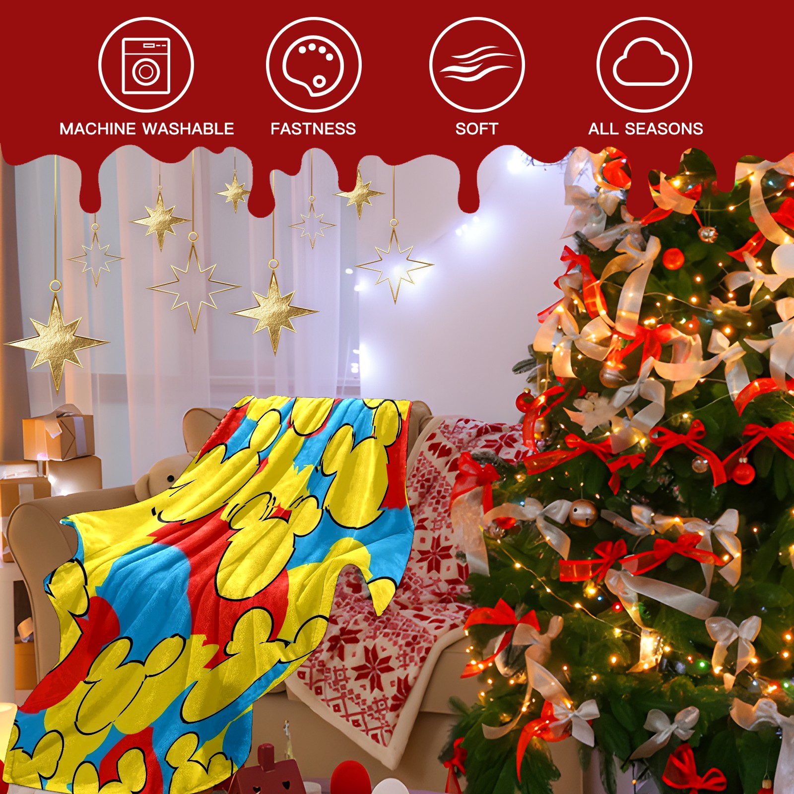 Counullo Flannel Throw Blanket, Ultra Soft Anti-Pilling Blanket for Couch & Bed, Lightweight Cozy Blanket for Travel, Home, Camping Gift - (30" x 39"), Colorful Mouse Yellow