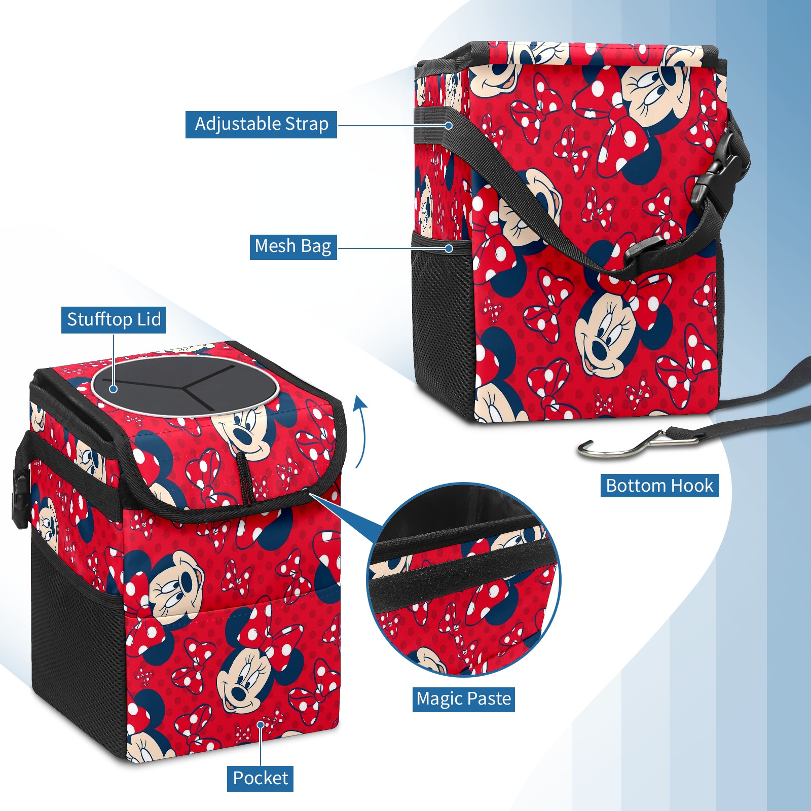 • Компактная мусорная корзина для автомобиля — это незаменимый аксессуар для поддержания порядка в салоне. Она легко монтируется на переднее или заднее сиденье, не занимает много места и позволяет удобно собирать мусор во время поездок.