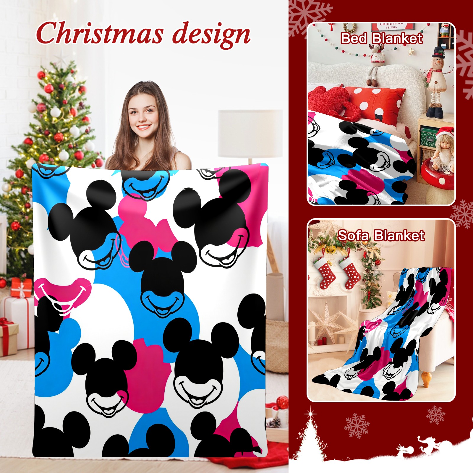 Counullo Flannel Throw Blanket, Ultra Soft Anti-Pilling Blanket for Couch & Bed, Lightweight Cozy Blanket for Travel, Home, Camping Gift - (30" x 39"), Dynamic Mouse Black