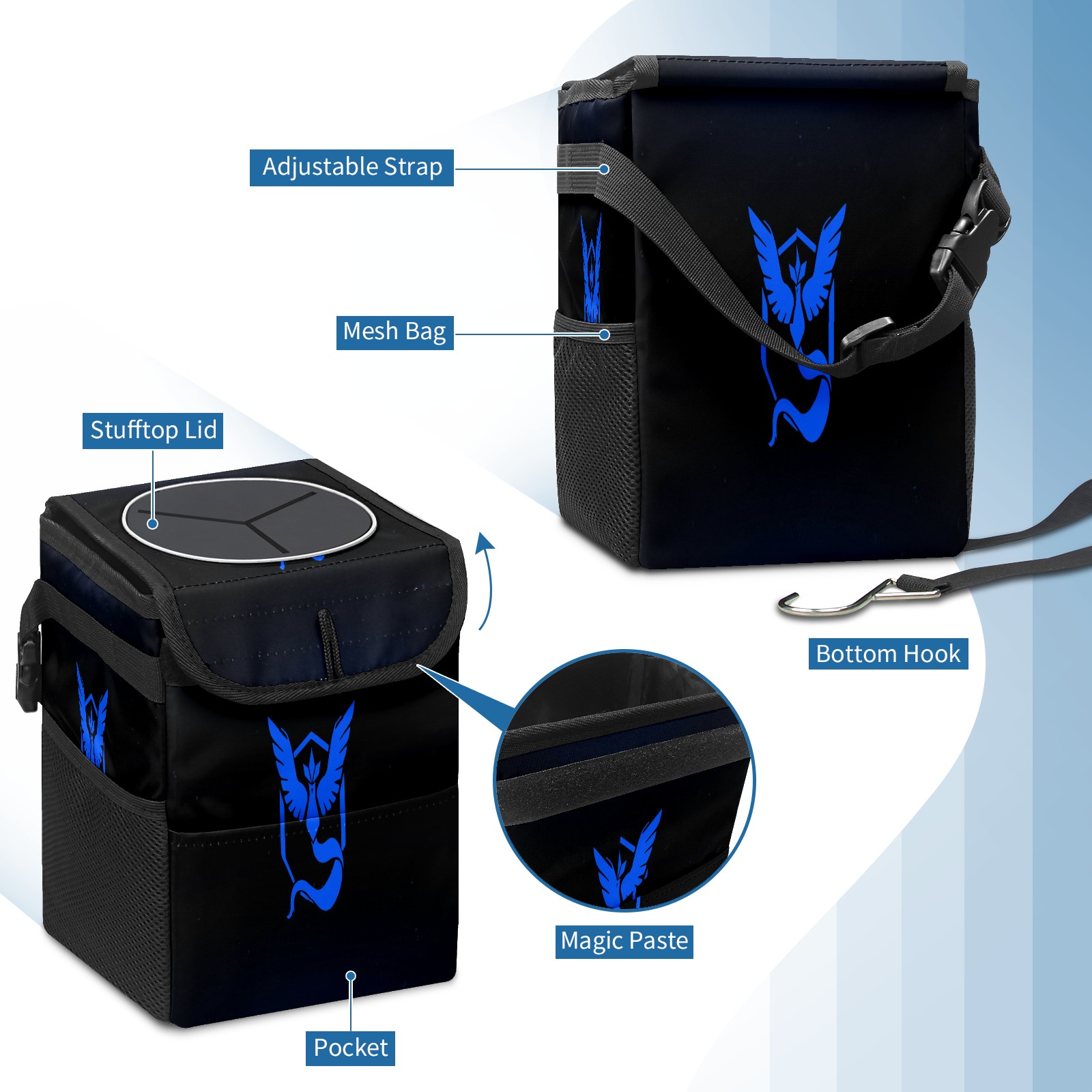 • <p>Keep your car neat with this practical car trash can—built for durability, versatility, and on-the-go convenience! Crafted from quality twill fabric with a waterproof lining, it prevents leaks, keeping seats/floors clean. Clean easily: empty directly or secure a disposable bag with side clips. Adjustable pull cord fits floor, seat, or headrest. 9.5x6.3x6.7 inches, ample space for daily trash, folds flat for storage. More than a trash can, it doubles as a storage bag for cups, toys, docs, and small gadgets—must-have car interior accessory. Installs in seconds on seats, console, or gear shift; adjustable straps keep it stable, no slipping on bumpy roads. Perfect gift for new car owners!</p>