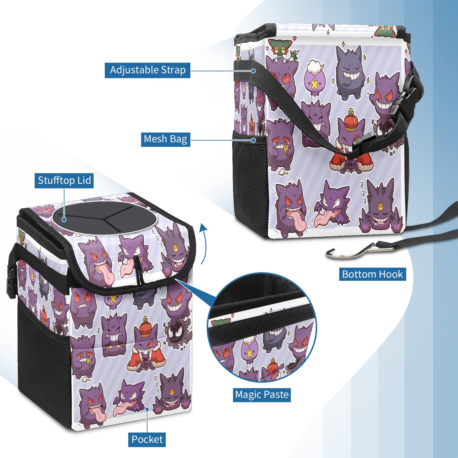 • <p>Keep your car neat with this practical car trash can—built for durability, versatility, and on-the-go convenience! Crafted from quality twill fabric with a waterproof lining, it prevents leaks, keeping seats/floors clean. Clean easily: empty directly or secure a disposable bag with side clips. Adjustable pull cord fits floor, seat, or headrest. 9.5x6.3x6.7 inches, ample space for daily trash, folds flat for storage. More than a trash can, it doubles as a storage bag for cups, toys, docs, and small gadgets—must-have car interior accessory. Installs in seconds on seats, console, or gear shift; adjustable straps keep it stable, no slipping on bumpy roads. Perfect gift for new car owners!</p>