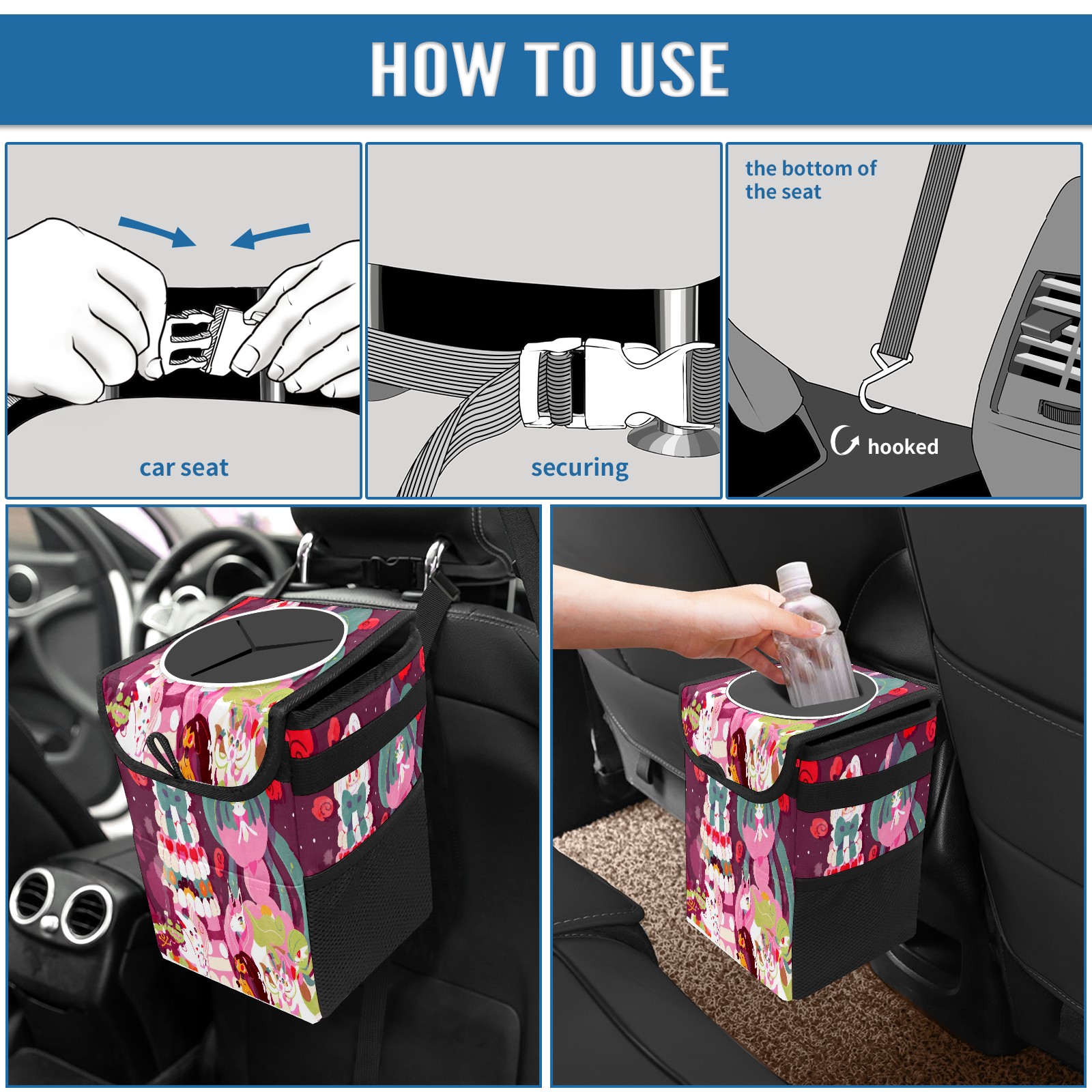 • <p>Keep your car neat with this practical car trash can—built for durability, versatility, and on-the-go convenience! Crafted from quality twill fabric with a waterproof lining, it prevents leaks, keeping seats/floors clean. Clean easily: empty directly or secure a disposable bag with side clips. Adjustable pull cord fits floor, seat, or headrest. 9.5x6.3x6.7 inches, ample space for daily trash, folds flat for storage. More than a trash can, it doubles as a storage bag for cups, toys, docs, and small gadgets—must-have car interior accessory. Installs in seconds on seats, console, or gear shift; adjustable straps keep it stable, no slipping on bumpy roads. Perfect gift for new car owners!</p>