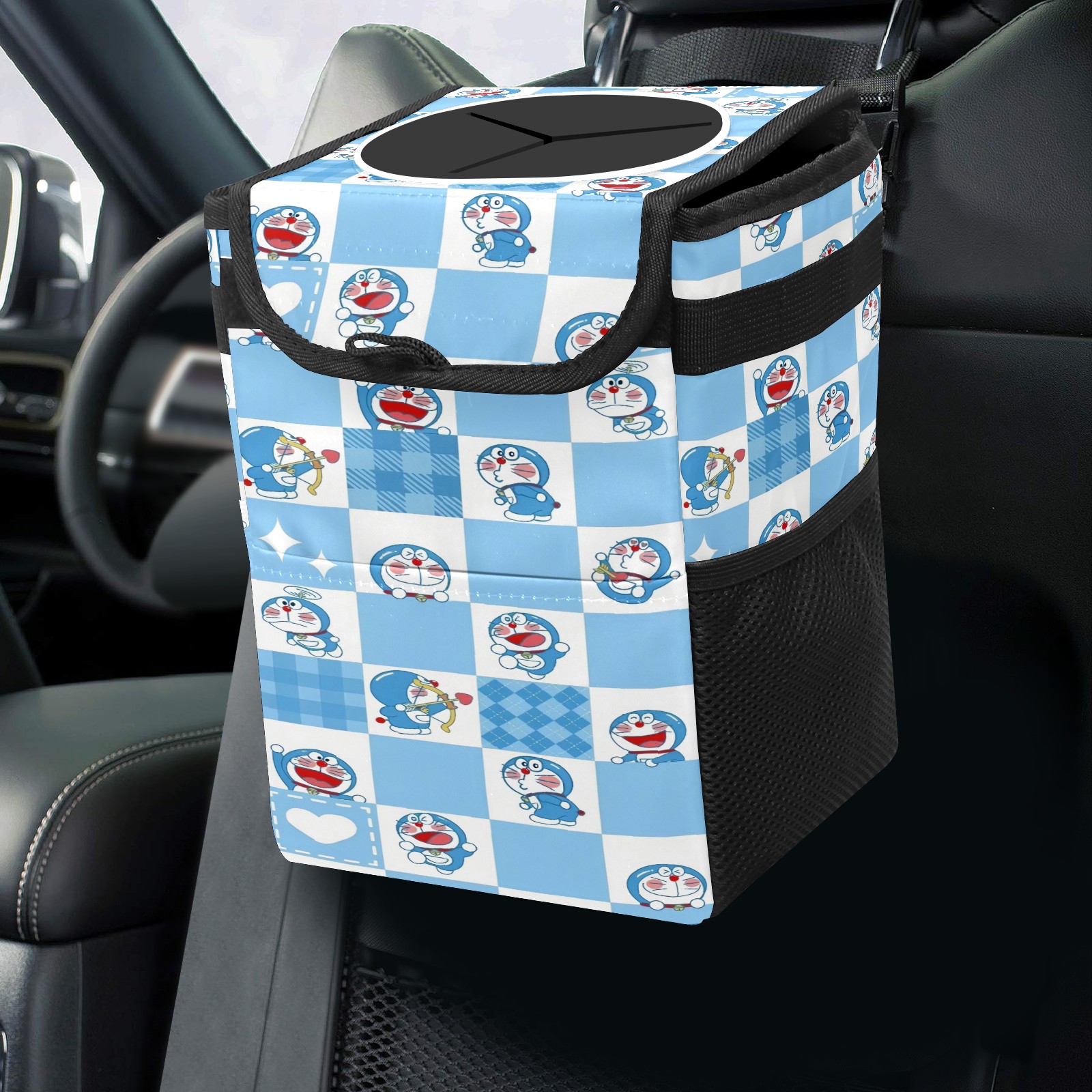 • <p>Keep your car neat with this practical car trash can—built for durability, versatility, and on-the-go convenience! Crafted from quality twill fabric with a waterproof lining, it prevents leaks, keeping seats/floors clean. Clean easily: empty directly or secure a disposable bag with side clips. Adjustable pull cord fits floor, seat, or headrest. 9.5x6.3x6.7 inches, ample space for daily trash, folds flat for storage. More than a trash can, it doubles as a storage bag for cups, toys, docs, and small gadgets—must-have car interior accessory. Installs in seconds on seats, console, or gear shift; adjustable straps keep it stable, no slipping on bumpy roads. Perfect gift for new car owners!</p>