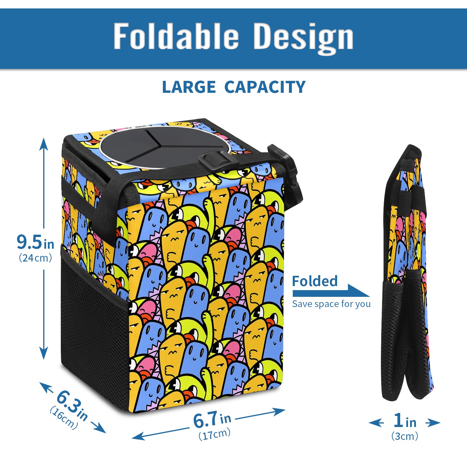• <p>Keep your car neat with this practical car trash can—built for durability, versatility, and on-the-go convenience! Crafted from quality twill fabric with a waterproof lining, it prevents leaks, keeping seats/floors clean. Clean easily: empty directly or secure a disposable bag with side clips. Adjustable pull cord fits floor, seat, or headrest. 9.5x6.3x6.7 inches, ample space for daily trash, folds flat for storage. More than a trash can, it doubles as a storage bag for cups, toys, docs, and small gadgets—must-have car interior accessory. Installs in seconds on seats, console, or gear shift; adjustable straps keep it stable, no slipping on bumpy roads. Perfect gift for new car owners!</p>