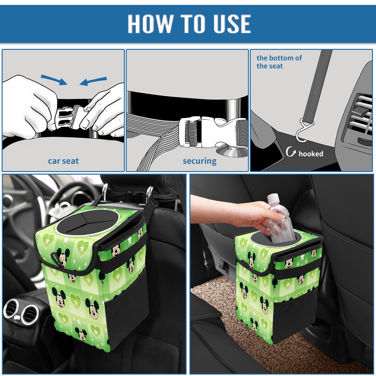 Car Garbage Can — Multi-functional, Lightweight Portable, Reusable Vehicle Trash Can, Waterproof with Sufficient Storage Capacity Mouse Green