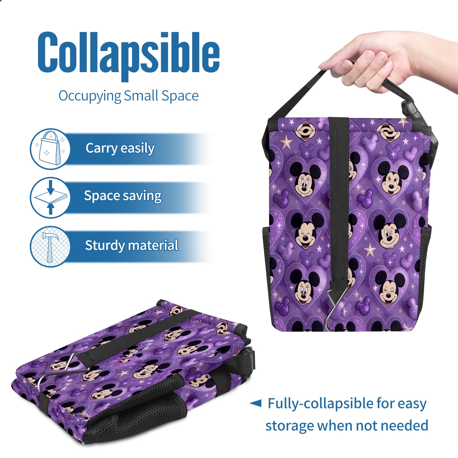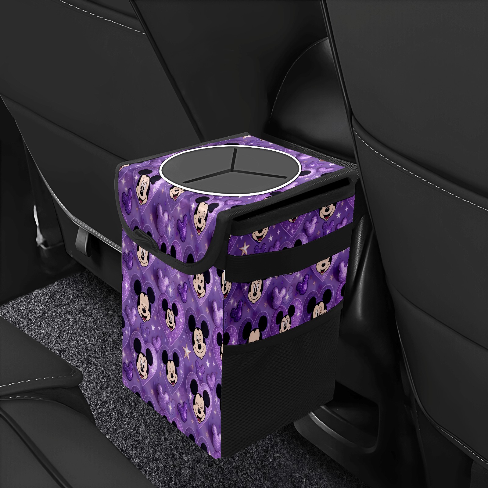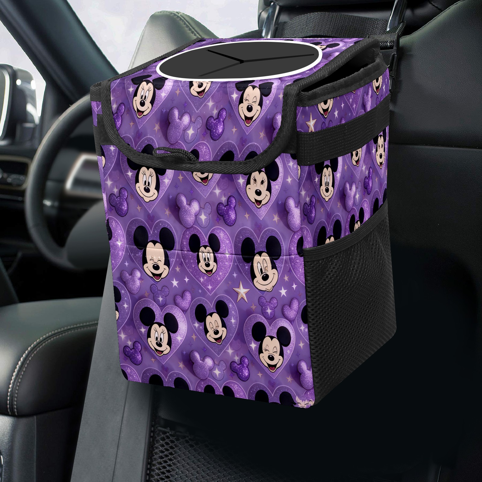 Car Garbage Can — Multi-functional, Lightweight Portable, Reusable Vehicle Trash Can, Waterproof with Sufficient Storage Capacity Mysterious Mouse Purple