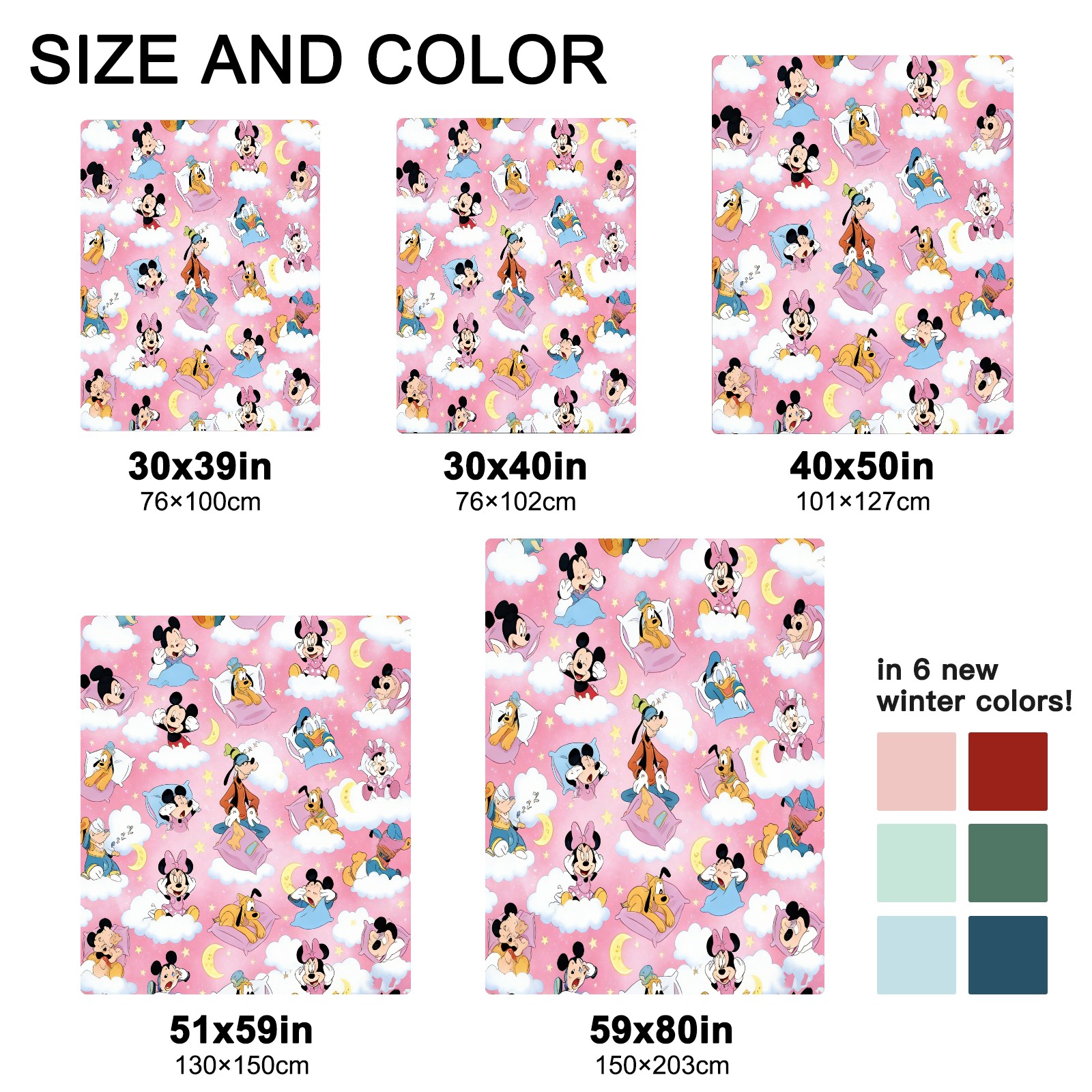 <strong></strong><p><strong>【Size】</strong>5 sizes. 30x39in/76x100cm; 30x40in/76x102cm; 40x50in/101x127cm; 51x59in /130x150cm; 59x80in/150x203cm <strong>【Product performance】</strong> &nbsp;</p><p>❤Skin-Friendly &amp; Breathable&nbsp;</p><p>❤Lightweight &amp; Folded tightly&nbsp;</p><p>❤Anti-pilling &amp; Anti-wrinkle &amp; Anti-allergy&nbsp;</p><p>❤Baby Sleep, Travel, Sofa, Nap Blanket , Bed Sheet</p>