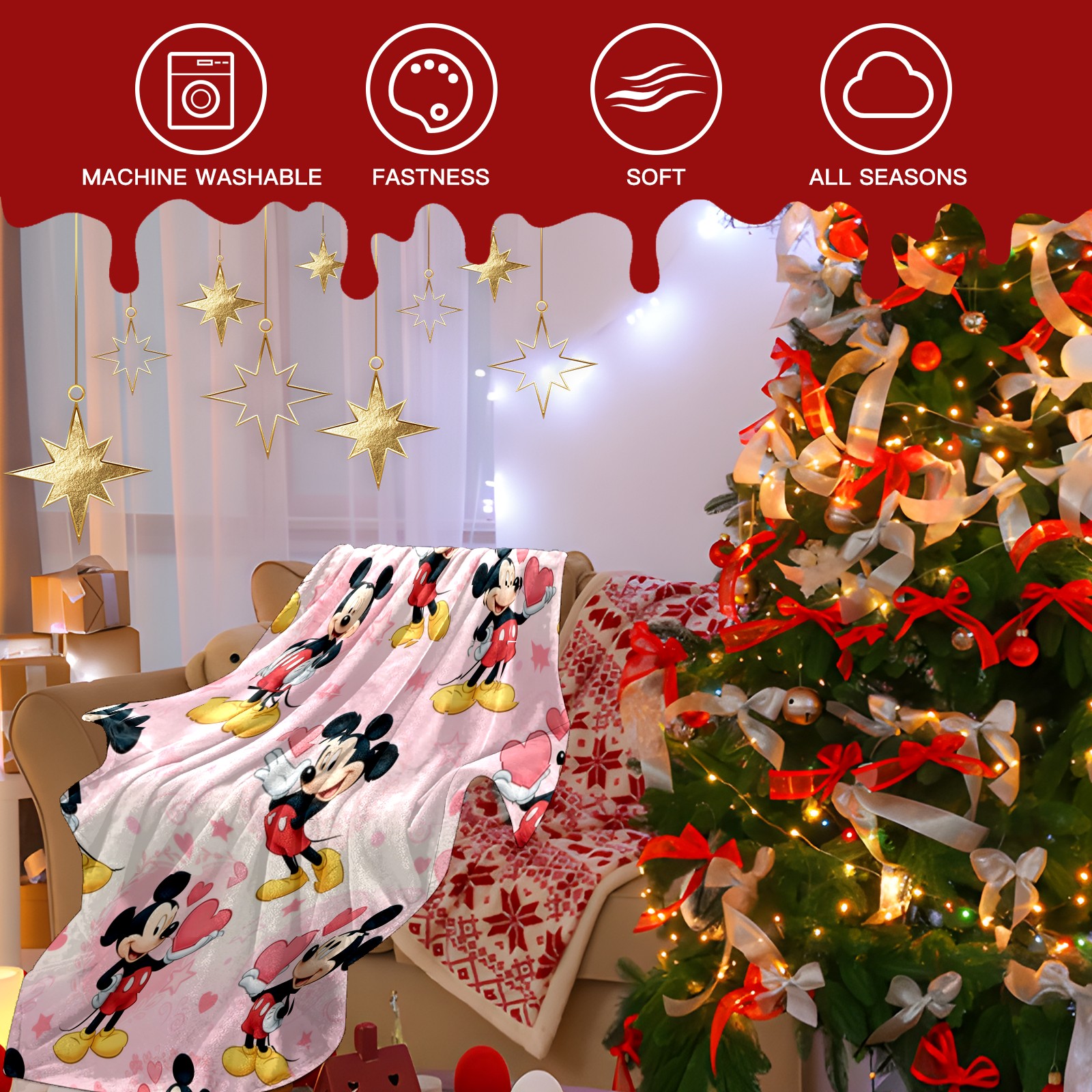 Counullo Flannel Throw Blanket, Ultra Soft Anti-Pilling Blanket for Couch & Bed, Lightweight Cozy Blanket for Travel, Home, Camping Gift - (30" x 39"), Fiery Mouse Red