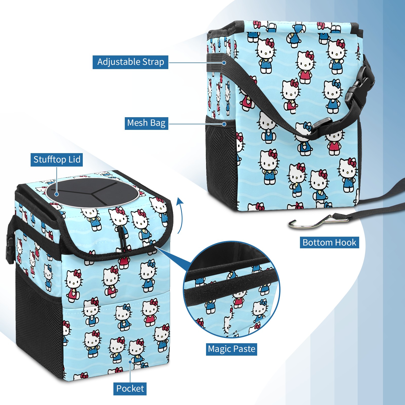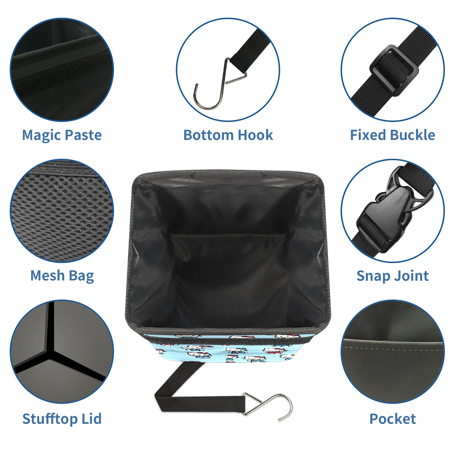Car Garbage Can — Multi-functional, Lightweight Portable, Reusable Vehicle Trash Can, Waterproof with Sufficient Storage Capacity Fresh Cat Blue