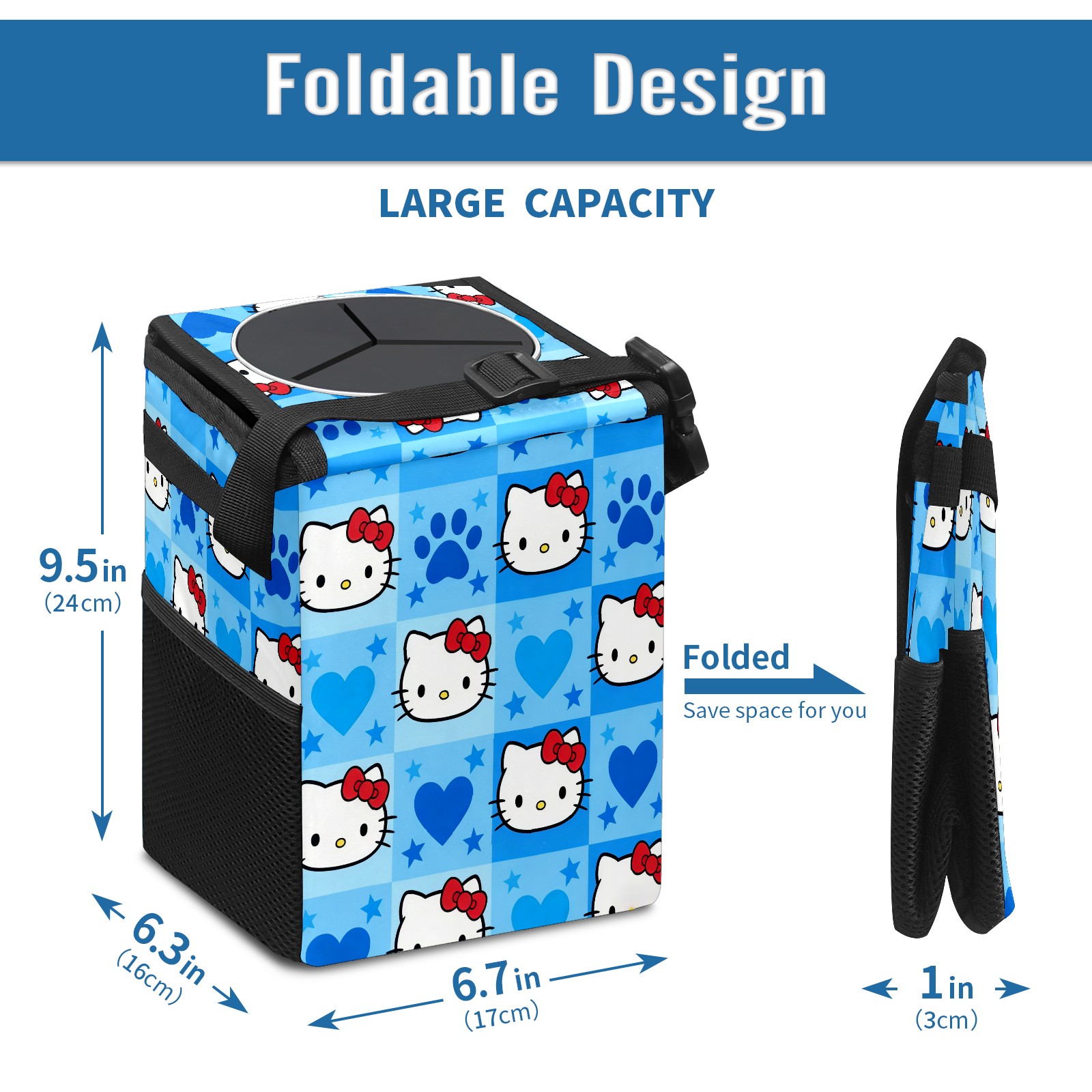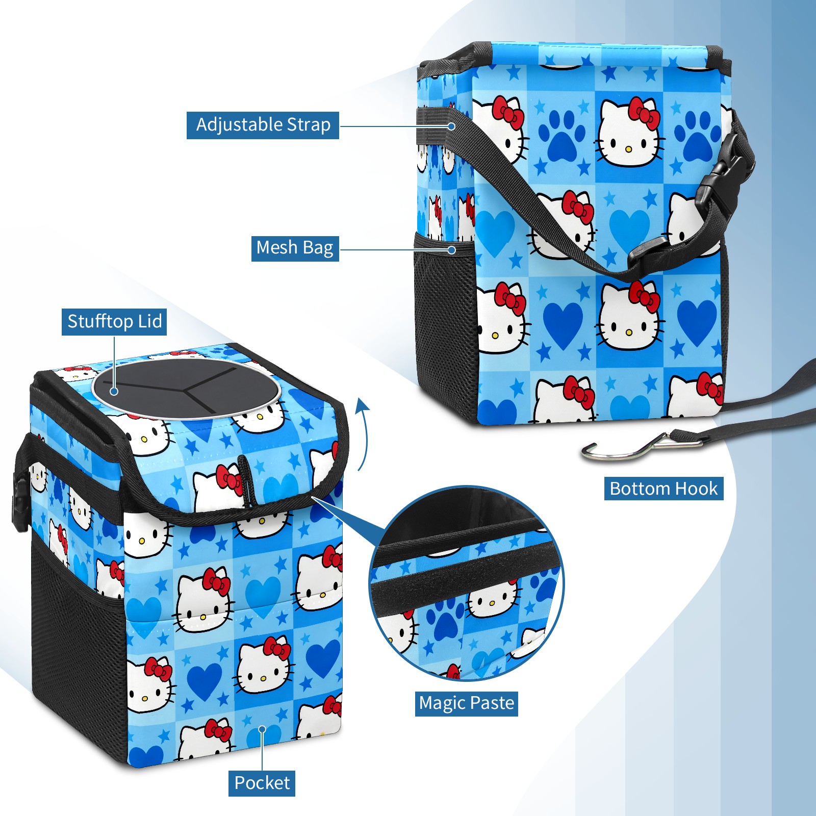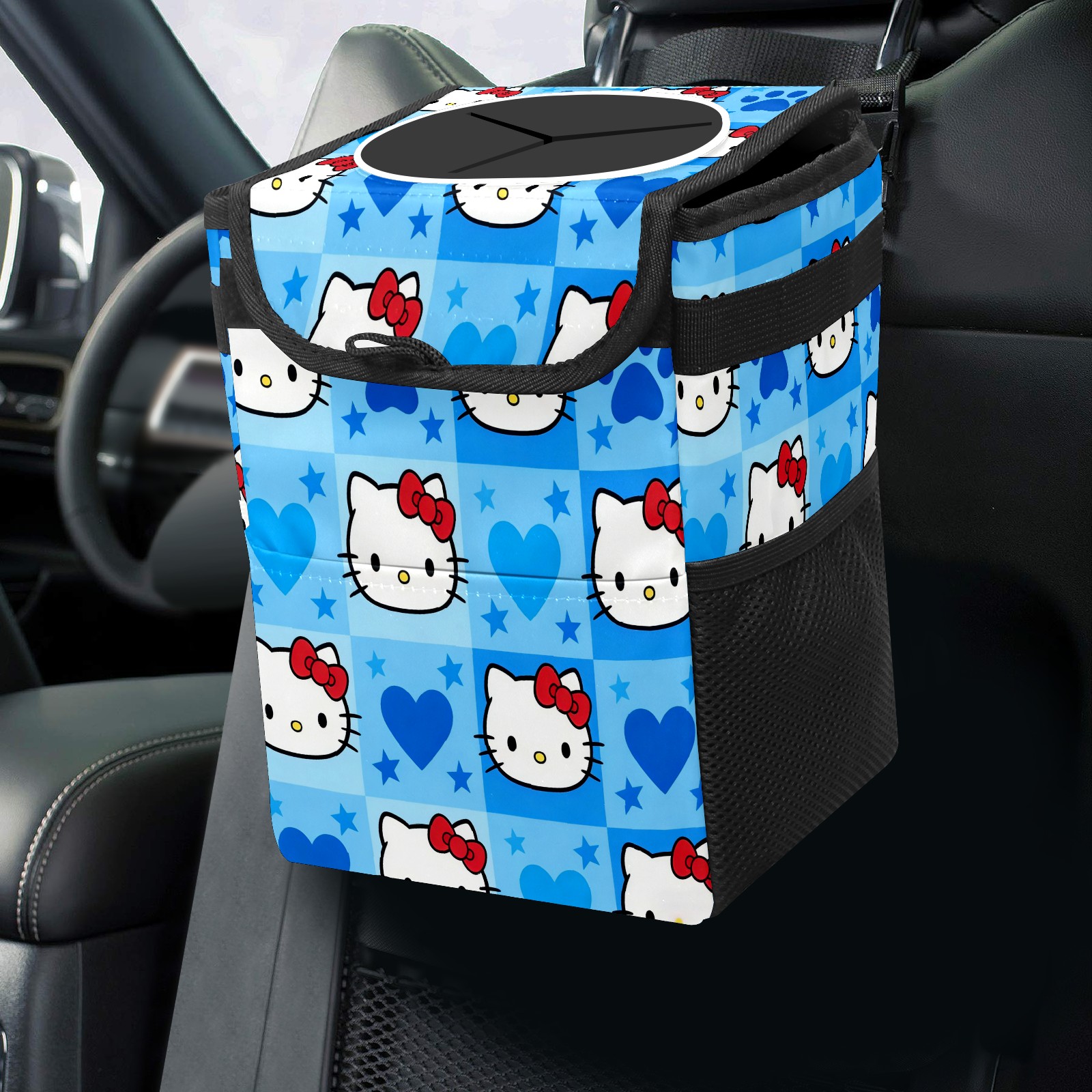 Car Garbage Can — Multi-functional, Lightweight Portable, Reusable Vehicle Trash Can, Waterproof with Sufficient Storage Capacity Dynamic Hello Kitty Blue