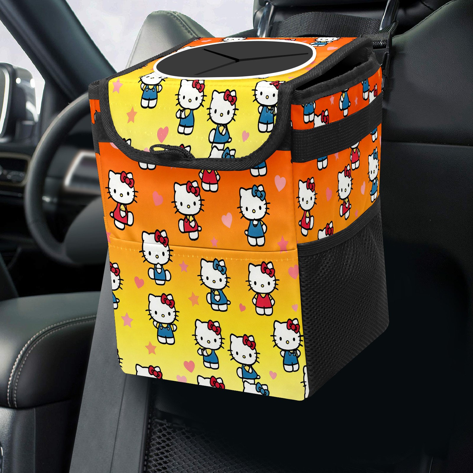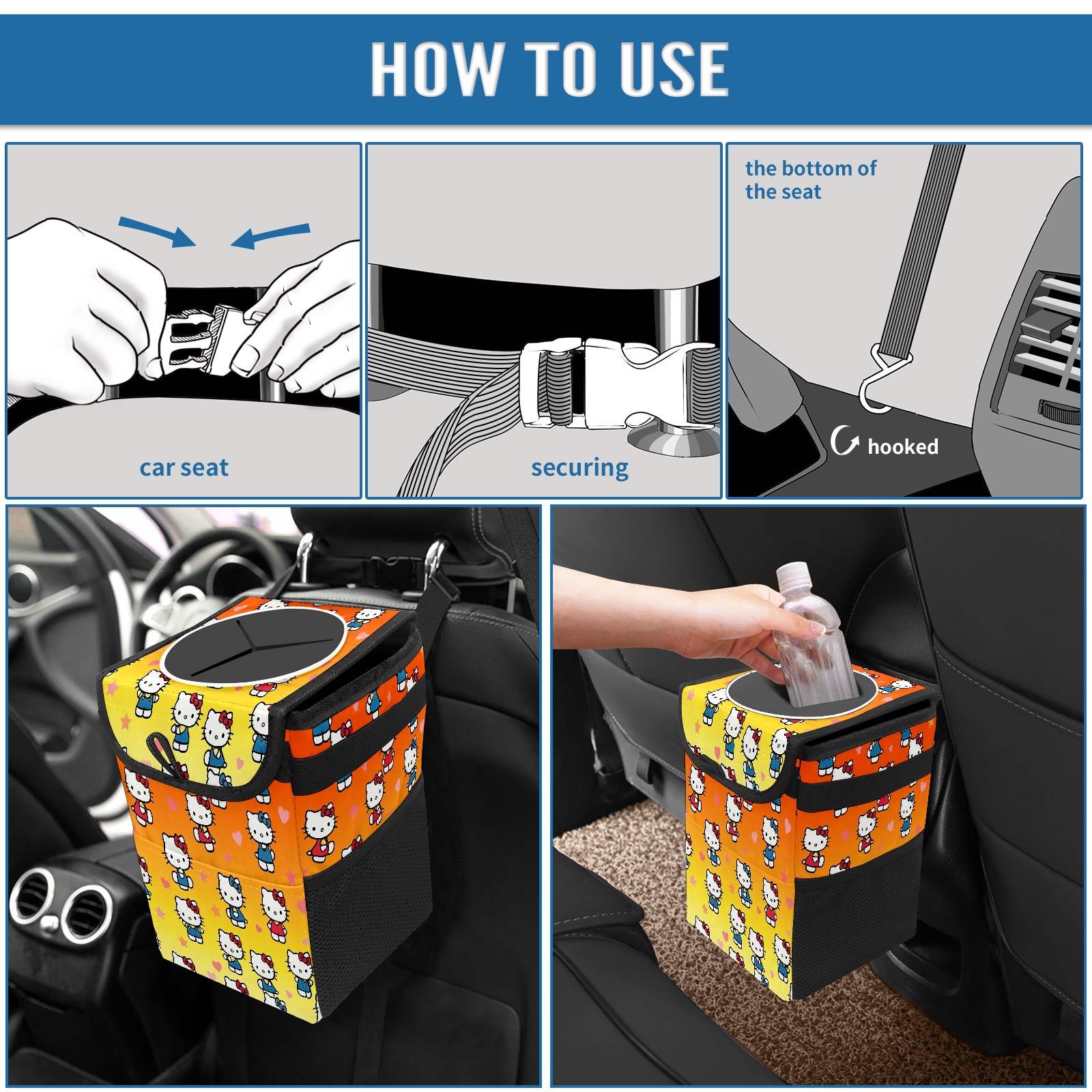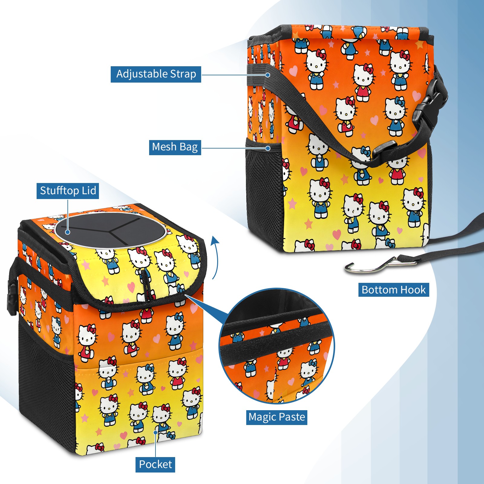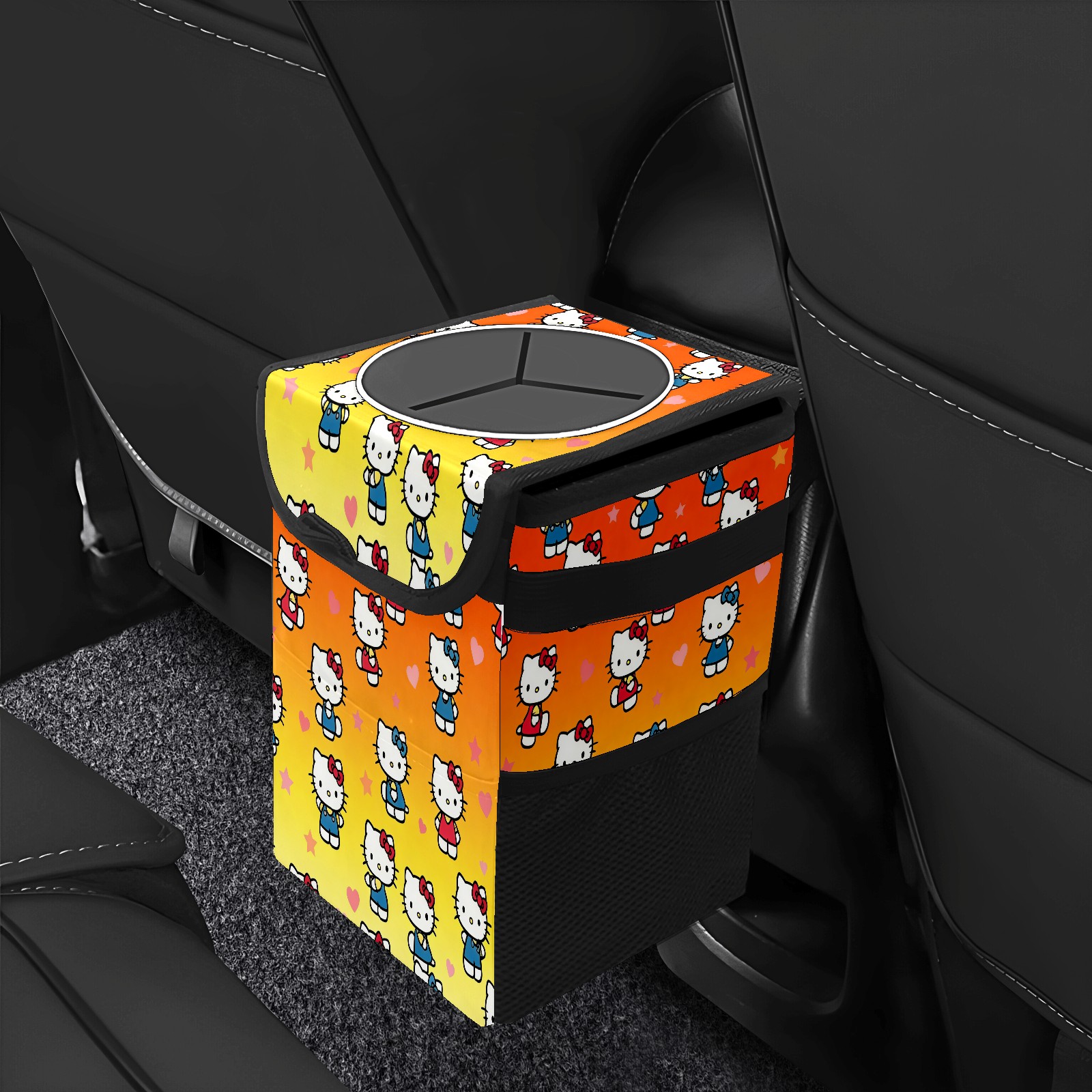 Car Garbage Can — Multi-functional, Lightweight Portable, Reusable Vehicle Trash Can, Waterproof with Sufficient Storage Capacity Warm Cat Orange