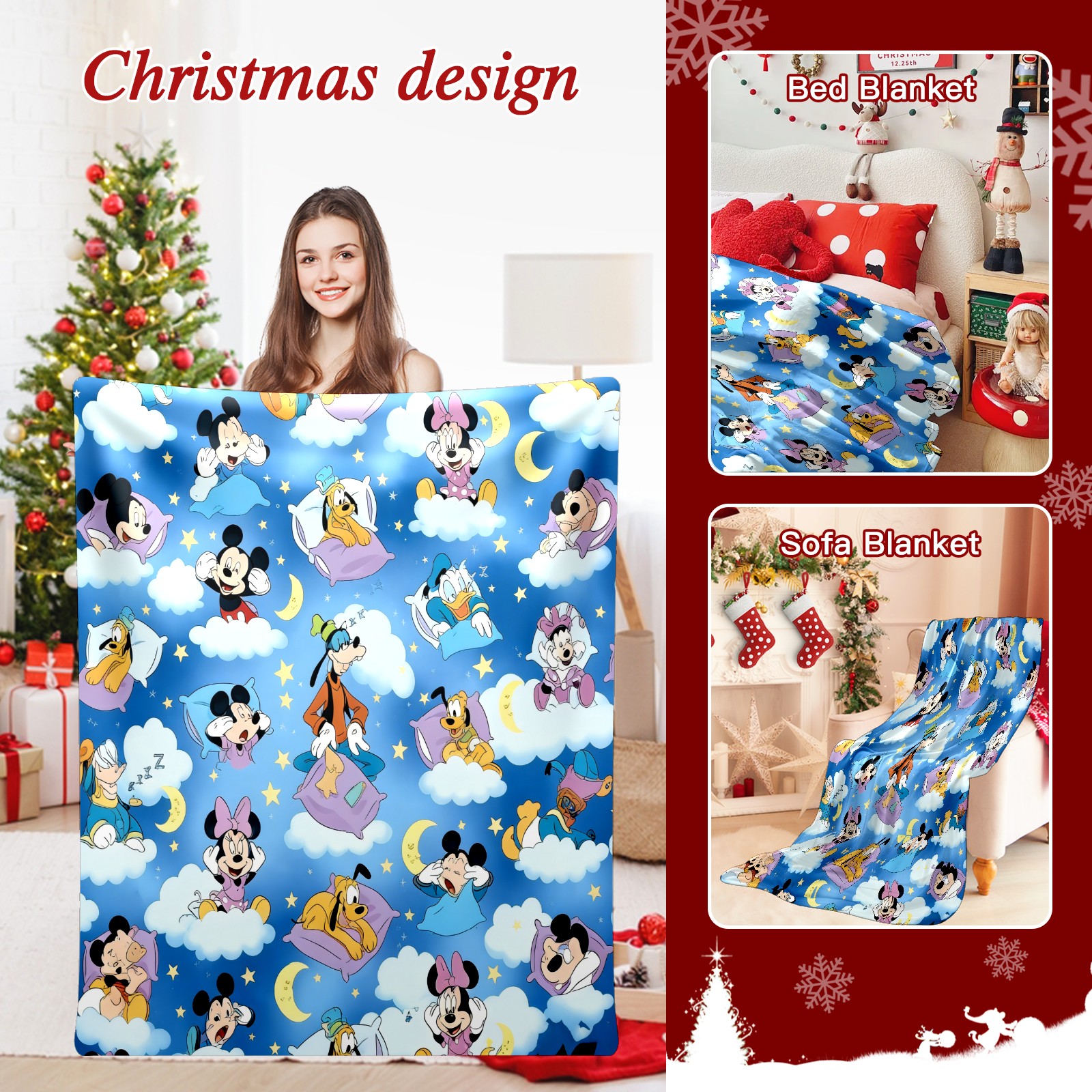 Counullo Flannel Throw Blanket, Ultra Soft Anti-Pilling Blanket for Couch & Bed, Lightweight Cozy Blanket for Travel, Home, Camping Gift - (30" x 39"), Vibrant Character Blue