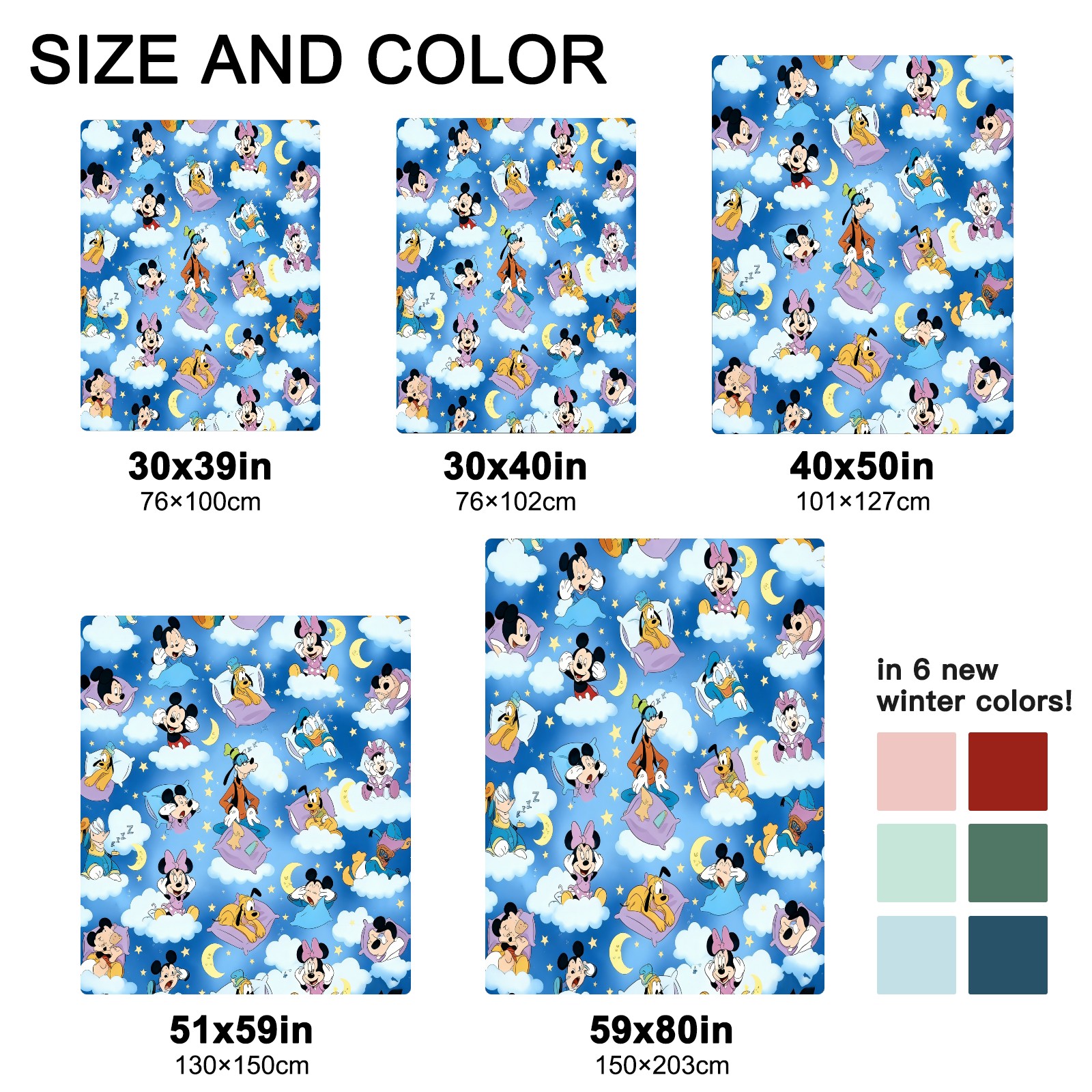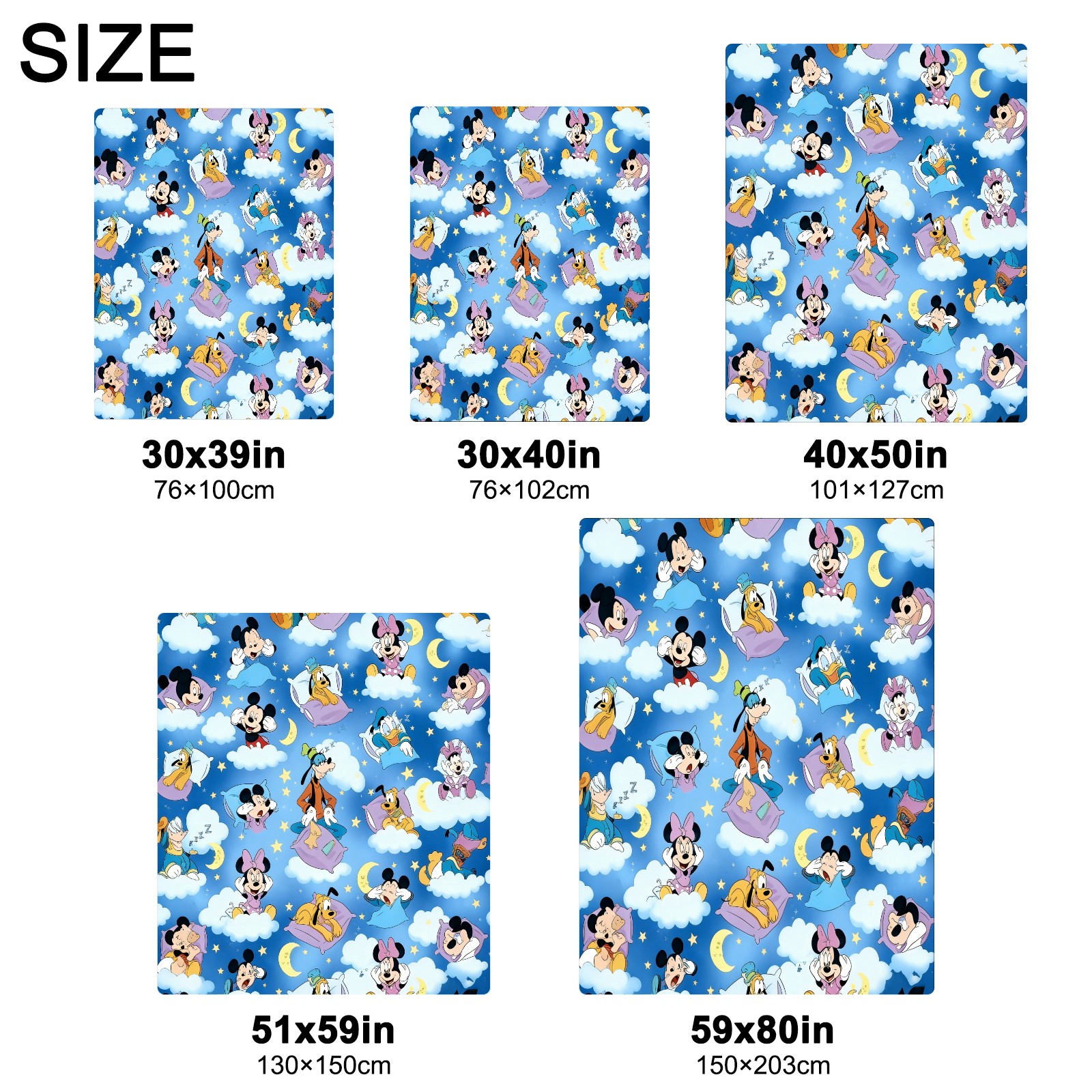 <strong></strong><p><strong>【Size】</strong>5 sizes. 30x39in/76x100cm; 30x40in/76x102cm; 40x50in/101x127cm; 51x59in /130x150cm; 59x80in/150x203cm <strong>【Product performance】</strong> &nbsp;</p><p>❤Skin-Friendly &amp; Breathable&nbsp;</p><p>❤Lightweight &amp; Folded tightly&nbsp;</p><p>❤Anti-pilling &amp; Anti-wrinkle &amp; Anti-allergy&nbsp;</p><p>❤Baby Sleep, Travel, Sofa, Nap Blanket , Bed Sheet</p>