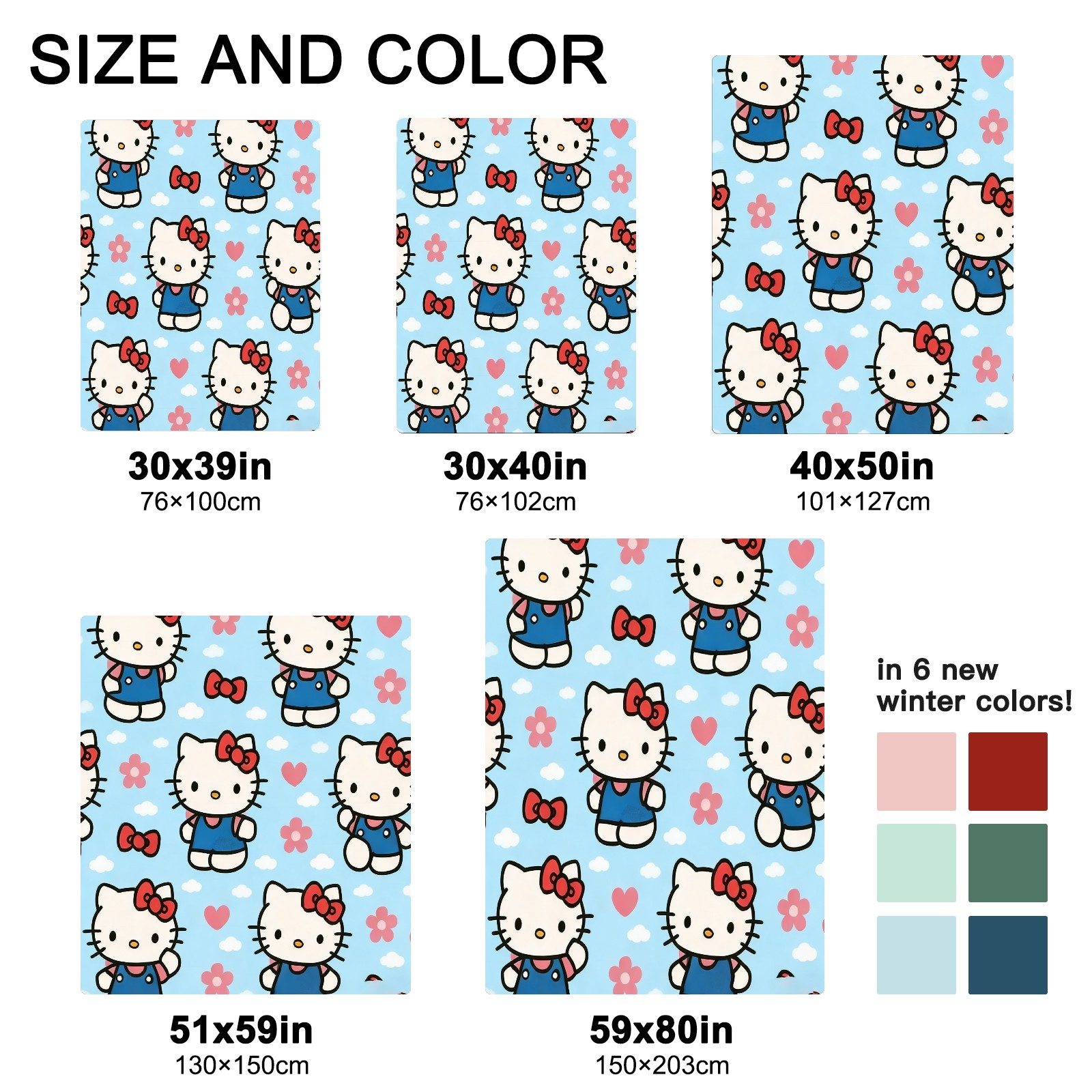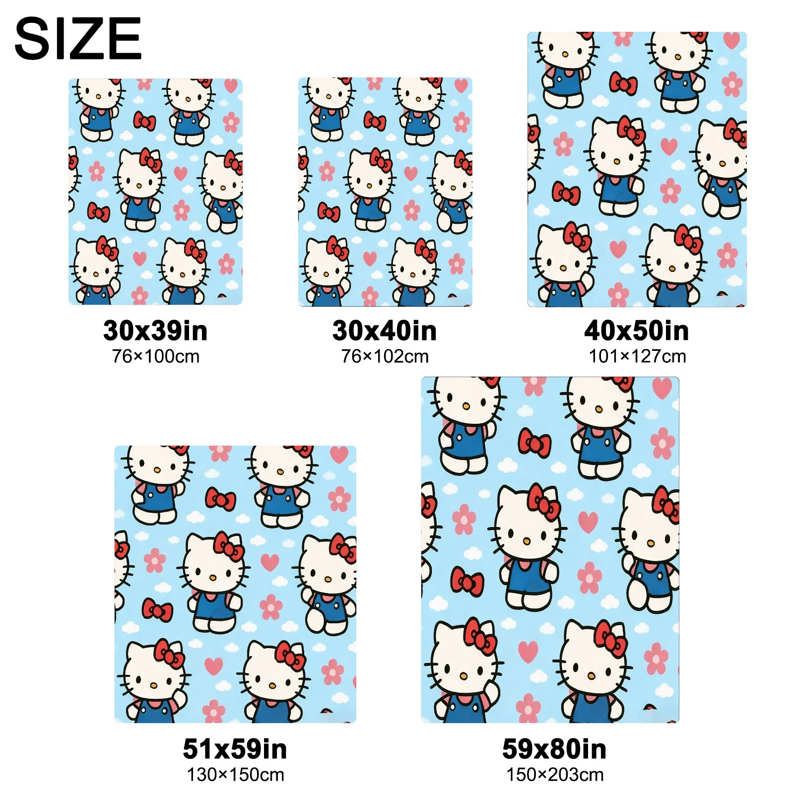<strong></strong><p><strong>【Size】</strong>5 sizes. 30x39in/76x100cm; 30x40in/76x102cm; 40x50in/101x127cm; 51x59in /130x150cm; 59x80in/150x203cm <strong>【Product performance】</strong> &nbsp;</p><p>❤Skin-Friendly &amp; Breathable&nbsp;</p><p>❤Lightweight &amp; Folded tightly&nbsp;</p><p>❤Anti-pilling &amp; Anti-wrinkle &amp; Anti-allergy&nbsp;</p><p>❤Baby Sleep, Travel, Sofa, Nap Blanket , Bed Sheet</p>