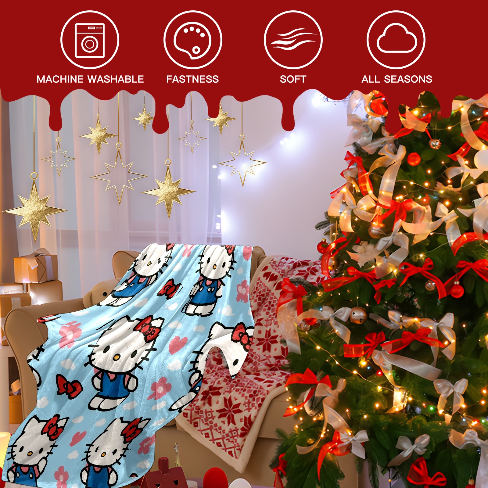 Counullo Flannel Throw Blanket, Ultra Soft Anti-Pilling Blanket for Couch & Bed, Lightweight Cozy Blanket for Travel, Home, Camping Gift - (30" x 39"), Warm Hello Kitty Pink