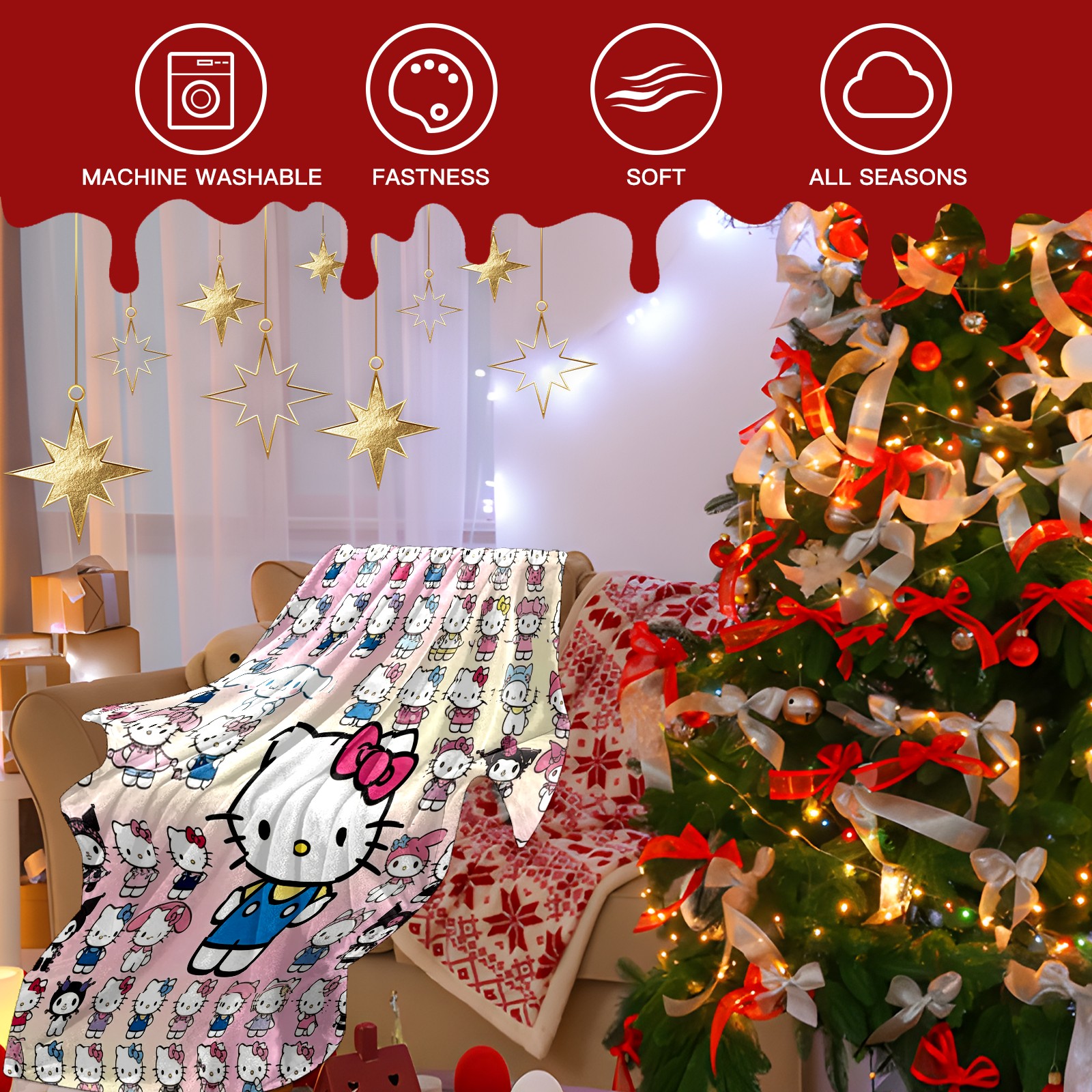 Counullo Flannel Throw Blanket, Ultra Soft Anti-Pilling Blanket for Couch & Bed, Lightweight Cozy Blanket for Travel, Home, Camping Gift - (30" x 39"), Hello Kitty Pink
