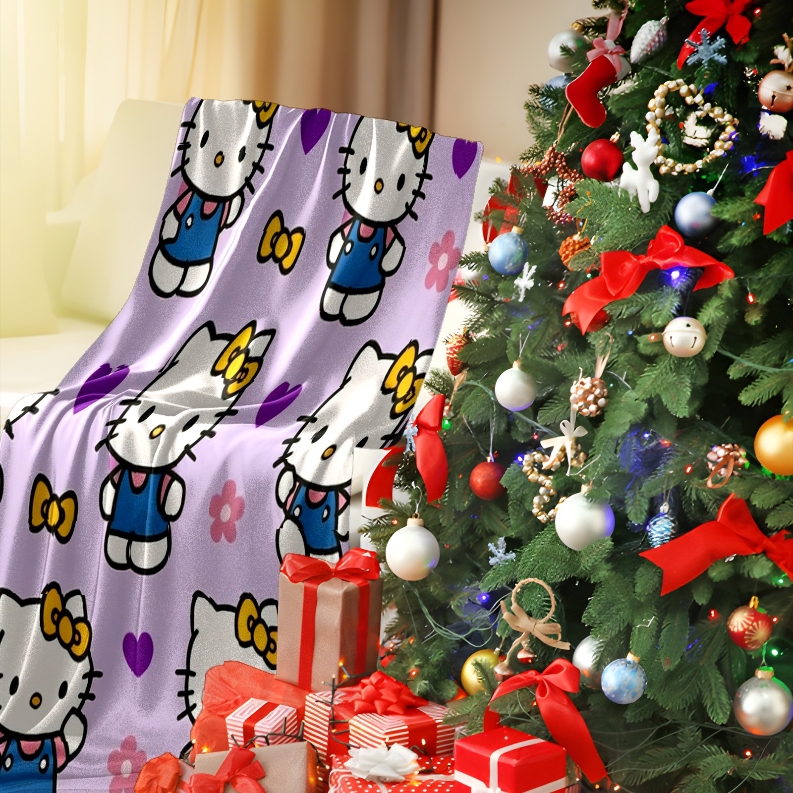 Counullo Flannel Throw Blanket, Ultra Soft Anti-Pilling Blanket for Couch & Bed, Lightweight Cozy Blanket for Travel, Home, Camping Gift - (30" x 39"), Elegant Cat Purple