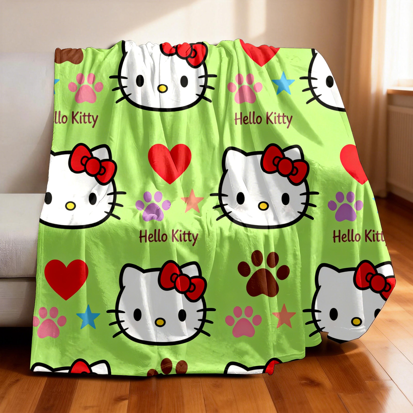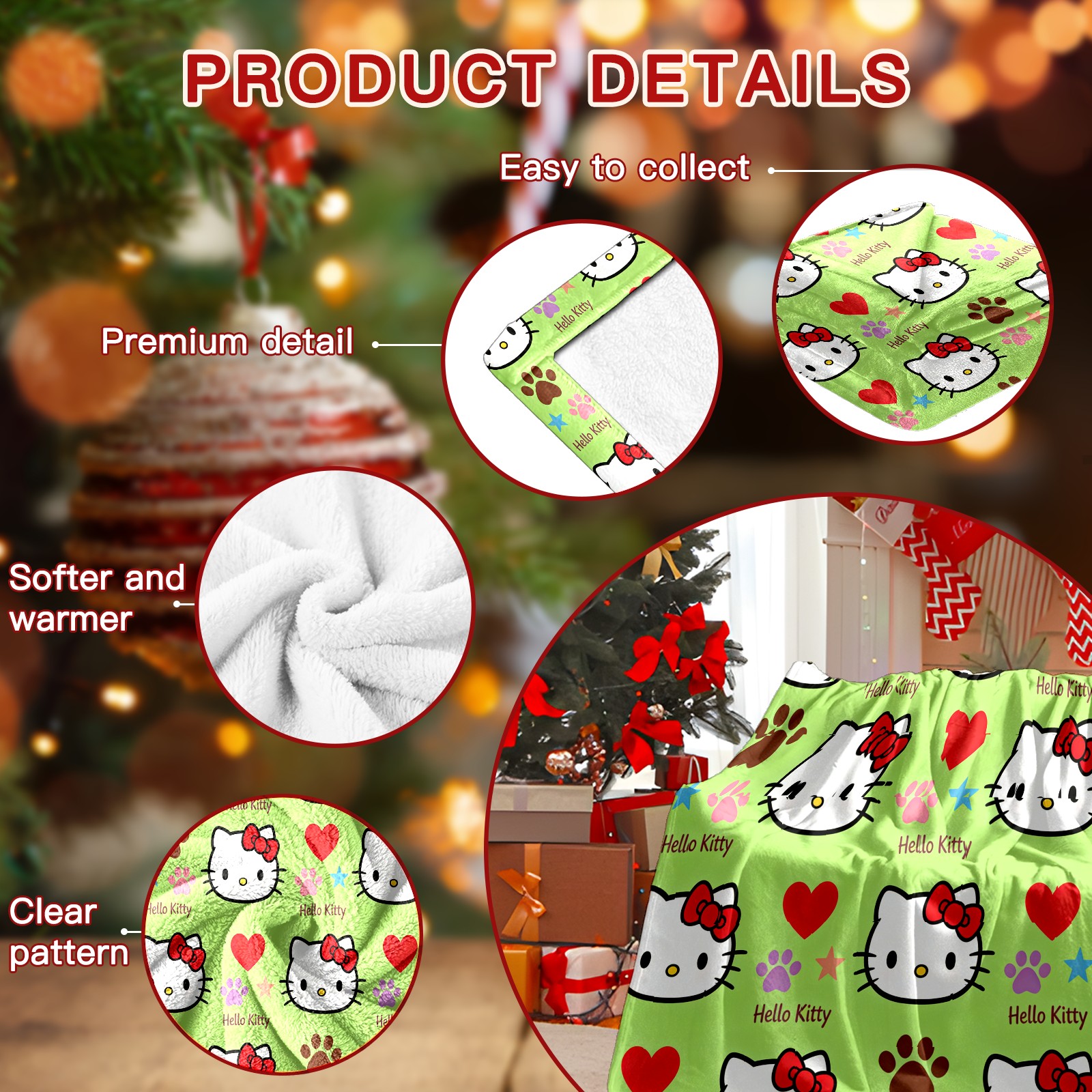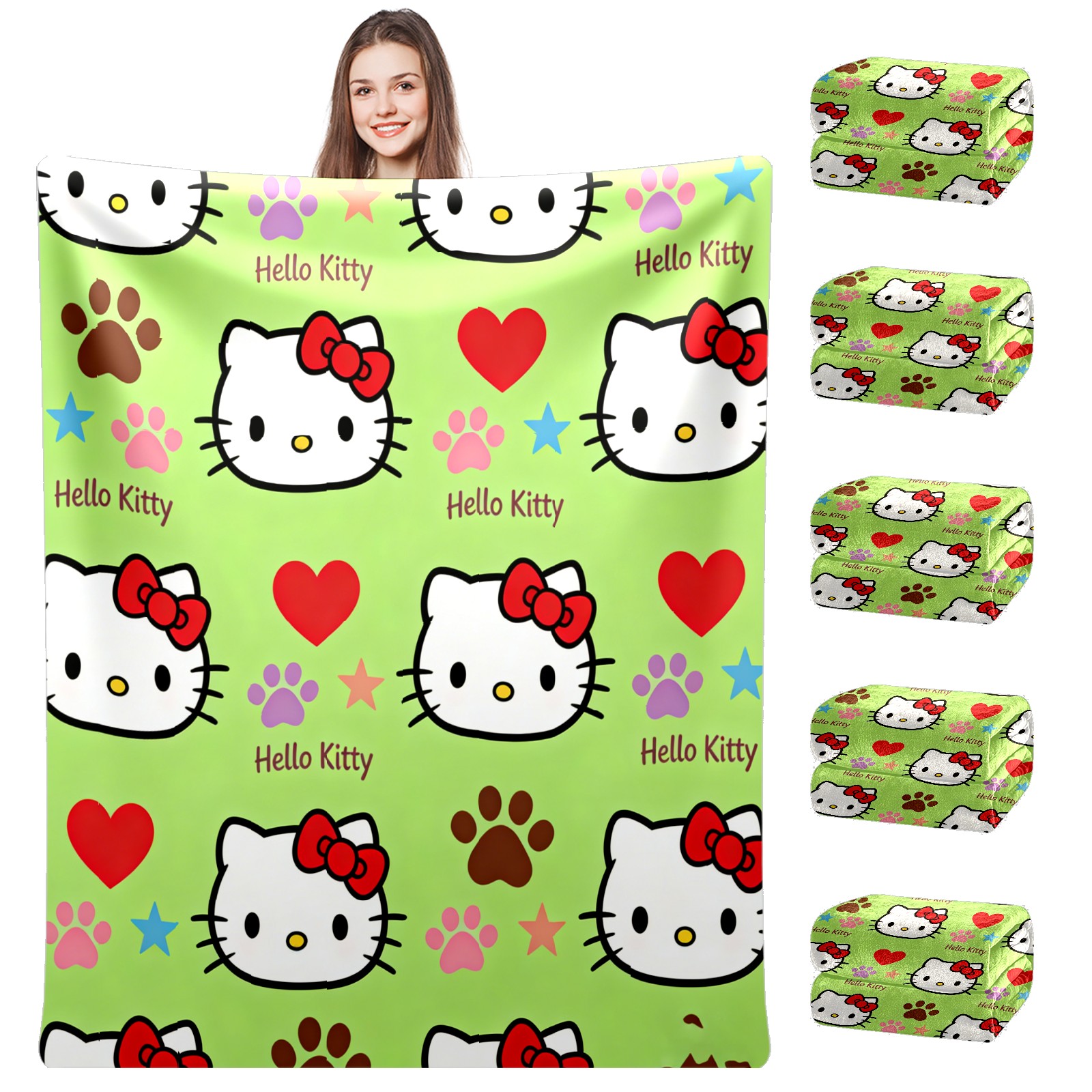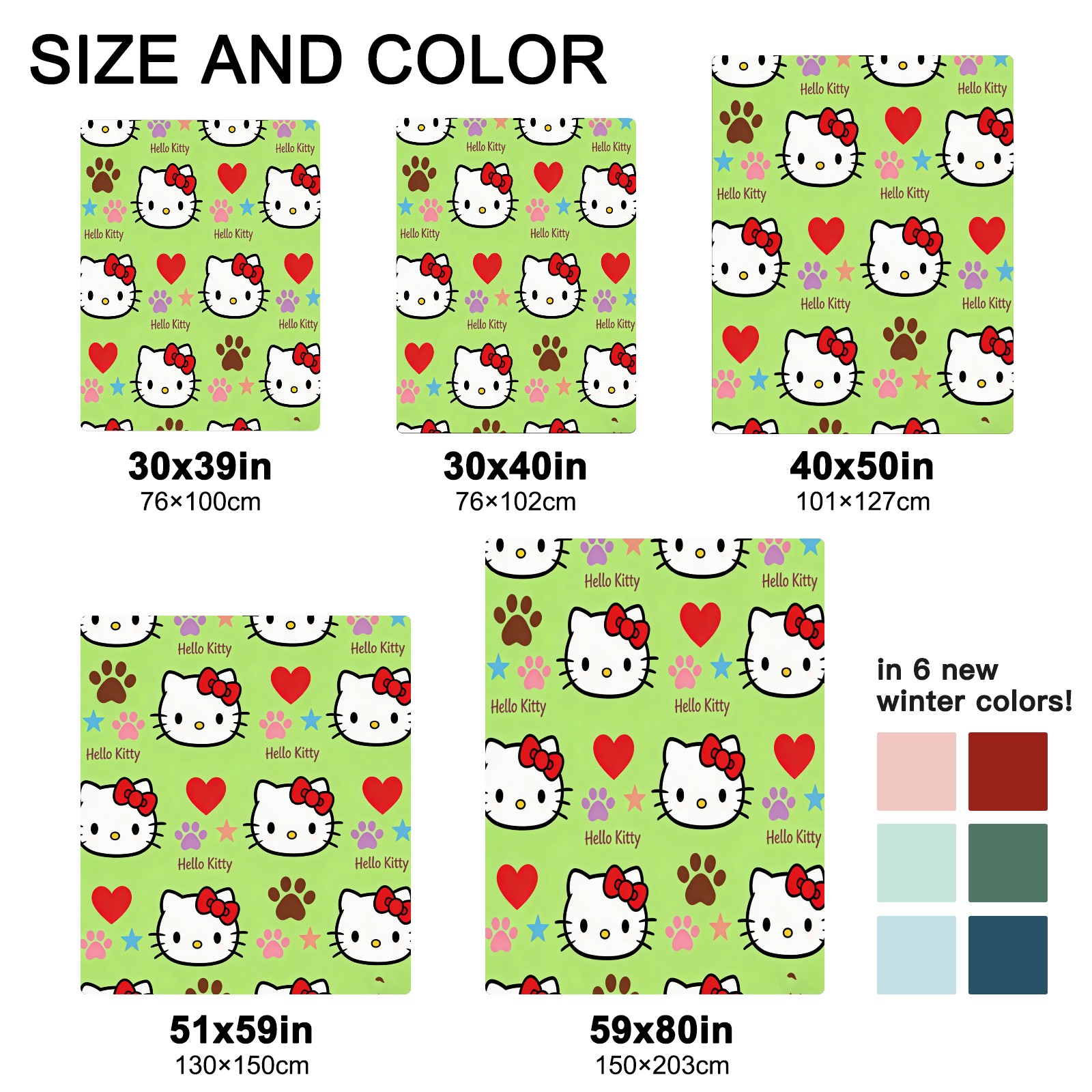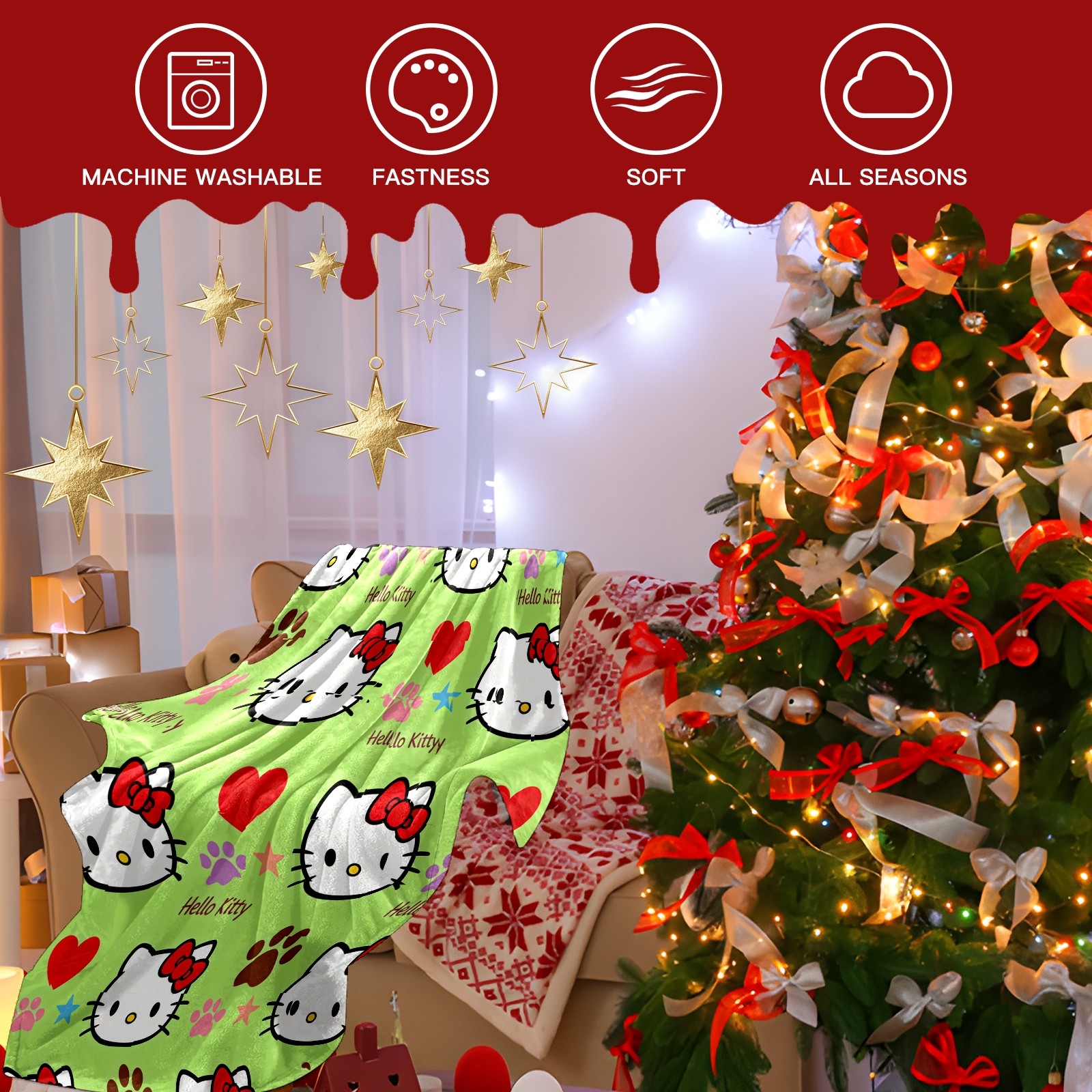 Counullo Flannel Throw Blanket, Ultra Soft Anti-Pilling Blanket for Couch & Bed, Lightweight Cozy Blanket for Travel, Home, Camping Gift - (30" x 39"), Fiery Hello Kitty Green
