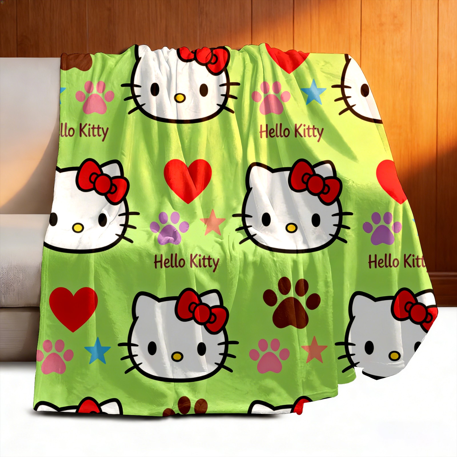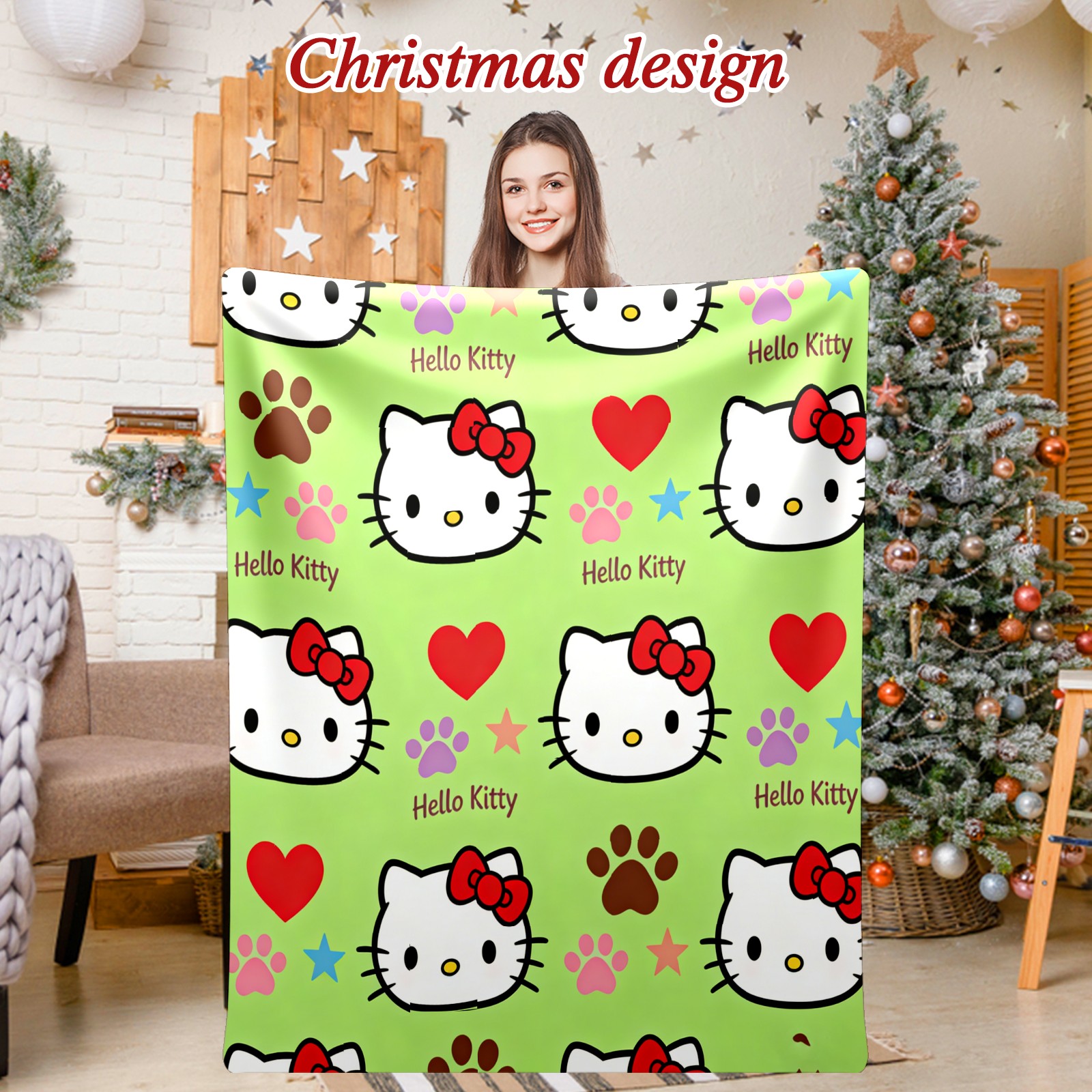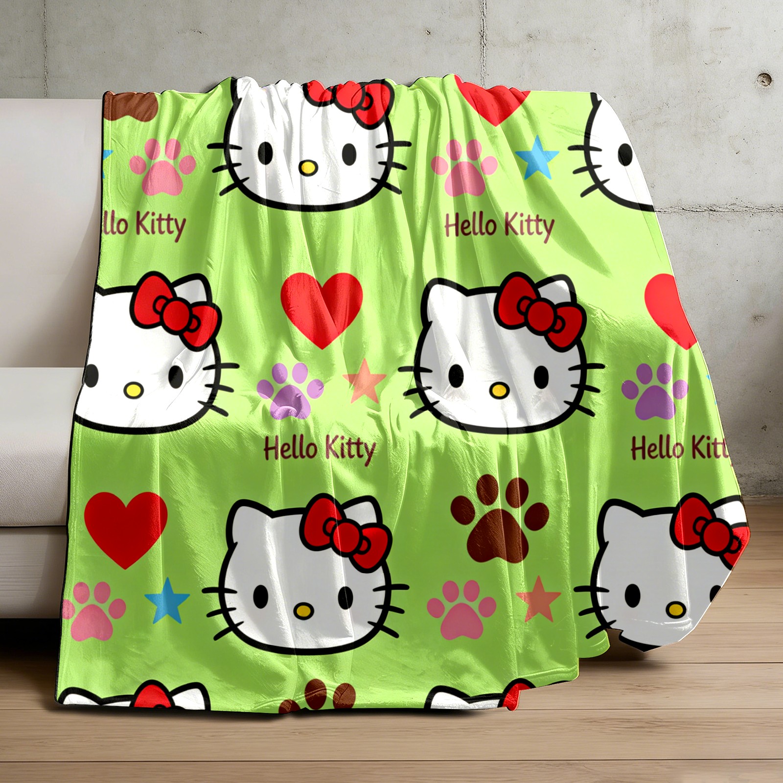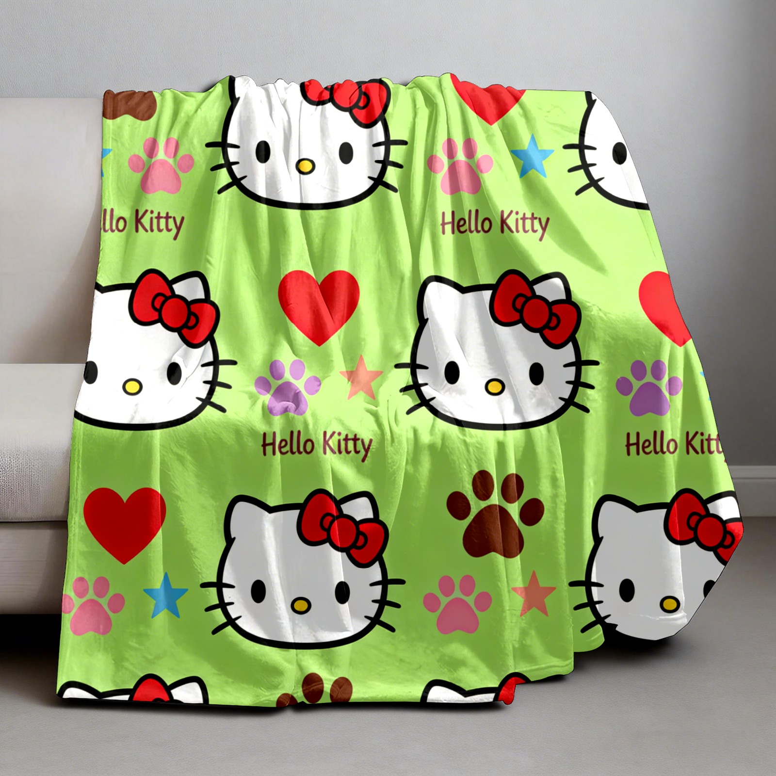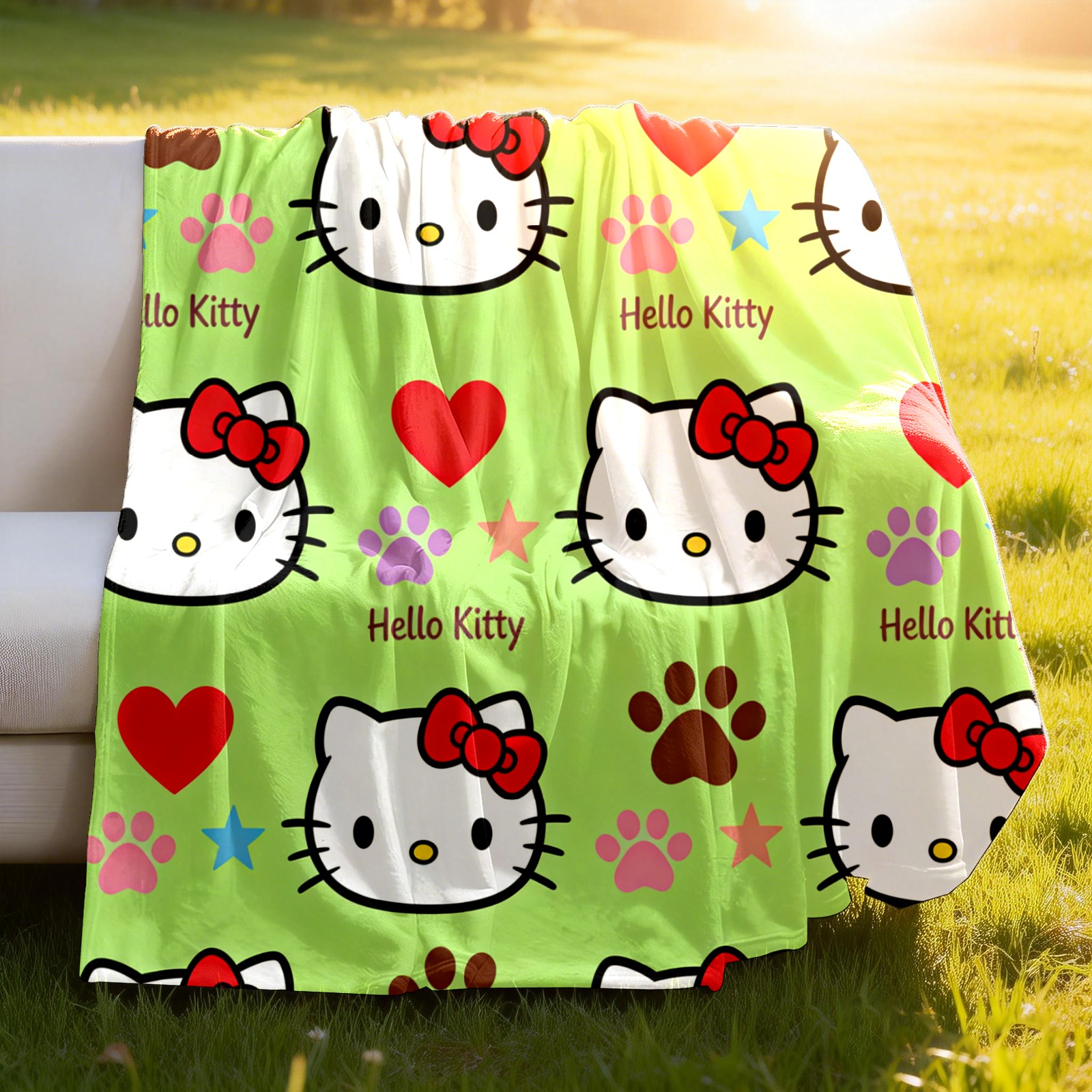 Counullo Flannel Throw Blanket, Ultra Soft Anti-Pilling Blanket for Couch & Bed, Lightweight Cozy Blanket for Travel, Home, Camping Gift - (30" x 39"), Fiery Hello Kitty Green