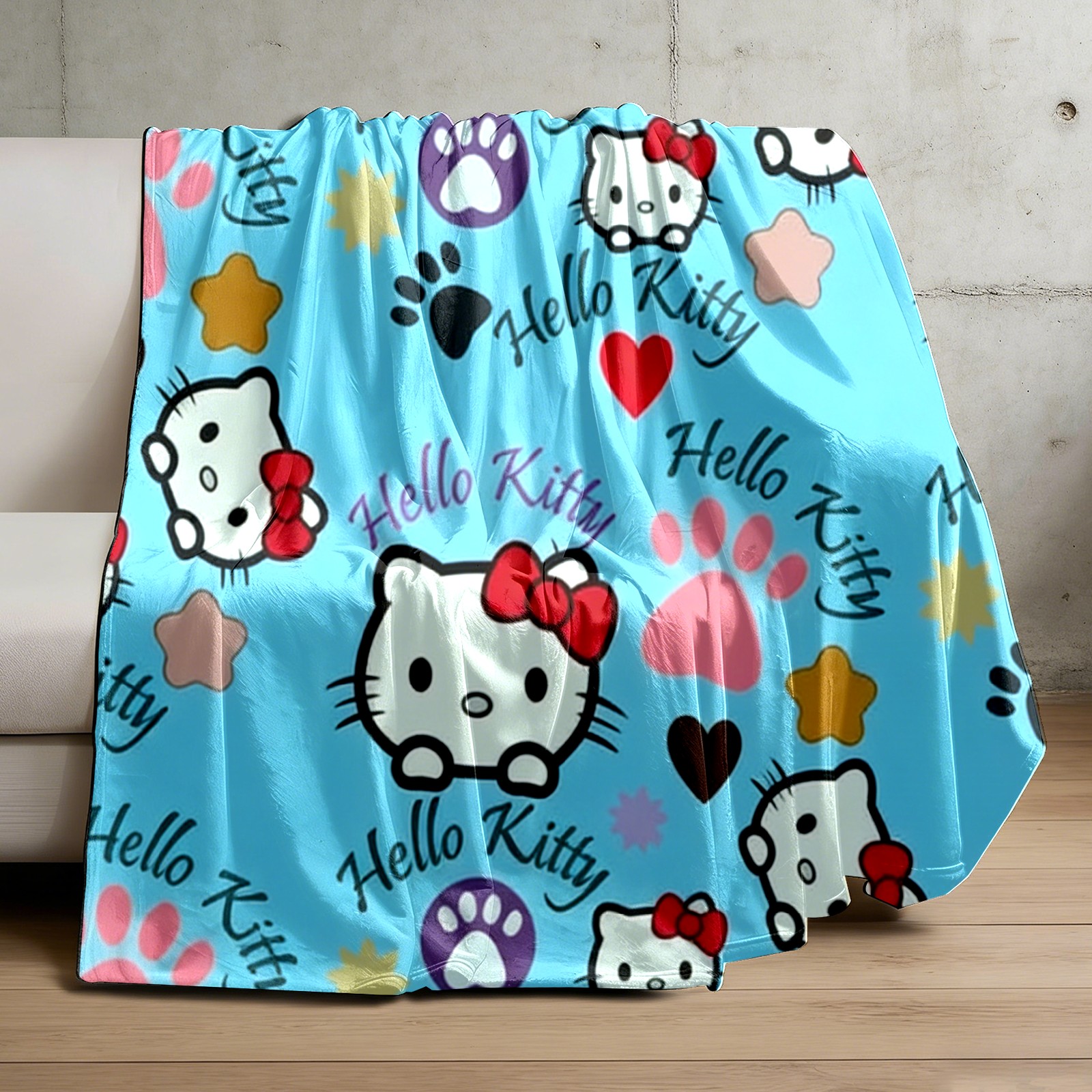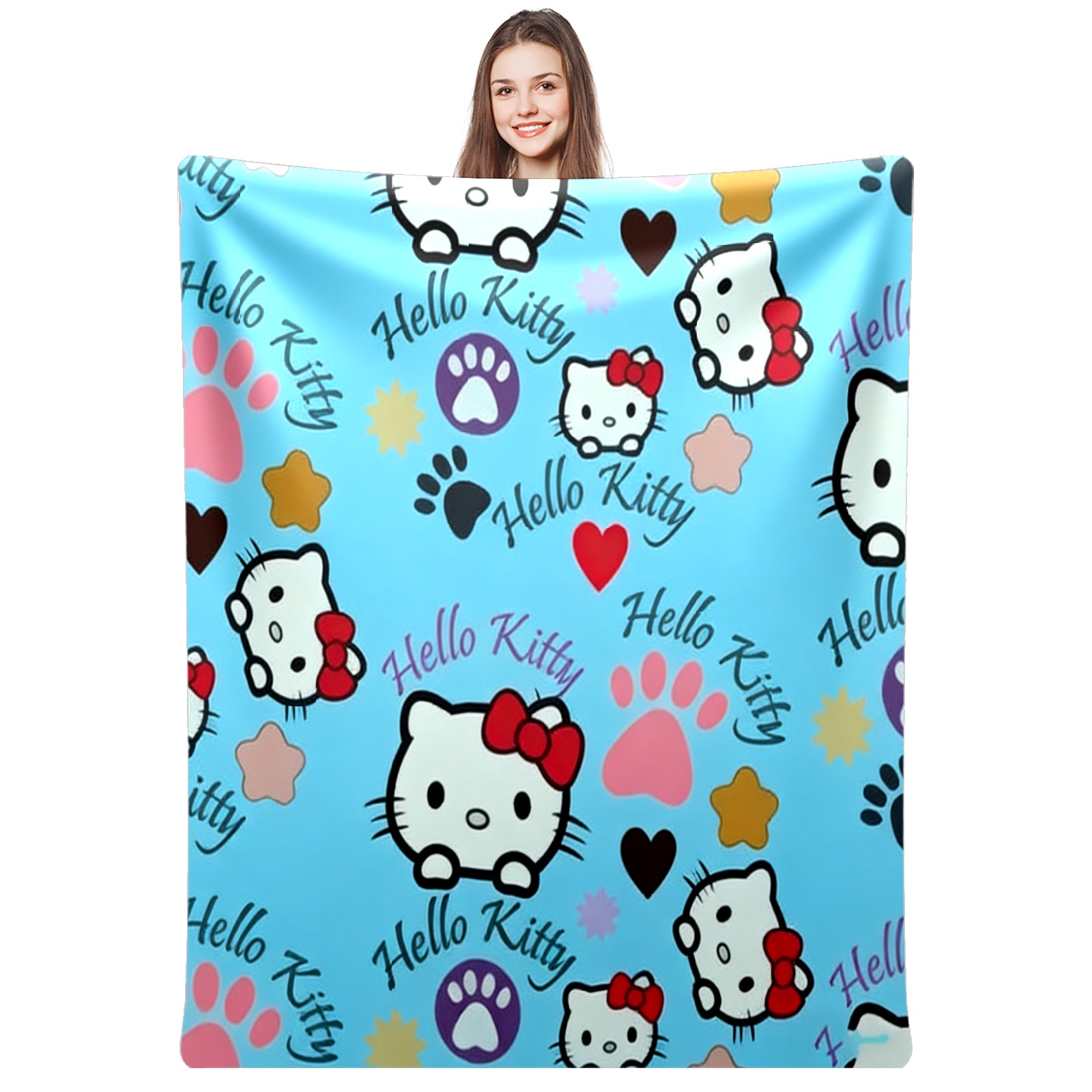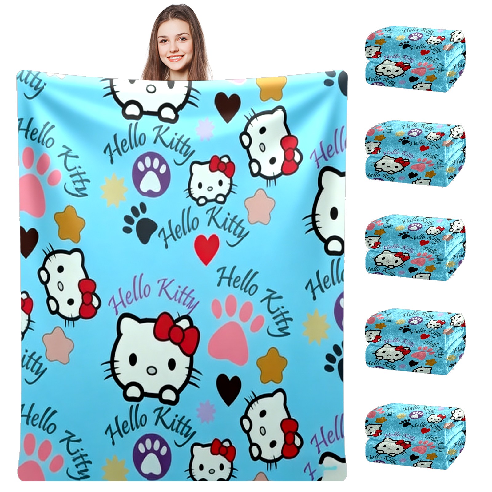 Counullo Flannel Throw Blanket, Ultra Soft Anti-Pilling Blanket for Couch & Bed, Lightweight Cozy Blanket for Travel, Home, Camping Gift - (30" x 39"), Bright Hello Kitty Blue