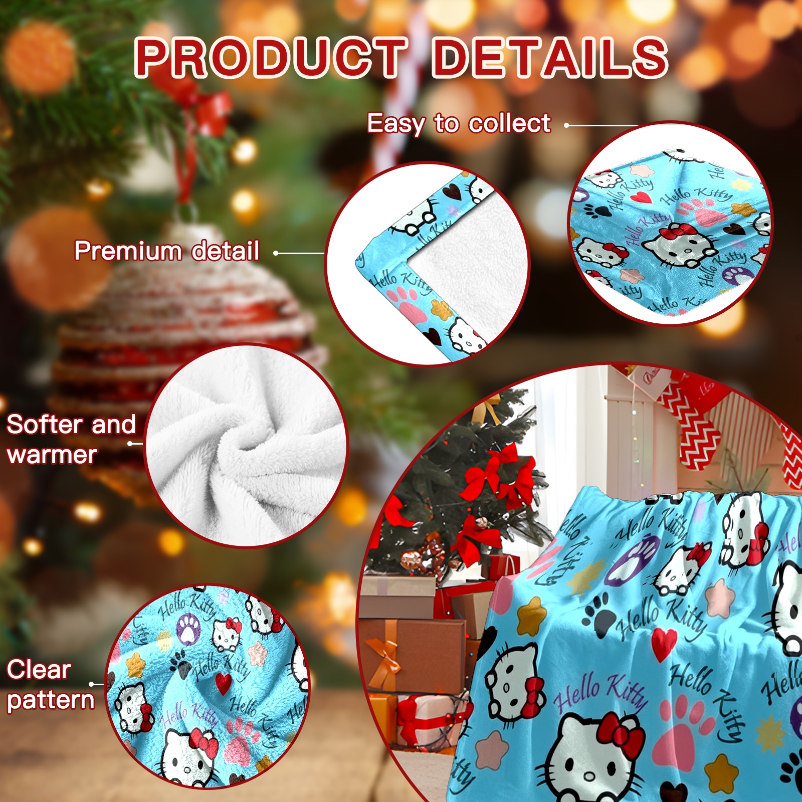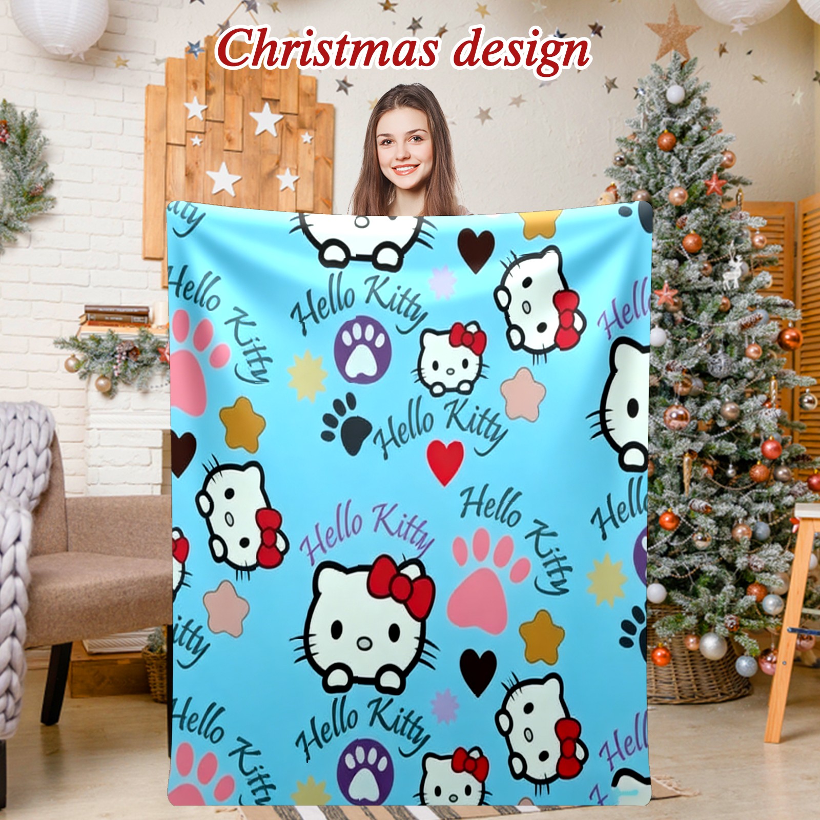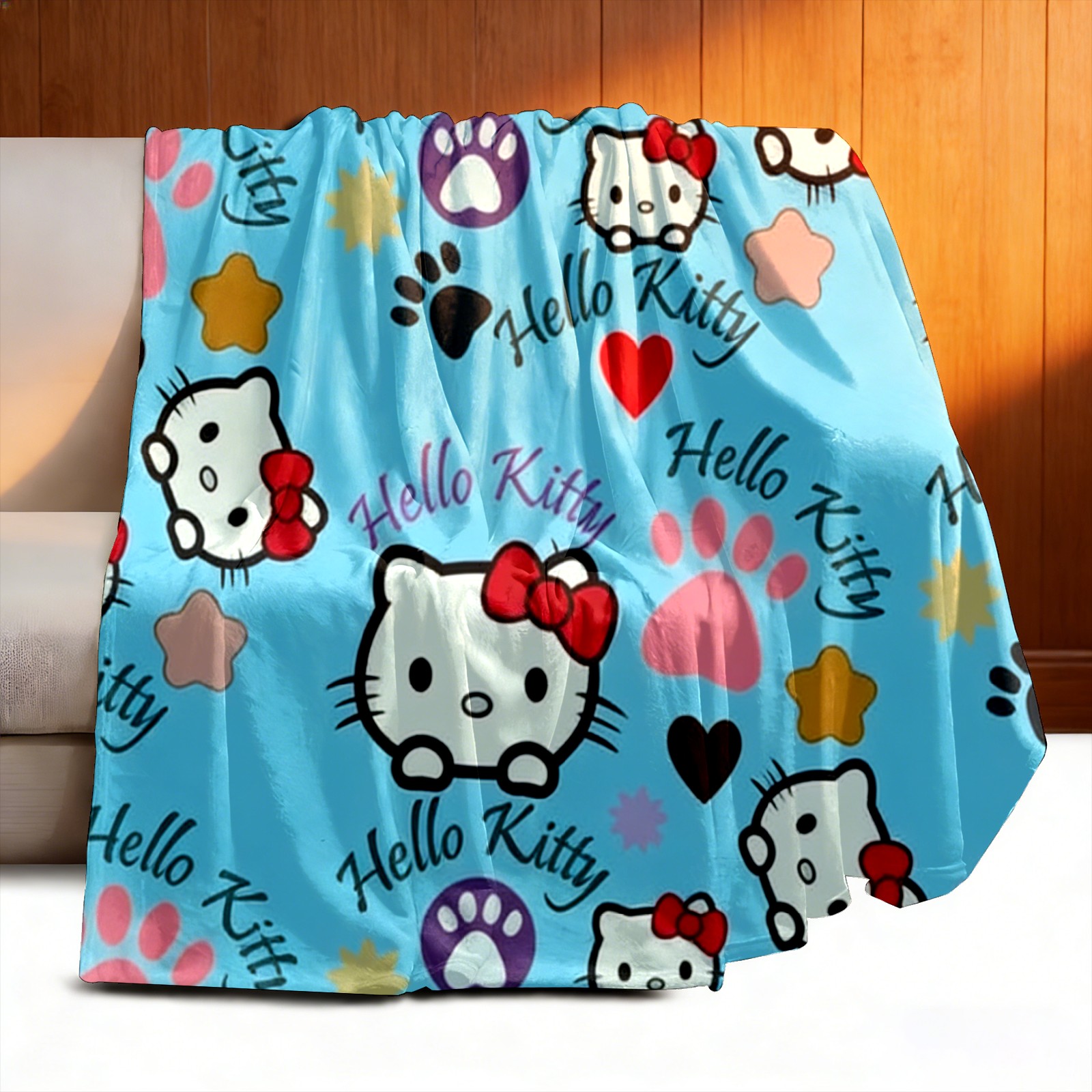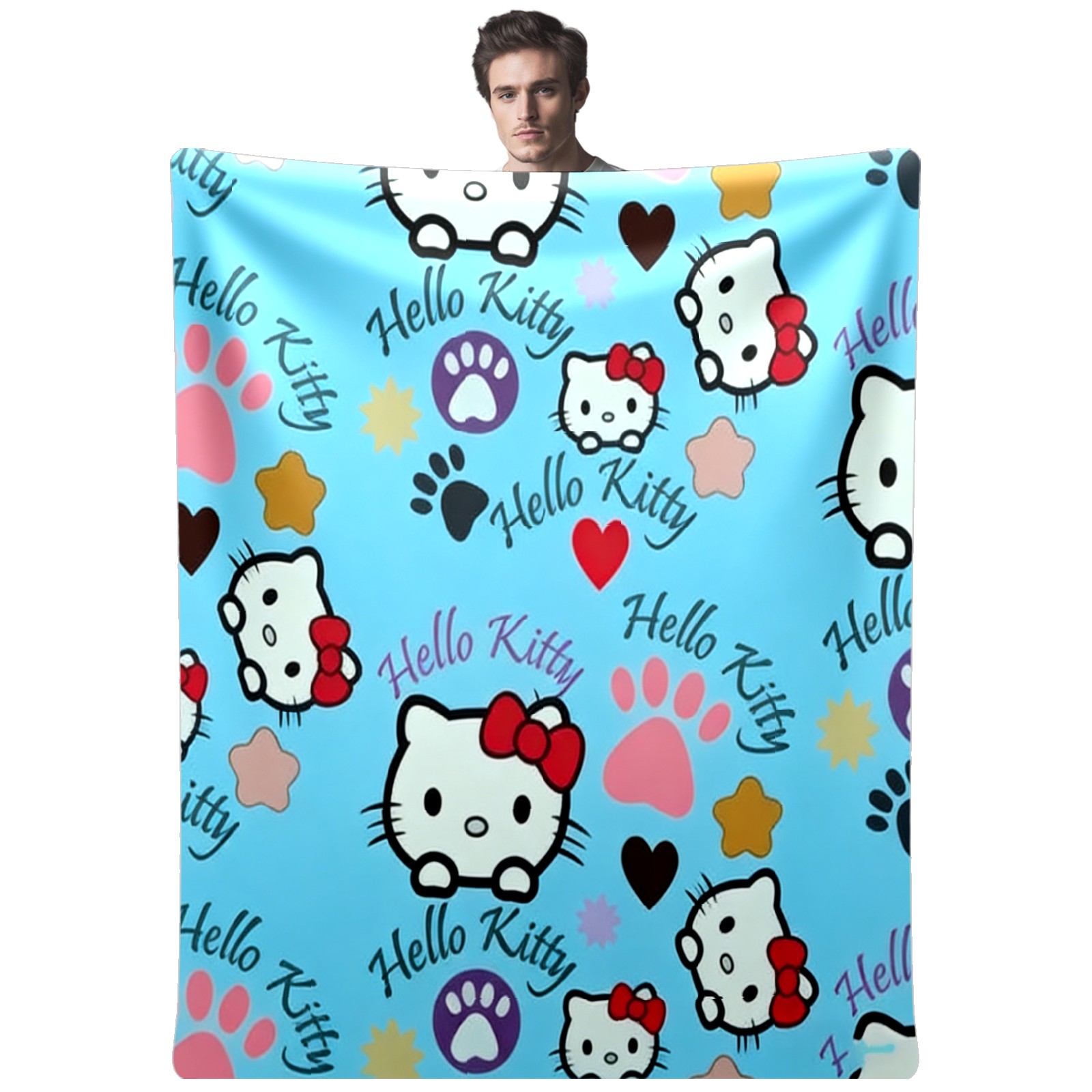 Counullo Flannel Throw Blanket, Ultra Soft Anti-Pilling Blanket for Couch & Bed, Lightweight Cozy Blanket for Travel, Home, Camping Gift - (30" x 39"), Bright Hello Kitty Blue