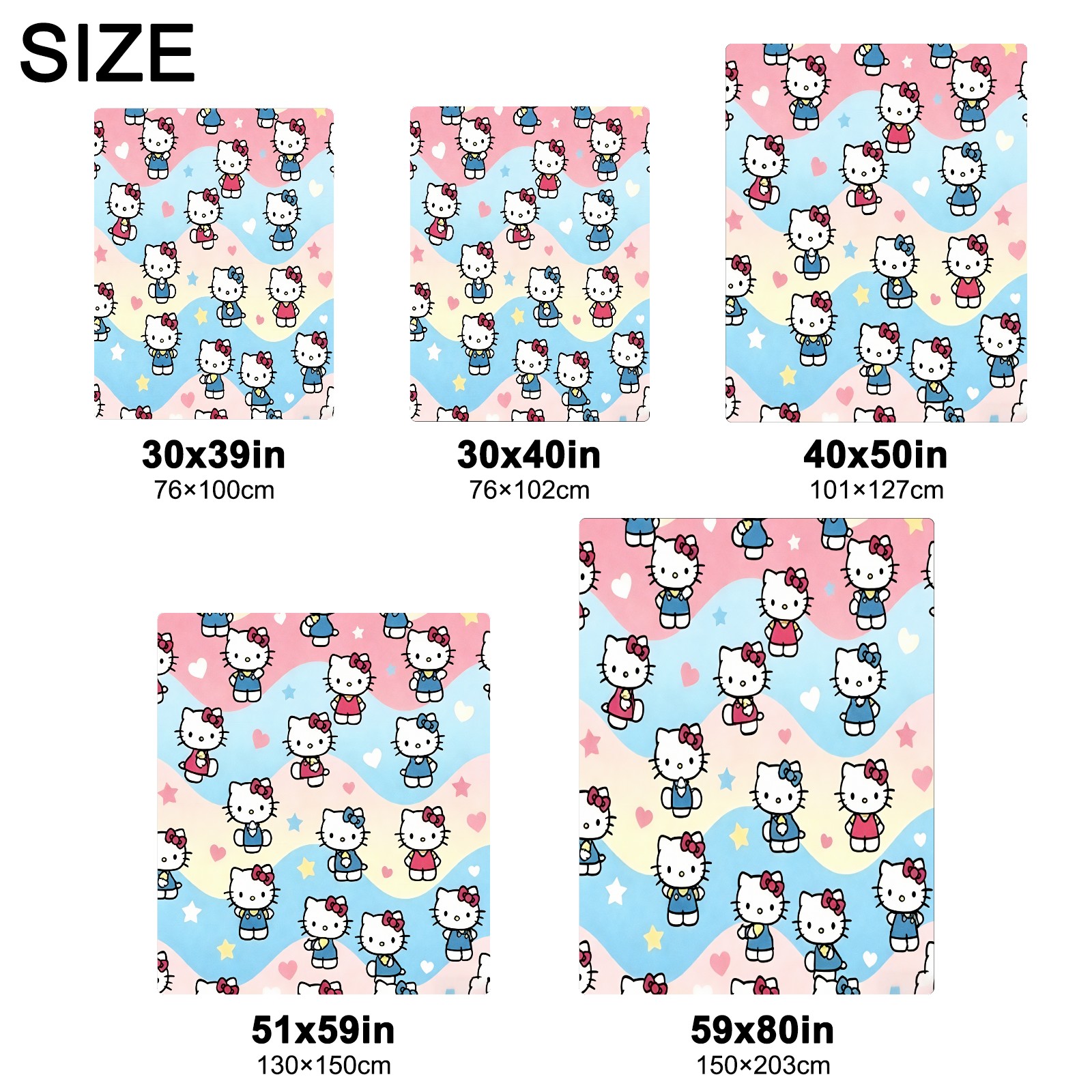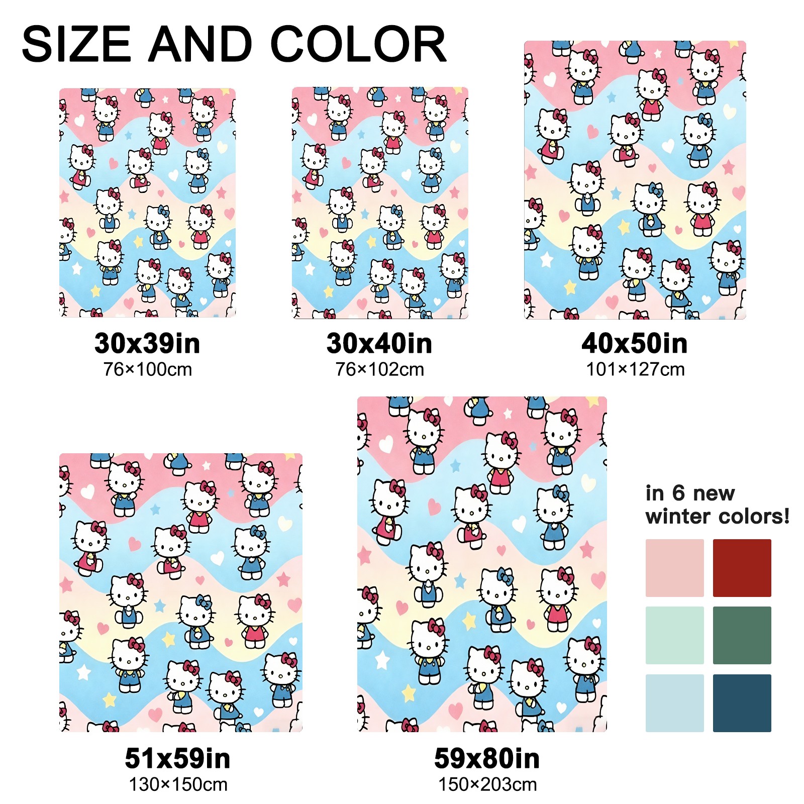 <strong></strong><p><strong>【Size】</strong>5 sizes. 30x39in/76x100cm; 30x40in/76x102cm; 40x50in/101x127cm; 51x59in /130x150cm; 59x80in/150x203cm <strong>【Product performance】</strong> &nbsp;</p><p>❤Skin-Friendly &amp; Breathable&nbsp;</p><p>❤Lightweight &amp; Folded tightly&nbsp;</p><p>❤Anti-pilling &amp; Anti-wrinkle &amp; Anti-allergy&nbsp;</p><p>❤Baby Sleep, Travel, Sofa, Nap Blanket , Bed Sheet</p>