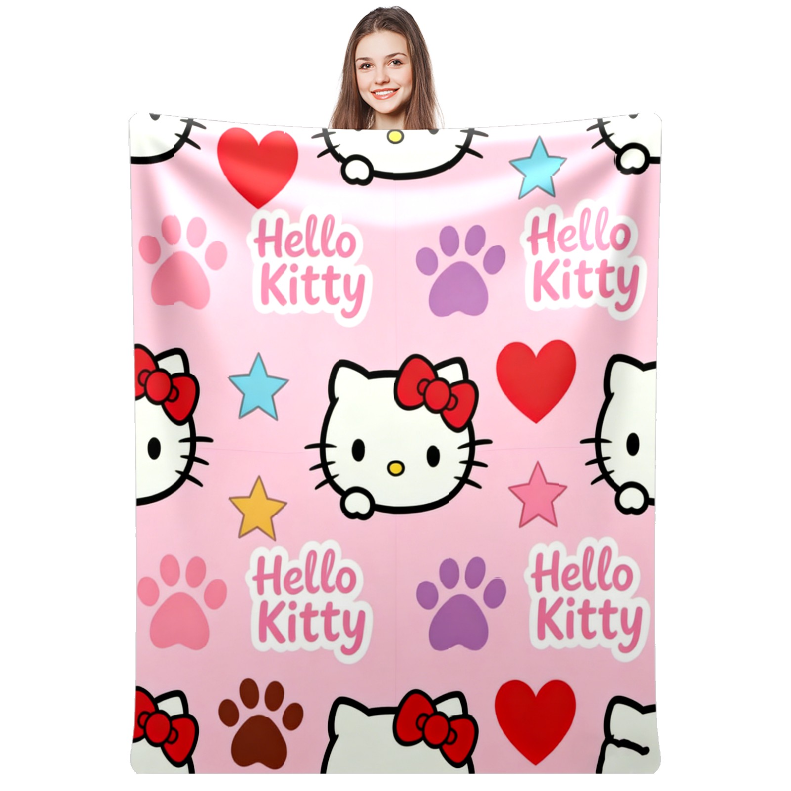 Counullo Flannel Throw Blanket, Ultra Soft Anti-Pilling Blanket for Couch & Bed, Lightweight Cozy Blanket for Travel, Home, Camping Gift - (30" x 39"), Hello Kitty Pink