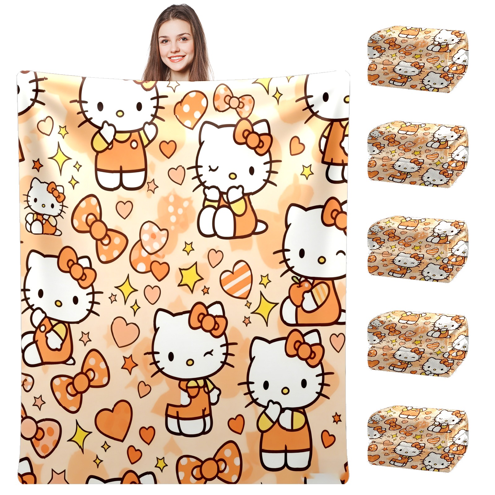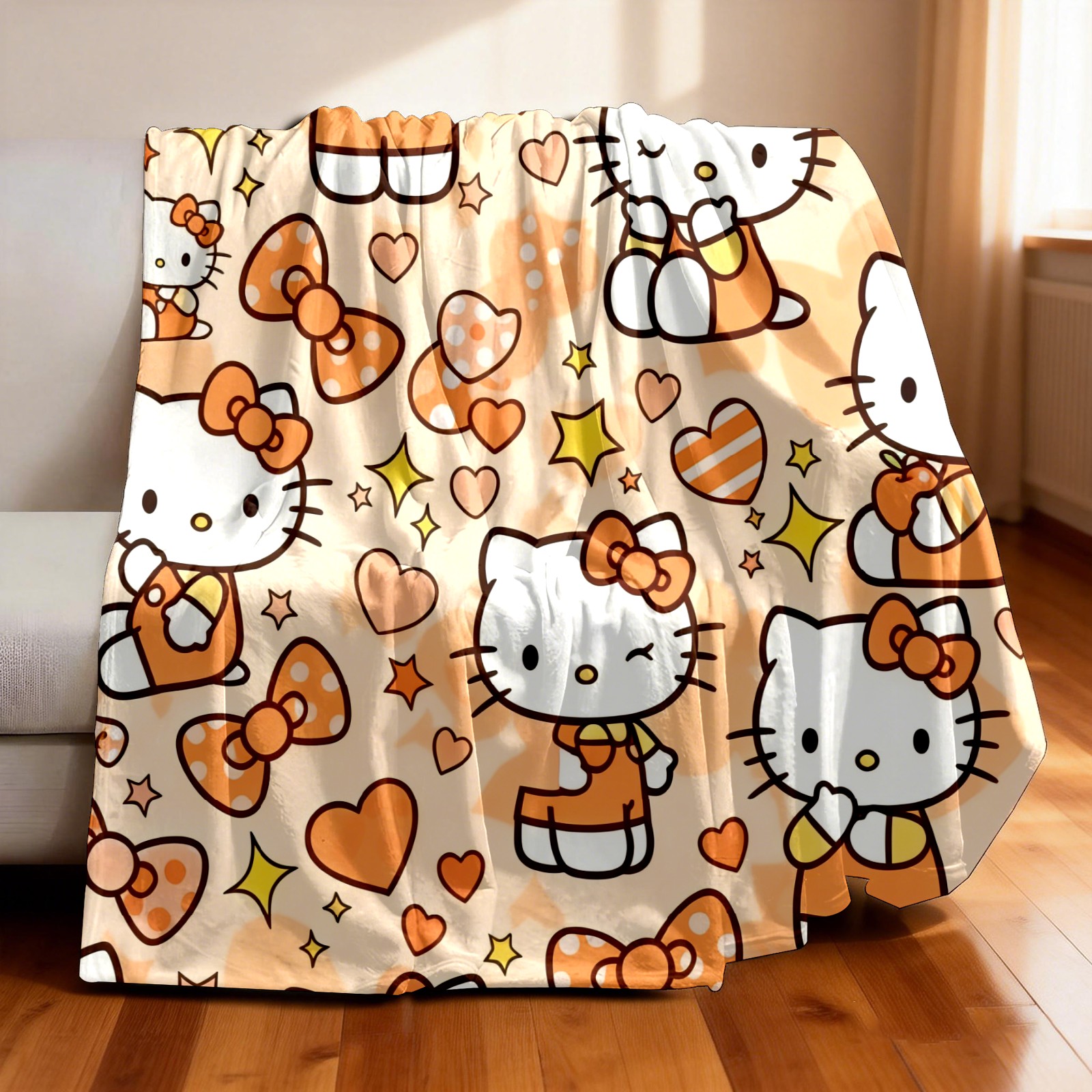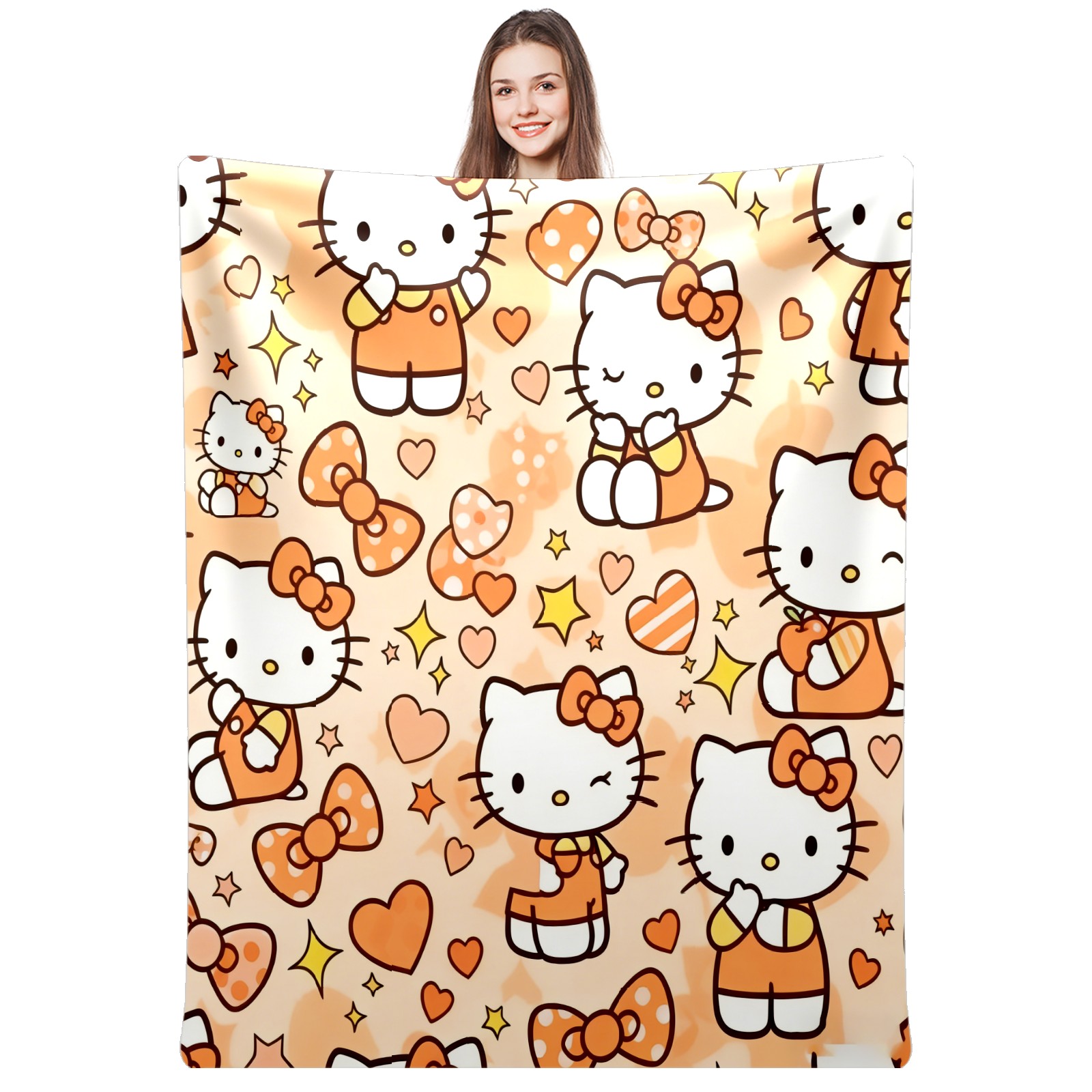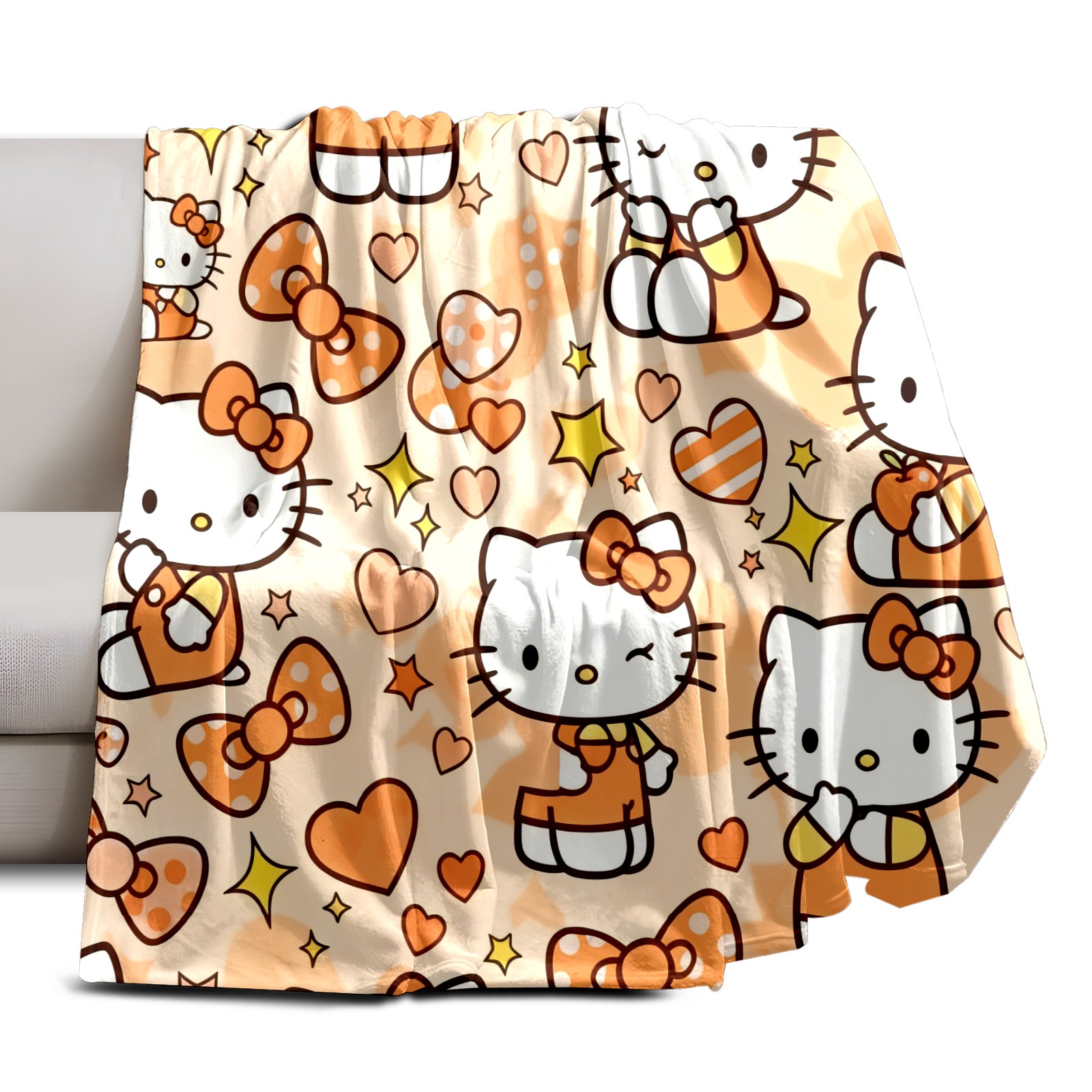 Counullo Flannel Throw Blanket, Ultra Soft Anti-Pilling Blanket for Couch & Bed, Lightweight Cozy Blanket for Travel, Home, Camping Gift - (30" x 39"), Hello Kitty Orange
