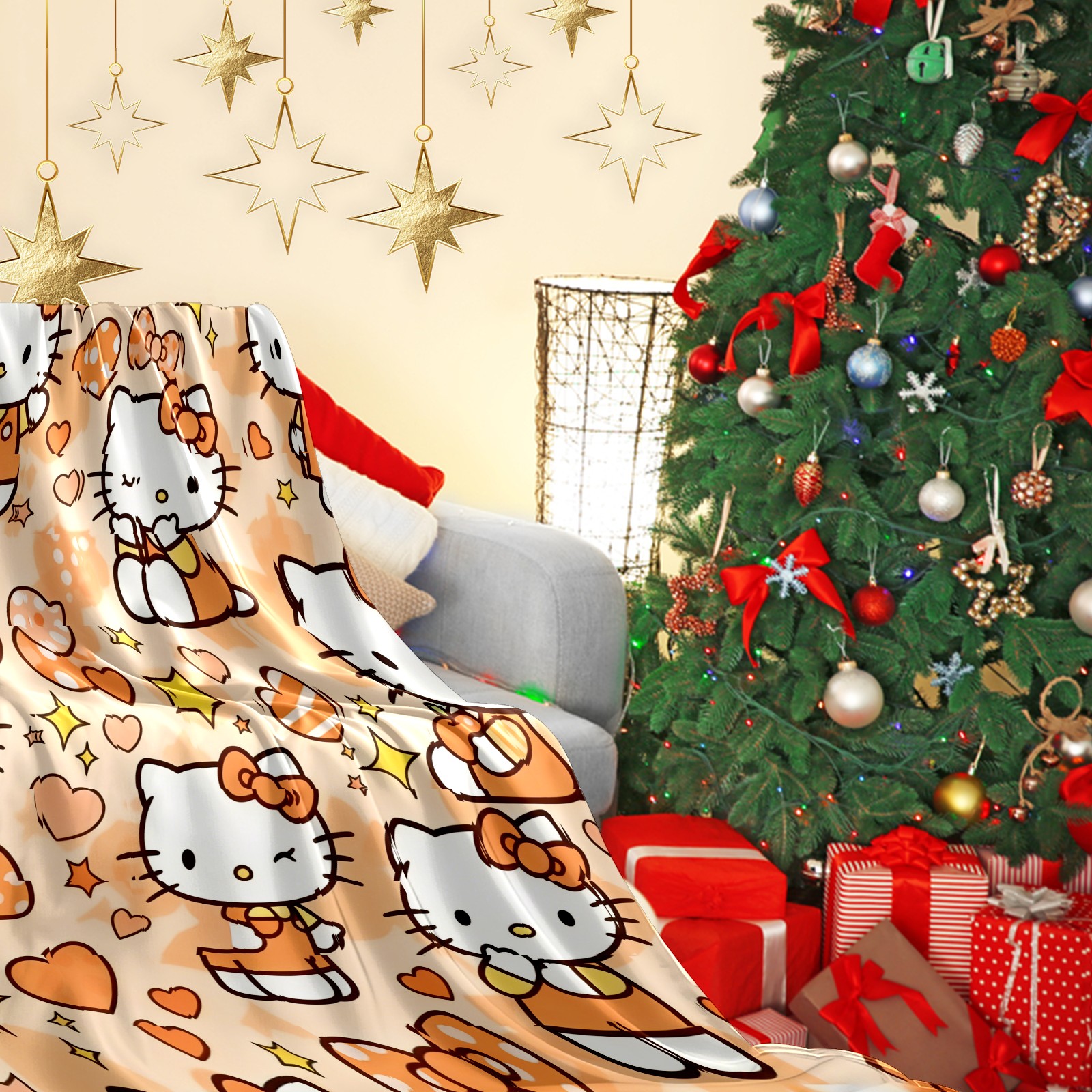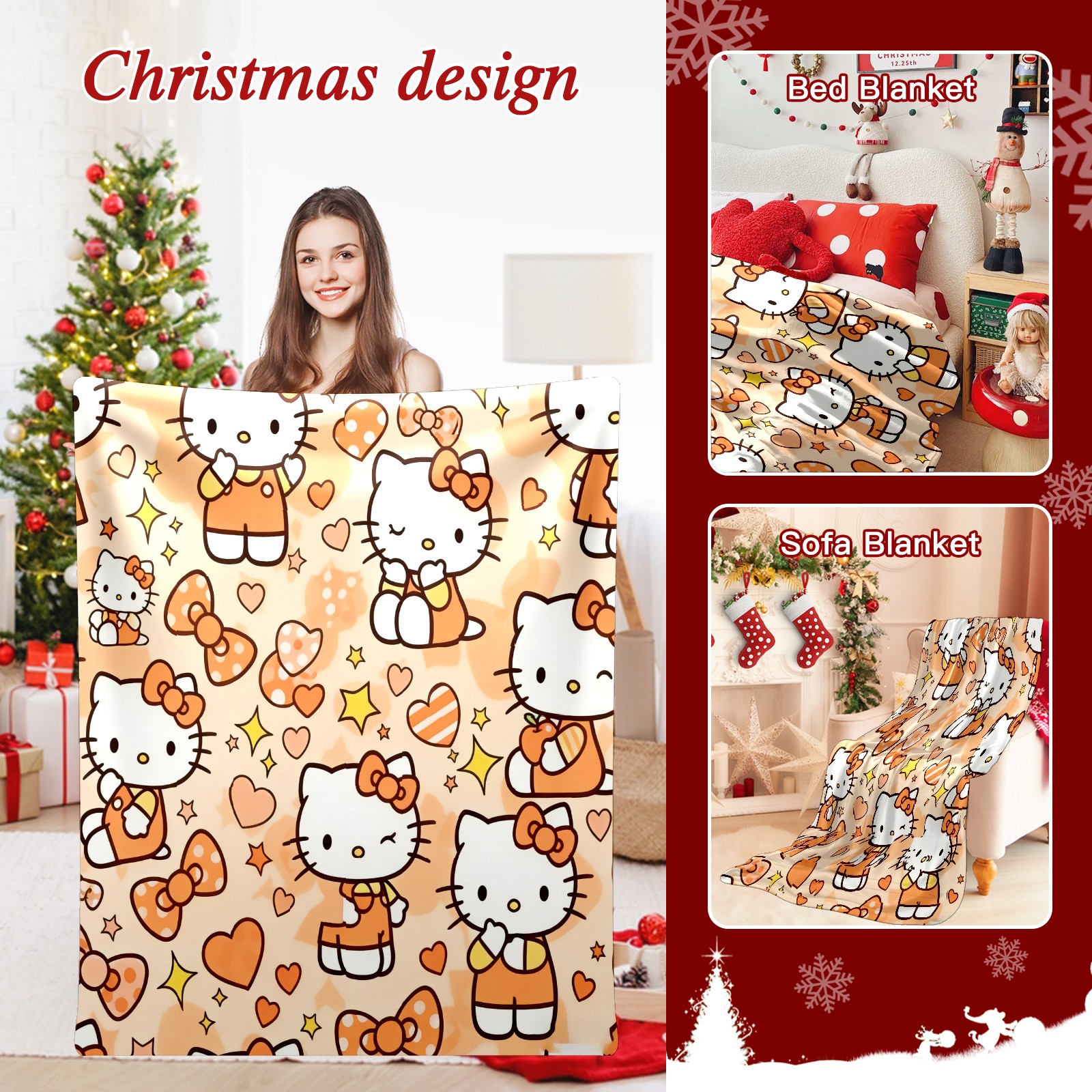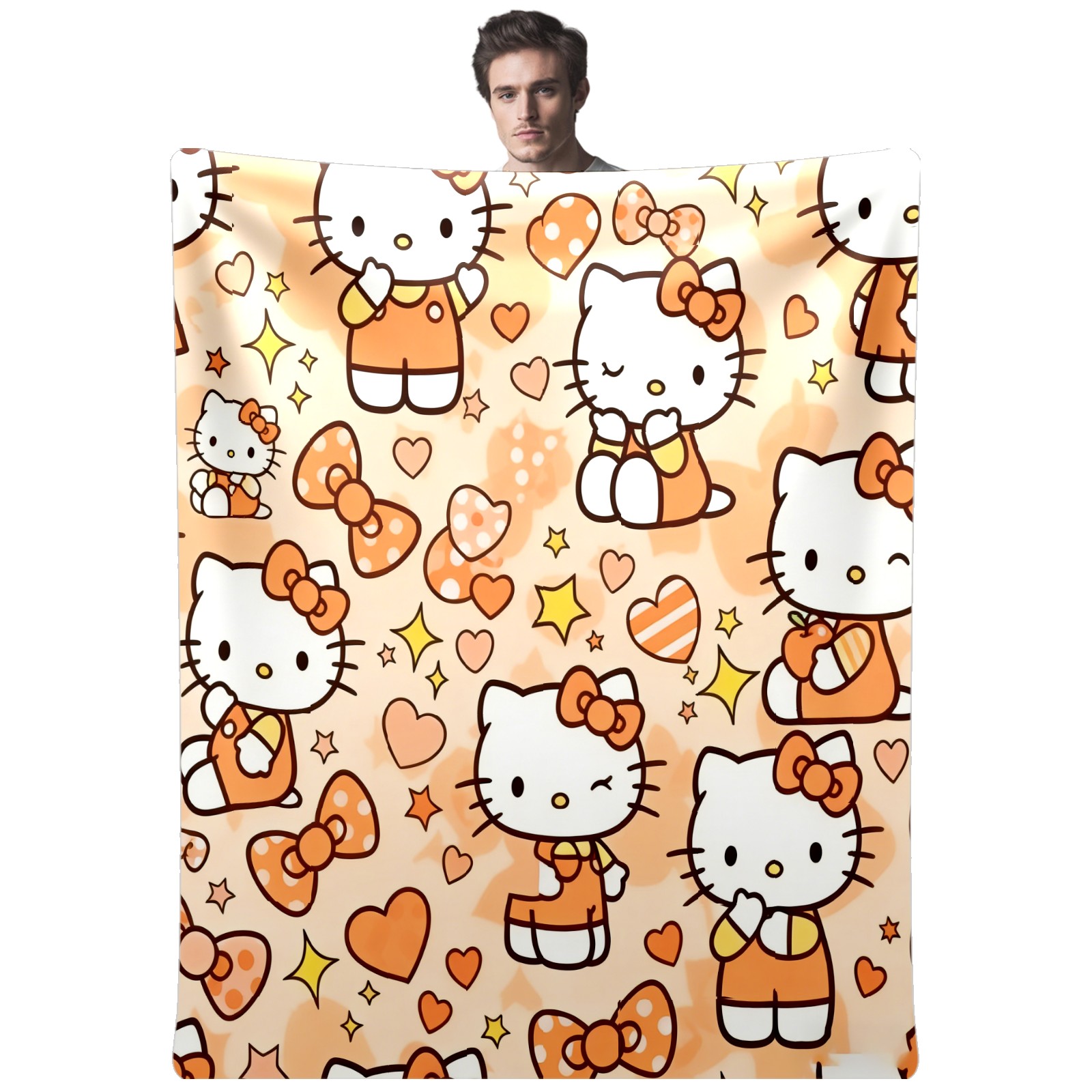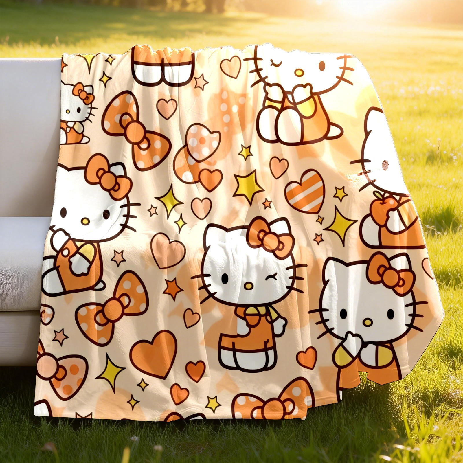 Counullo Flannel Throw Blanket, Ultra Soft Anti-Pilling Blanket for Couch & Bed, Lightweight Cozy Blanket for Travel, Home, Camping Gift - (30" x 39"), Hello Kitty Orange