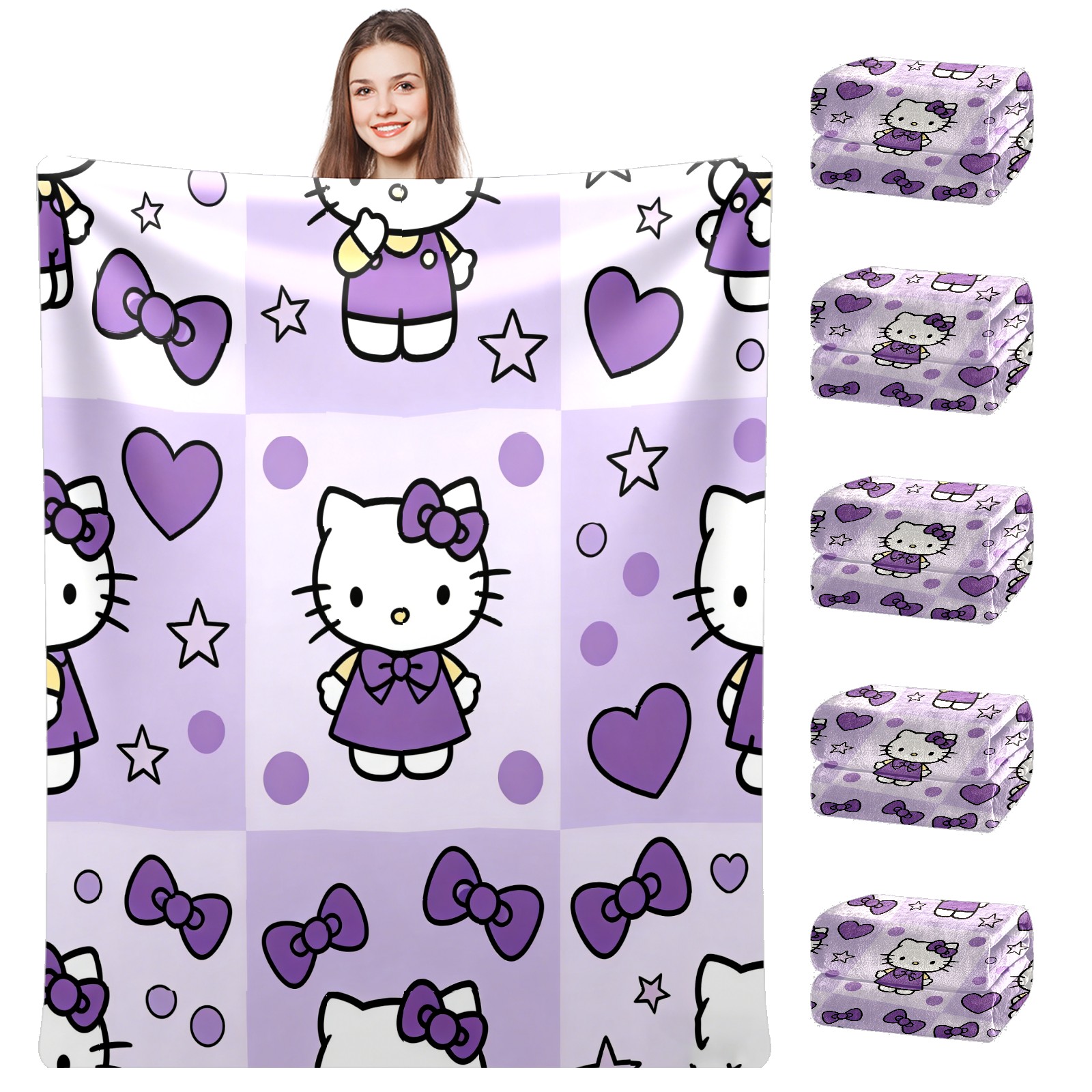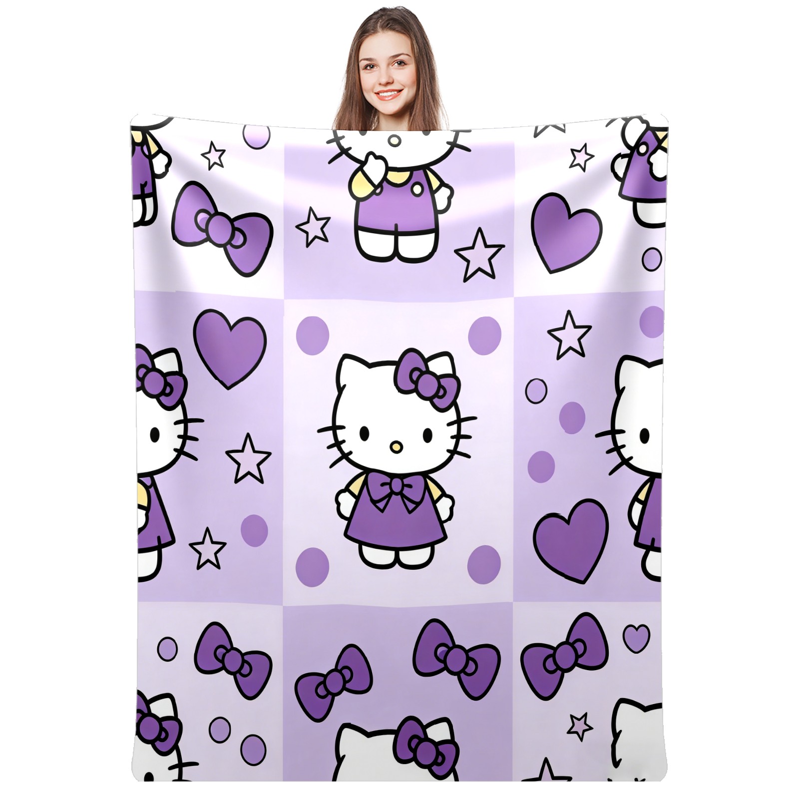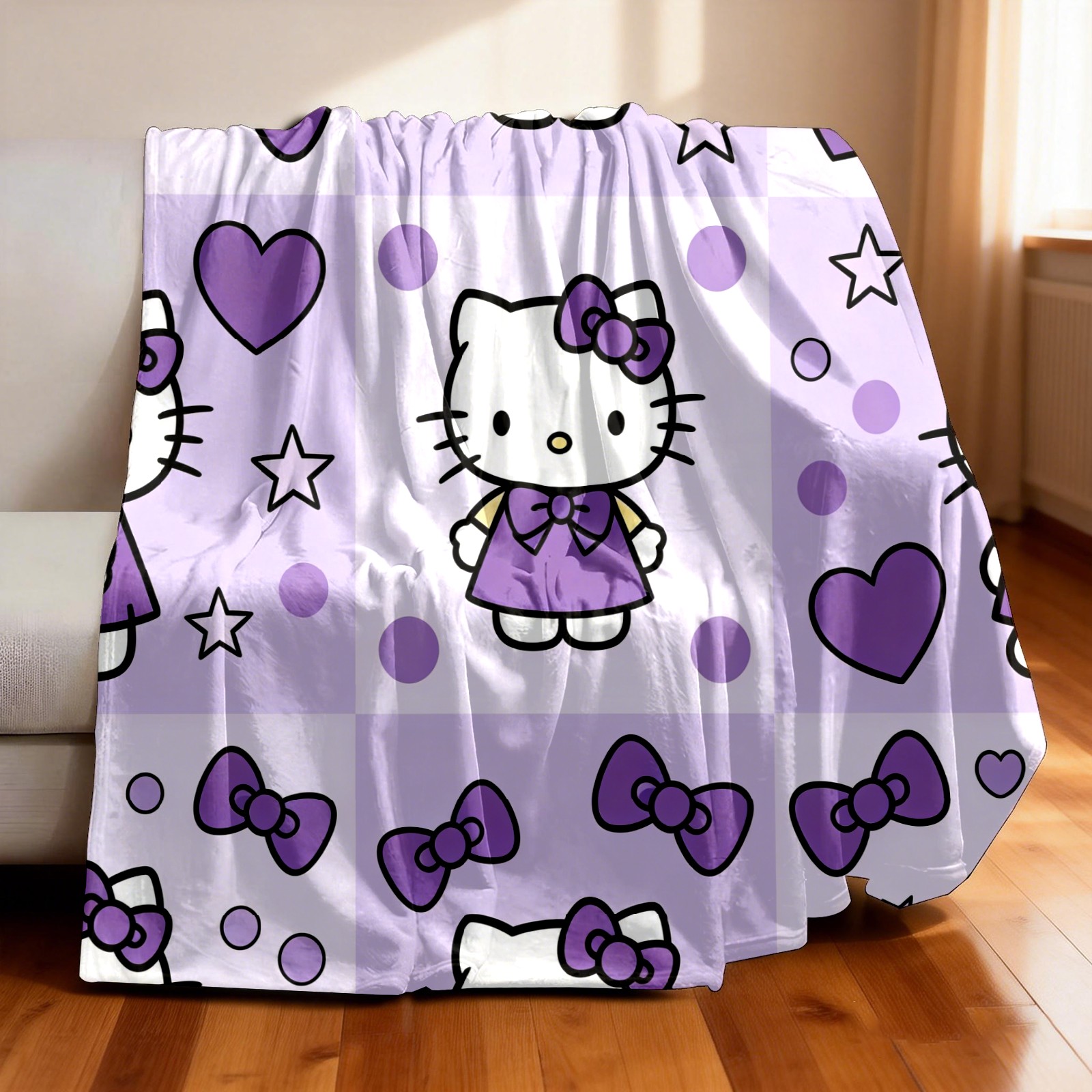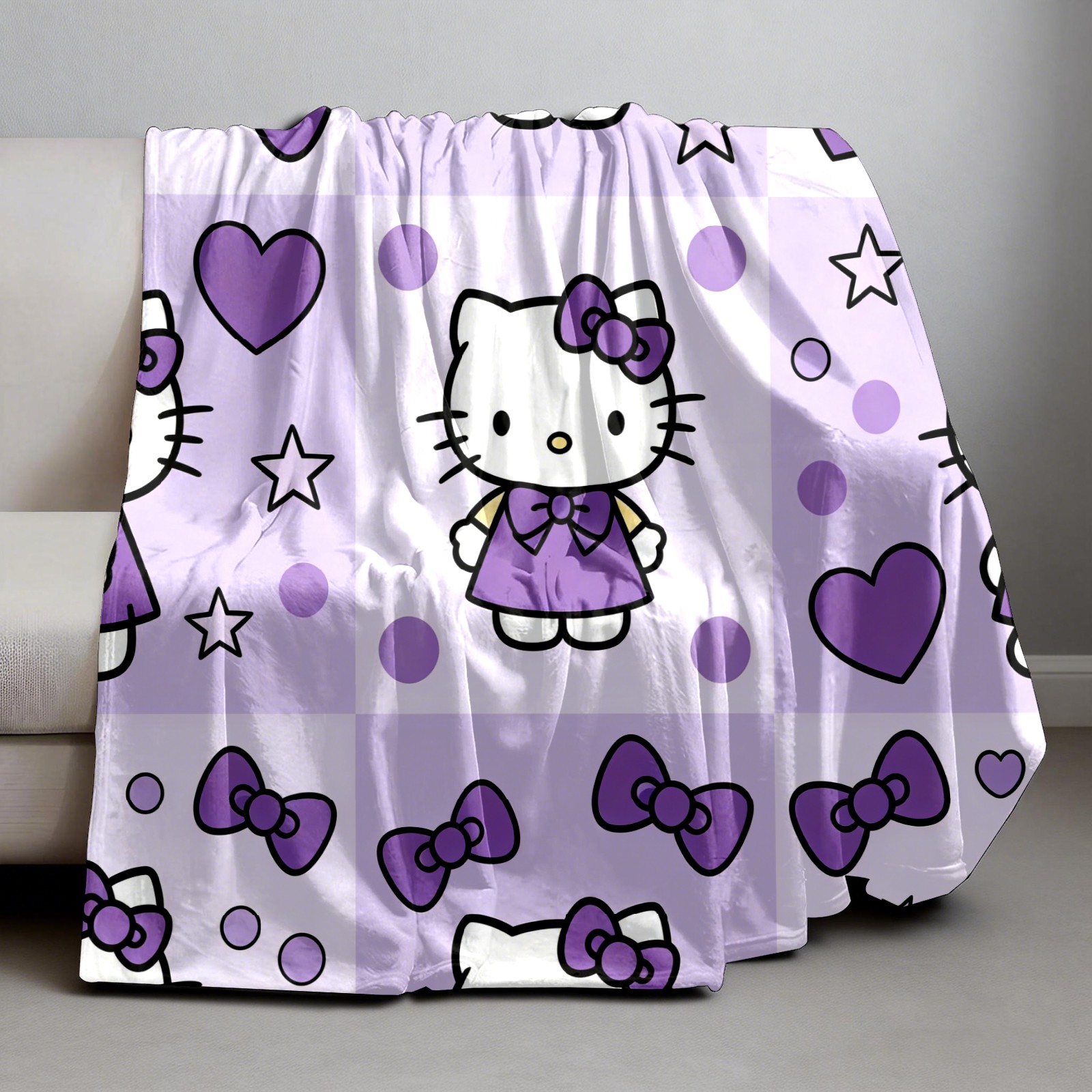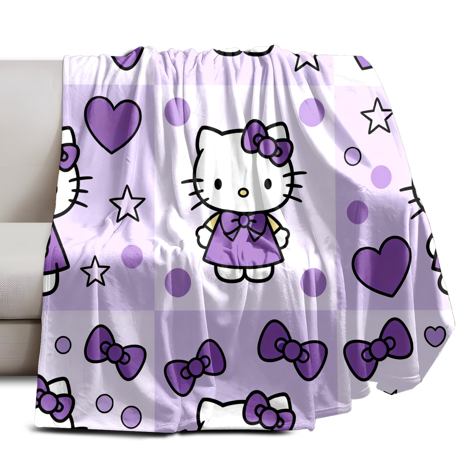 Counullo Flannel Throw Blanket, Ultra Soft Anti-Pilling Blanket for Couch & Bed, Lightweight Cozy Blanket for Travel, Home, Camping Gift - (30" x 39"), Hello Kitty Purple