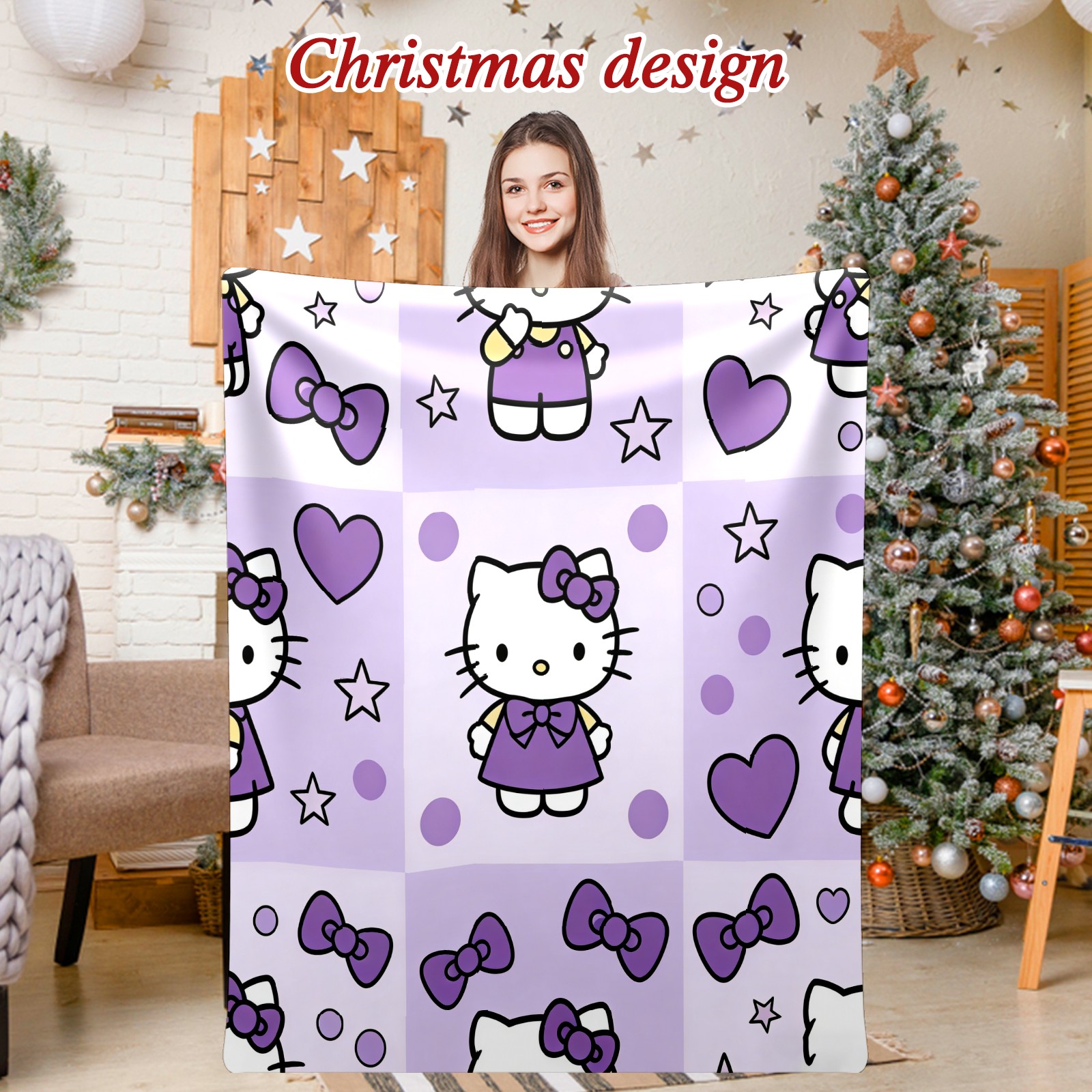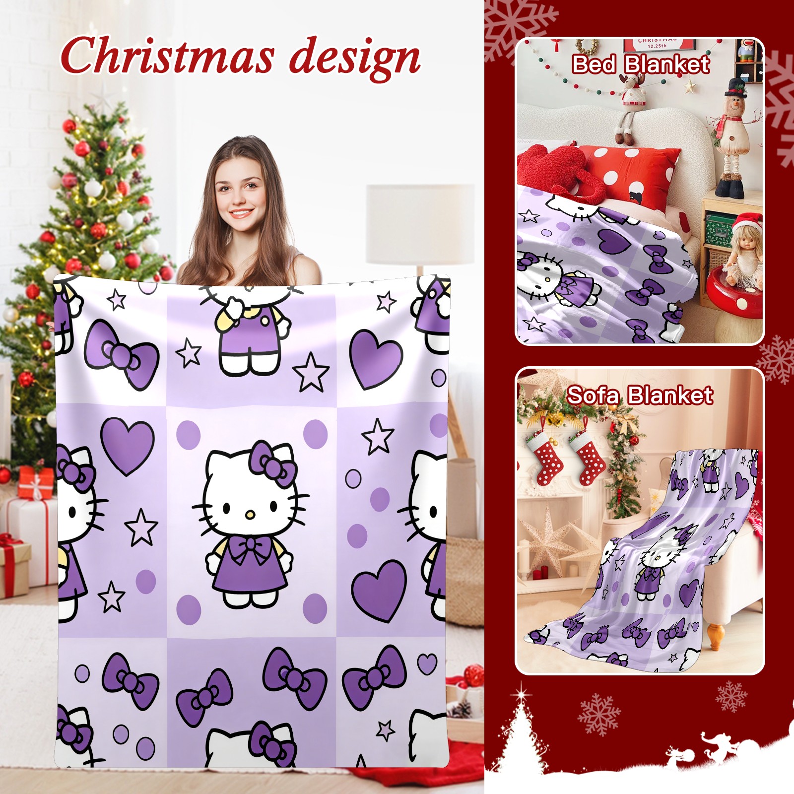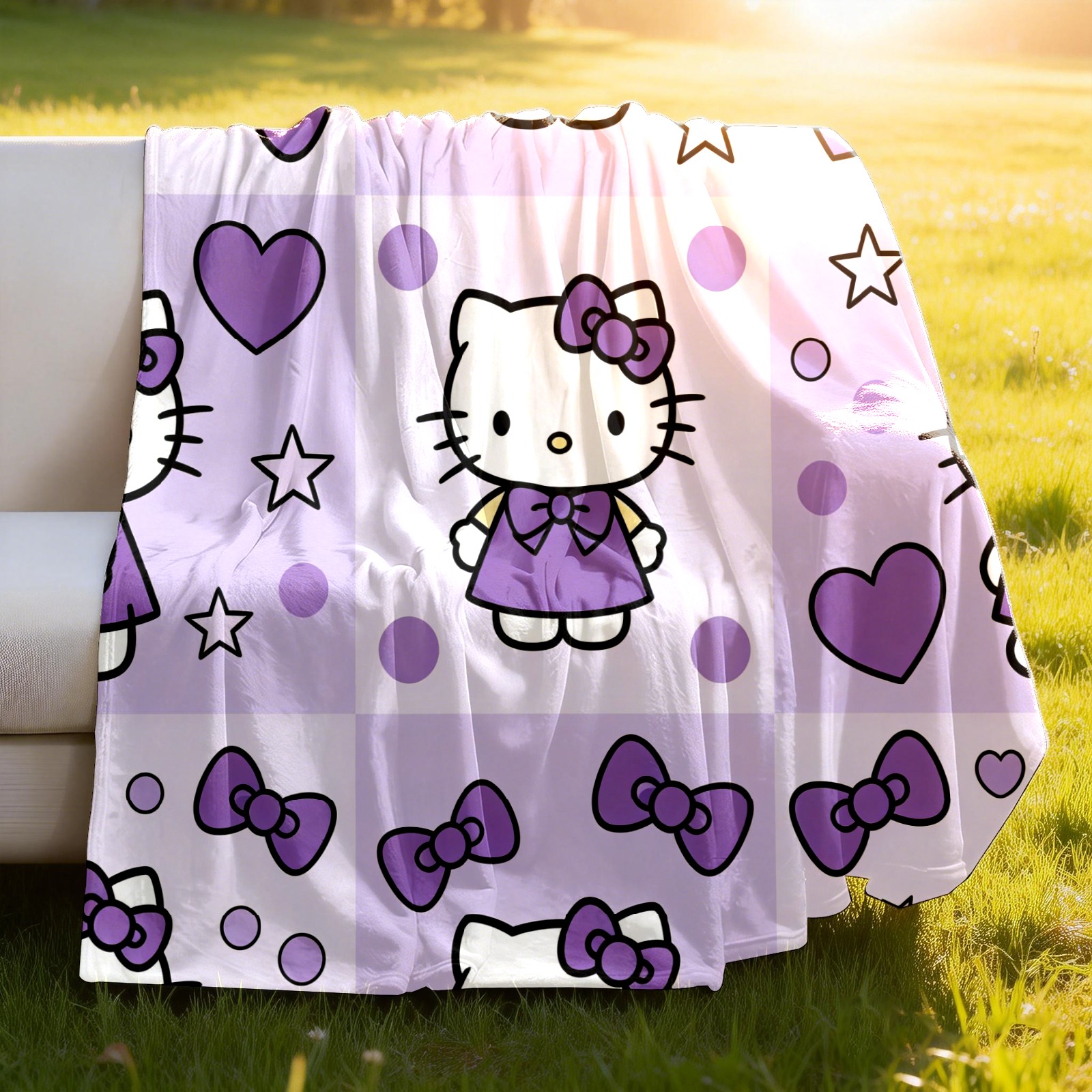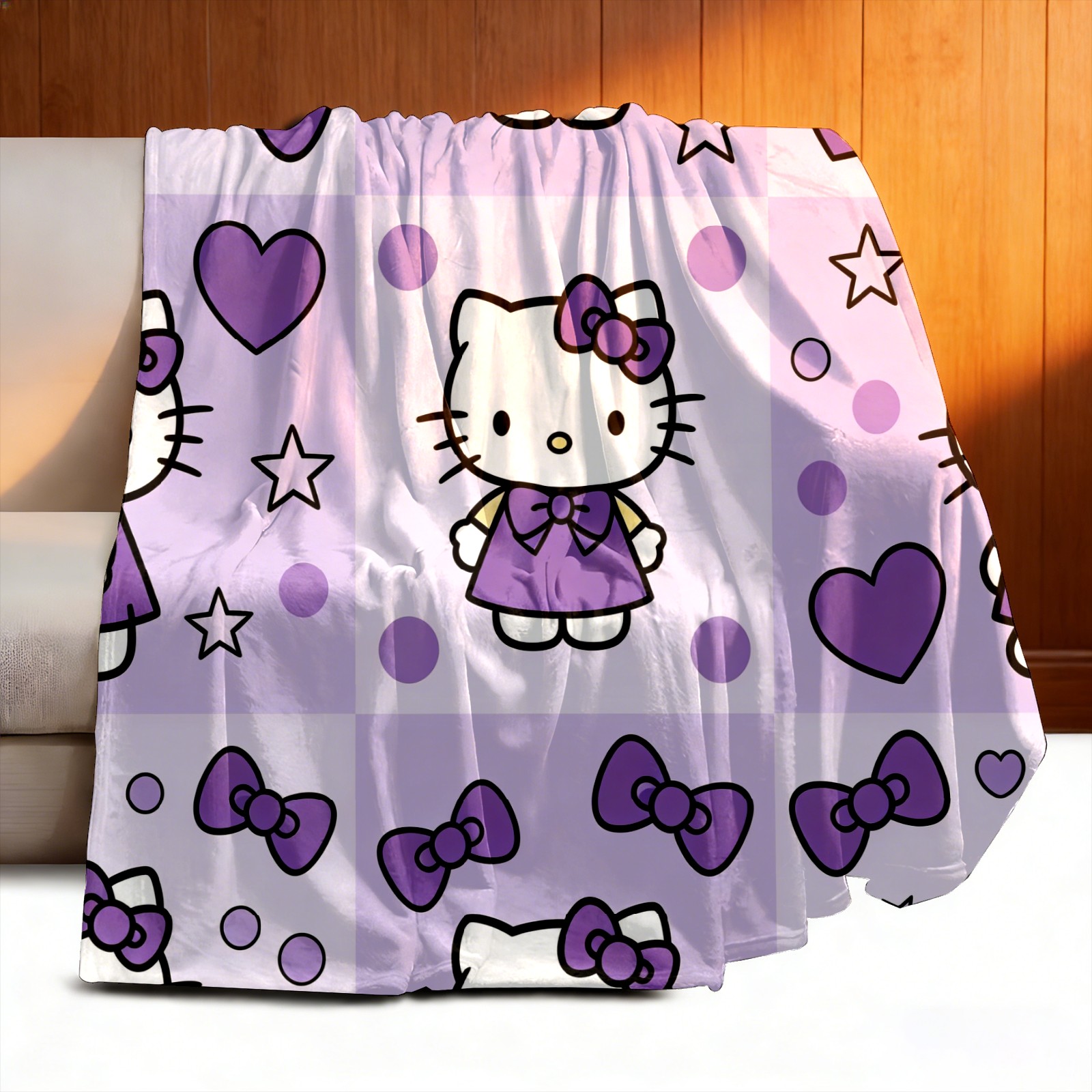 Counullo Flannel Throw Blanket, Ultra Soft Anti-Pilling Blanket for Couch & Bed, Lightweight Cozy Blanket for Travel, Home, Camping Gift - (30" x 39"), Hello Kitty Purple