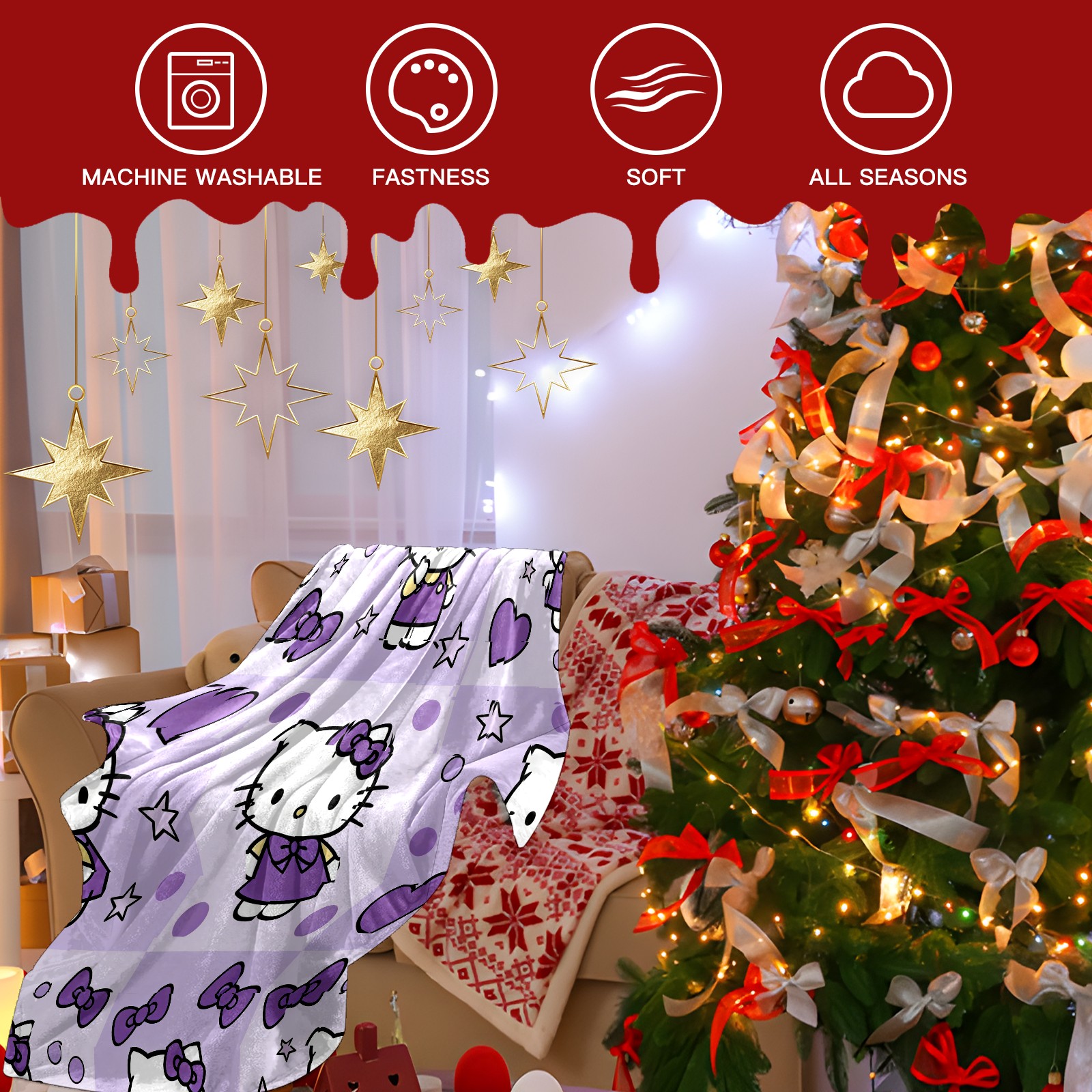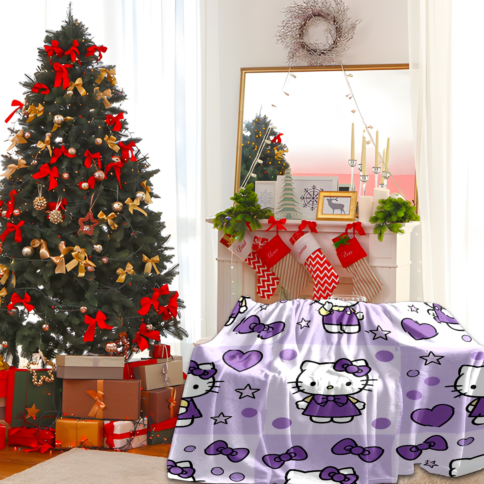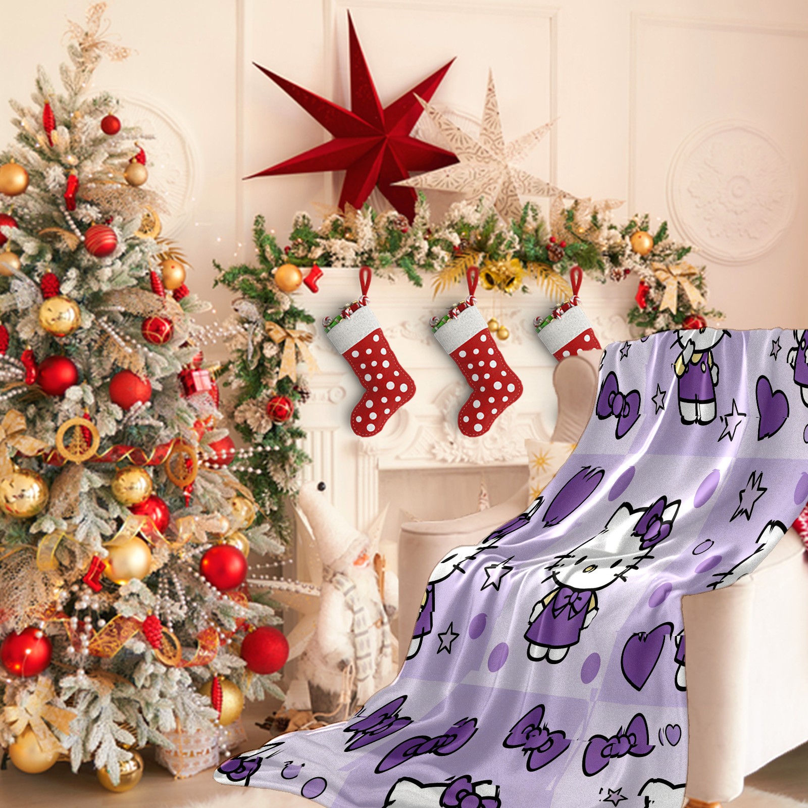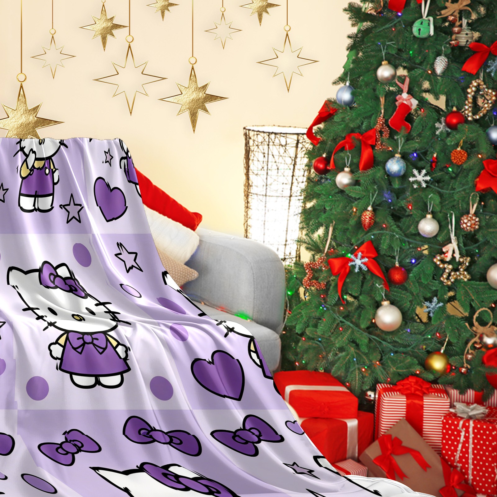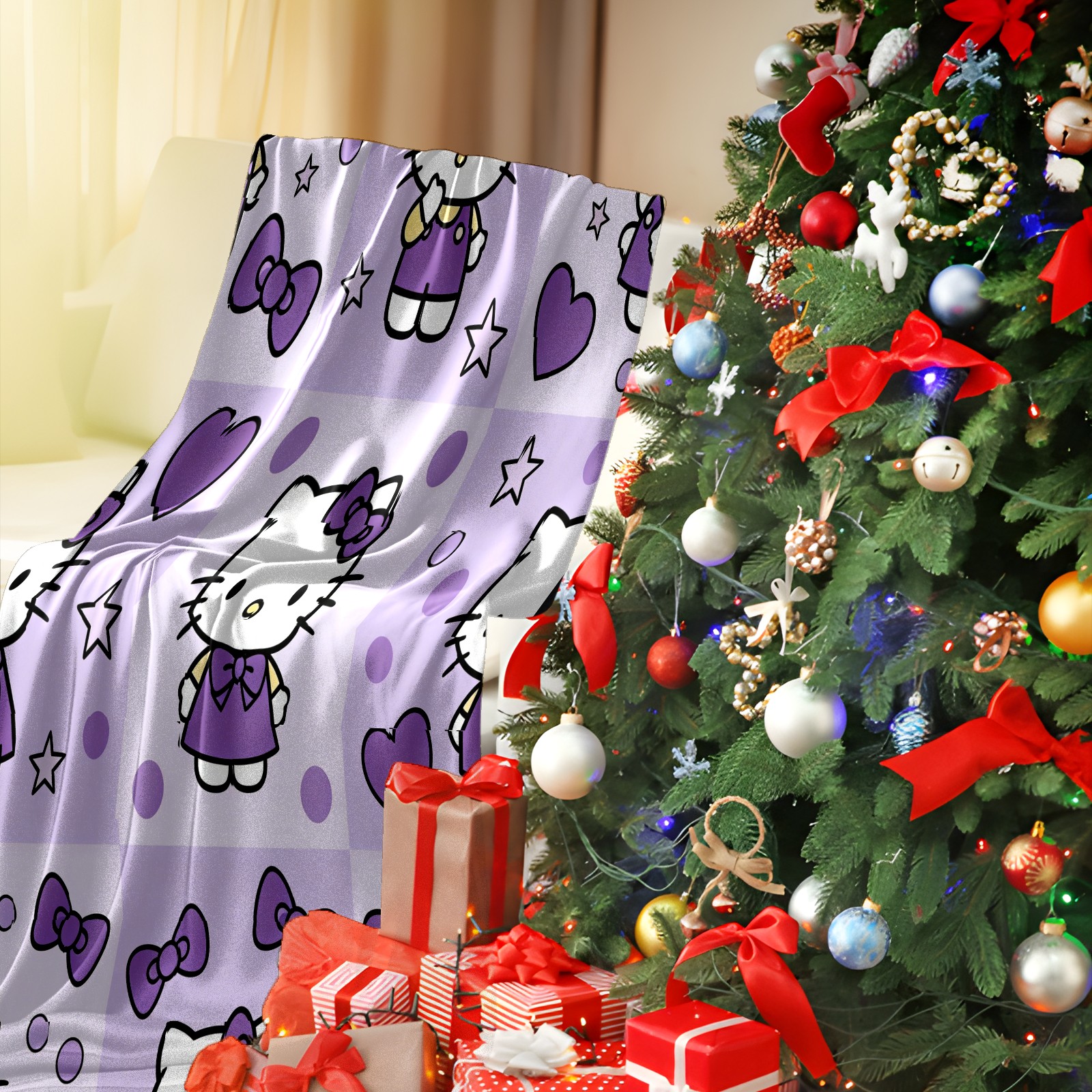 Counullo Flannel Throw Blanket, Ultra Soft Anti-Pilling Blanket for Couch & Bed, Lightweight Cozy Blanket for Travel, Home, Camping Gift - (30" x 39"), Hello Kitty Purple
