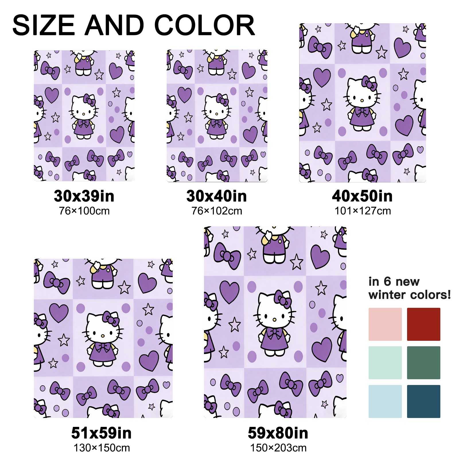 <strong></strong><p><strong>【Size】</strong>5 sizes. 30x39in/76x100cm; 30x40in/76x102cm; 40x50in/101x127cm; 51x59in /130x150cm; 59x80in/150x203cm <strong>【Product performance】</strong> &nbsp;</p><p>❤Skin-Friendly &amp; Breathable&nbsp;</p><p>❤Lightweight &amp; Folded tightly&nbsp;</p><p>❤Anti-pilling &amp; Anti-wrinkle &amp; Anti-allergy&nbsp;</p><p>❤Baby Sleep, Travel, Sofa, Nap Blanket , Bed Sheet</p>