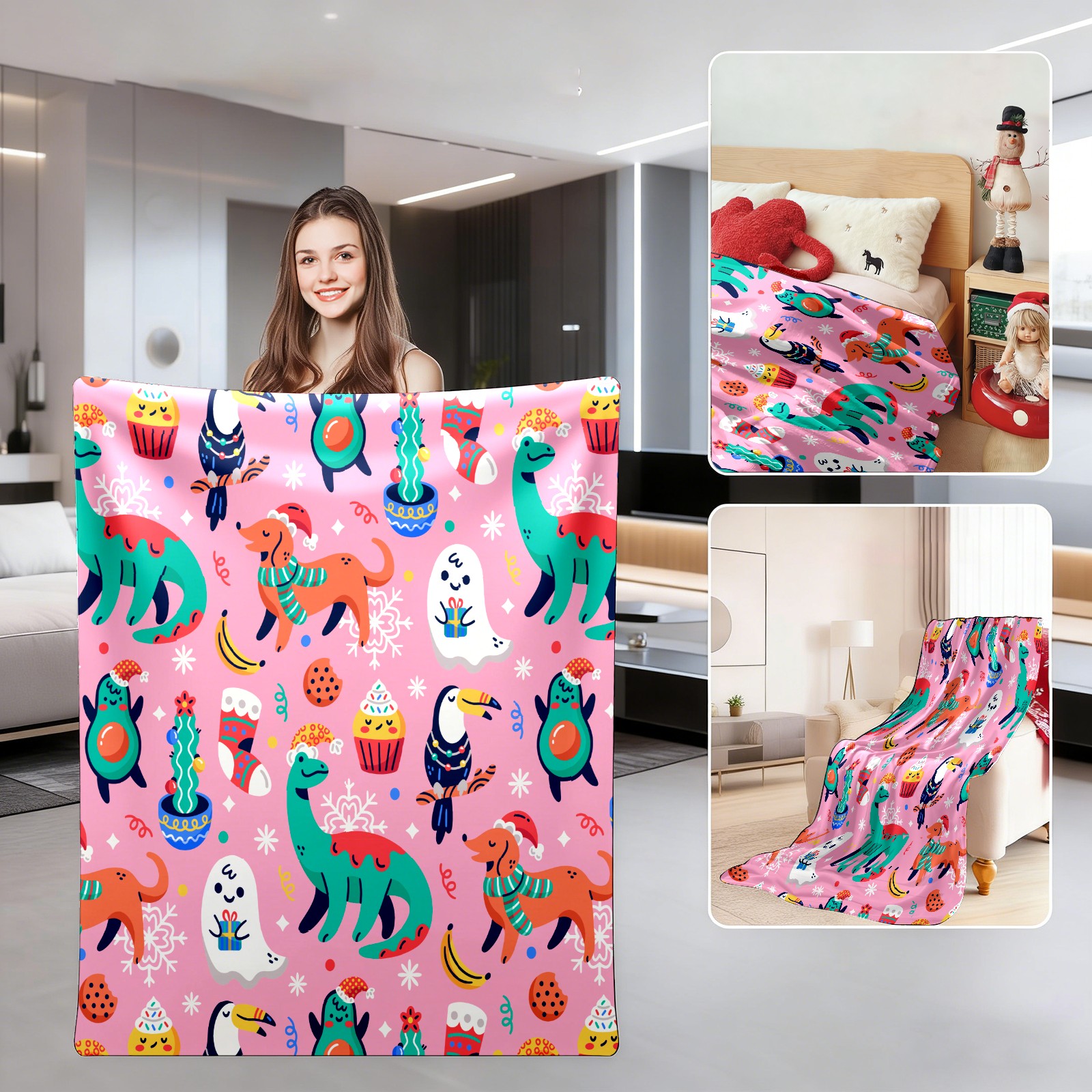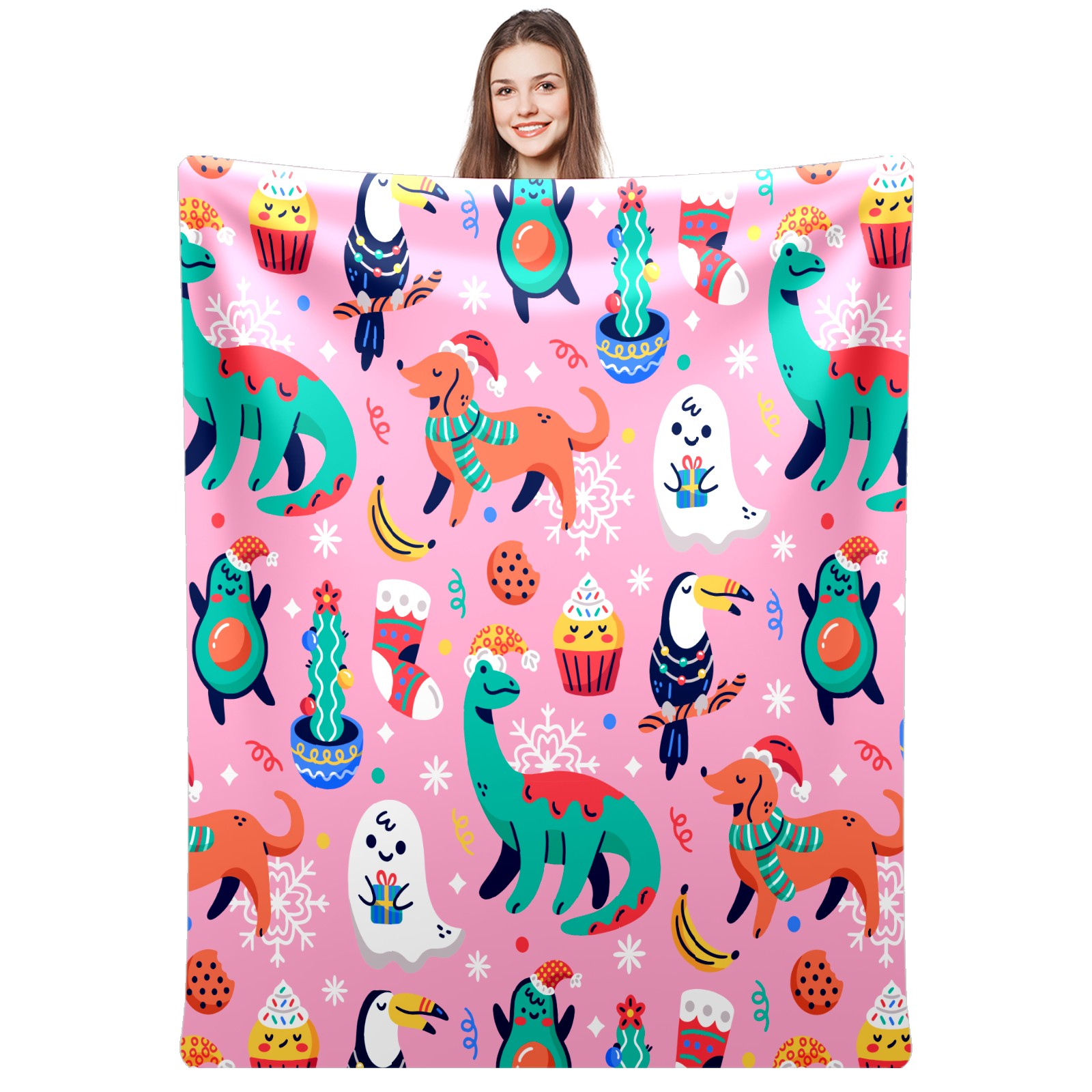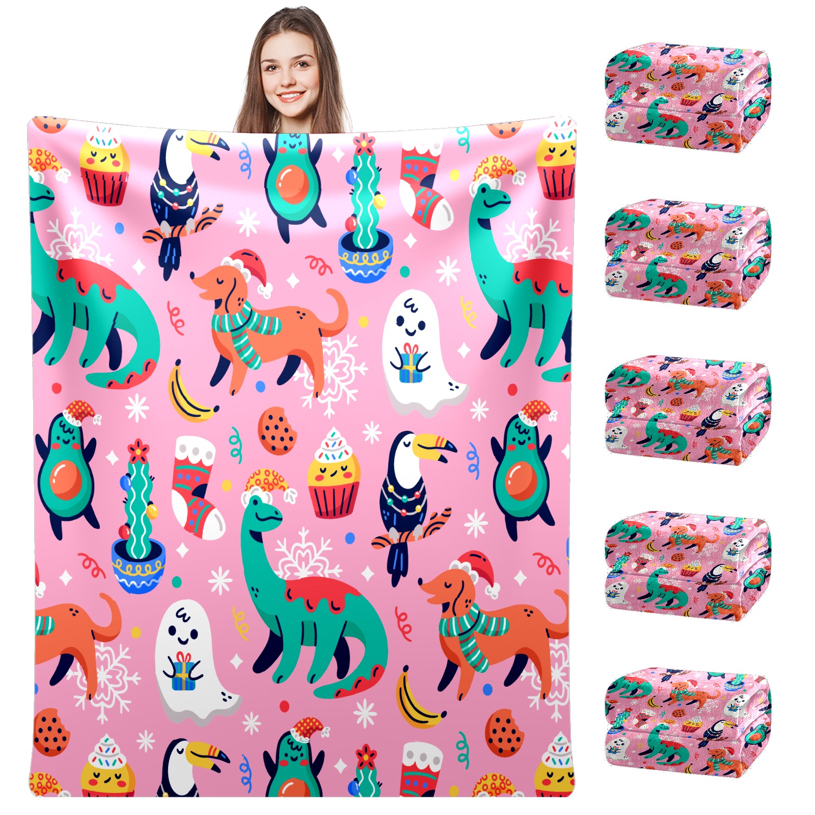 Pink Pattern Chiristmas Dinosaur Dogs