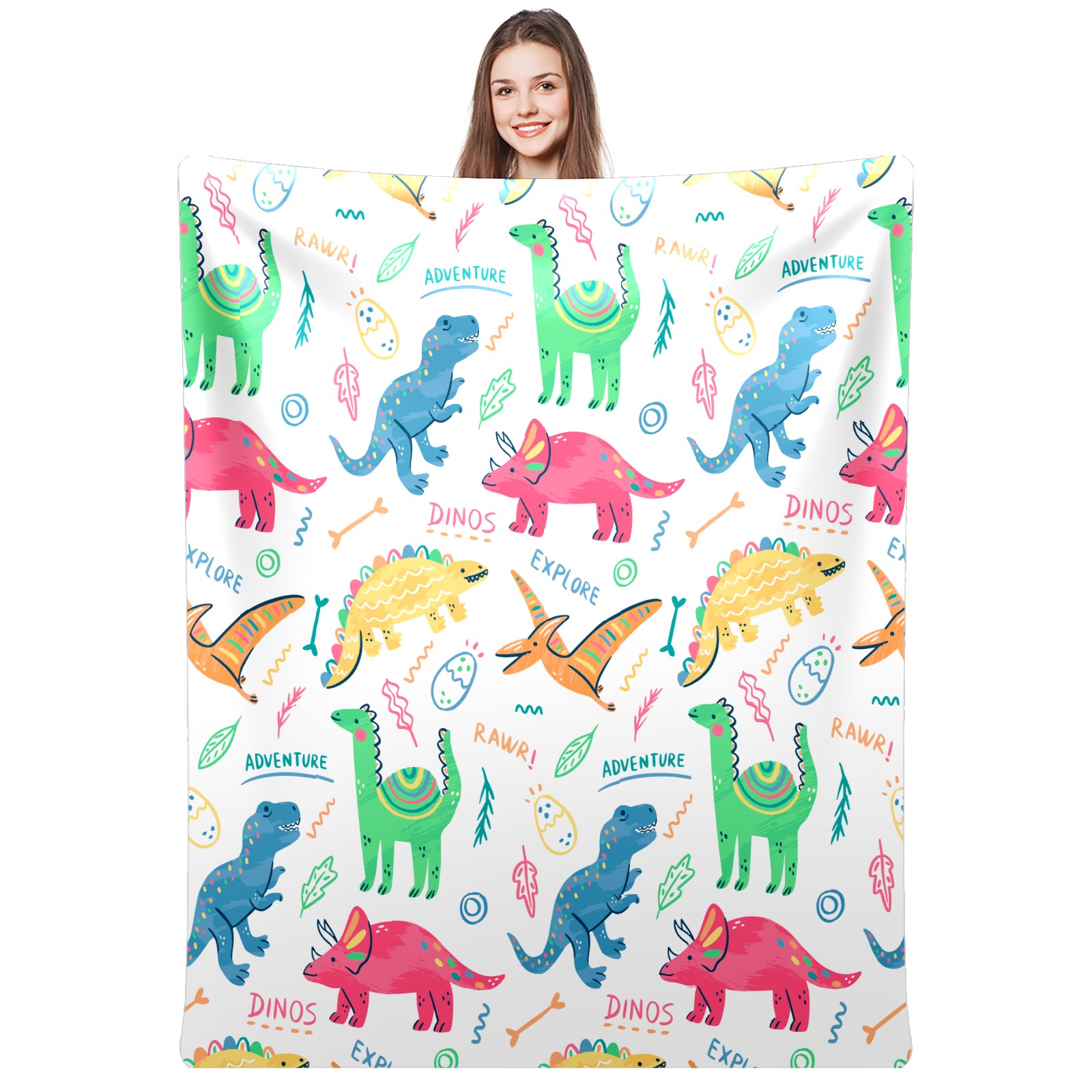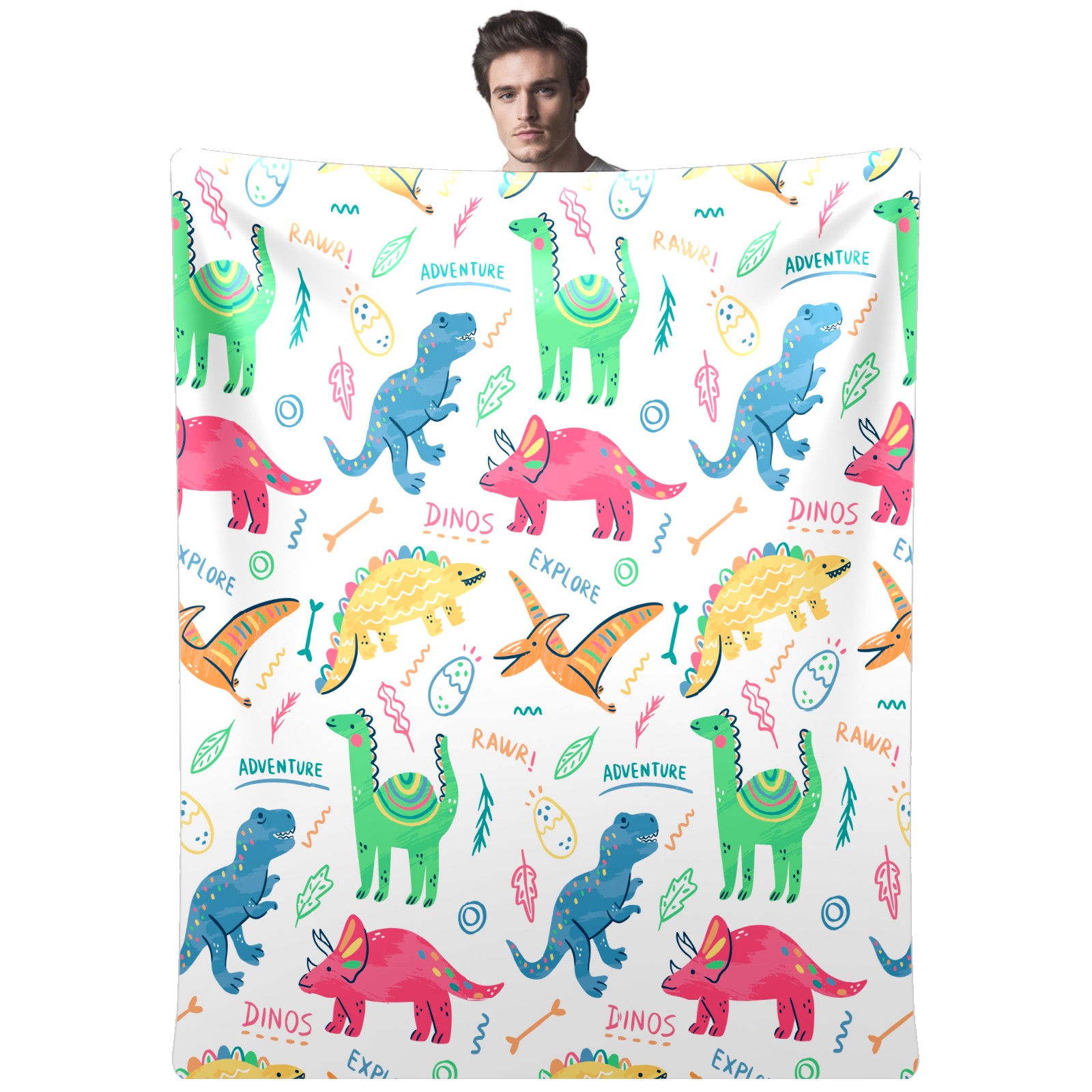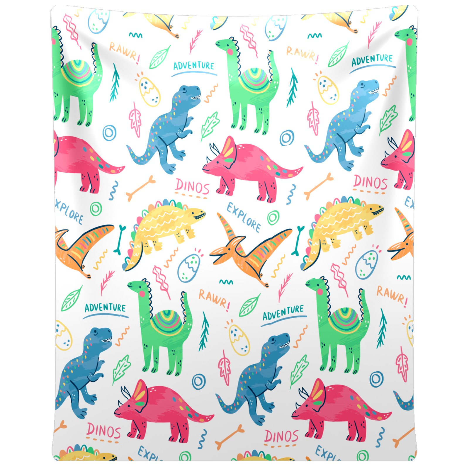 Colorful Doodle Dinosaurs Words Pattern