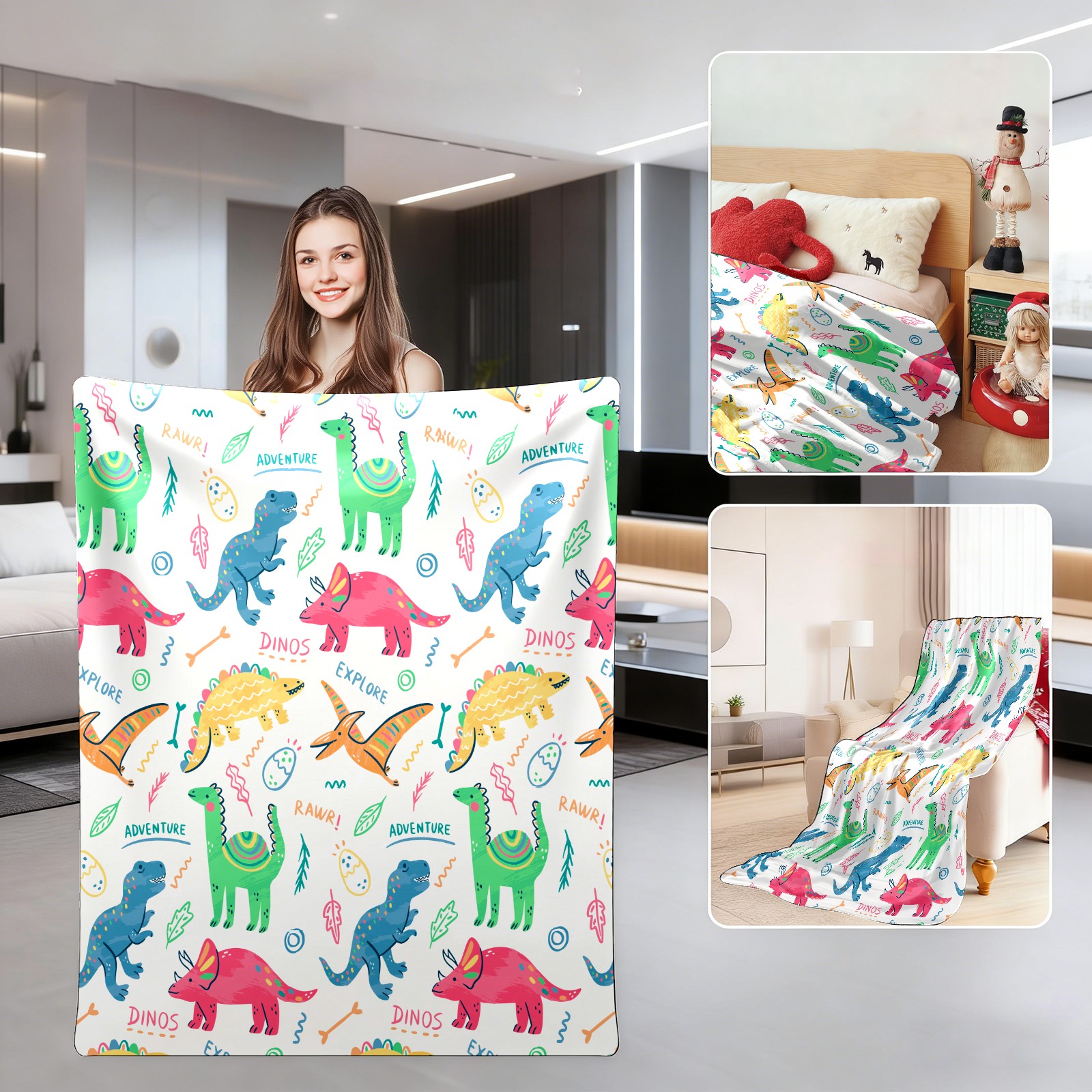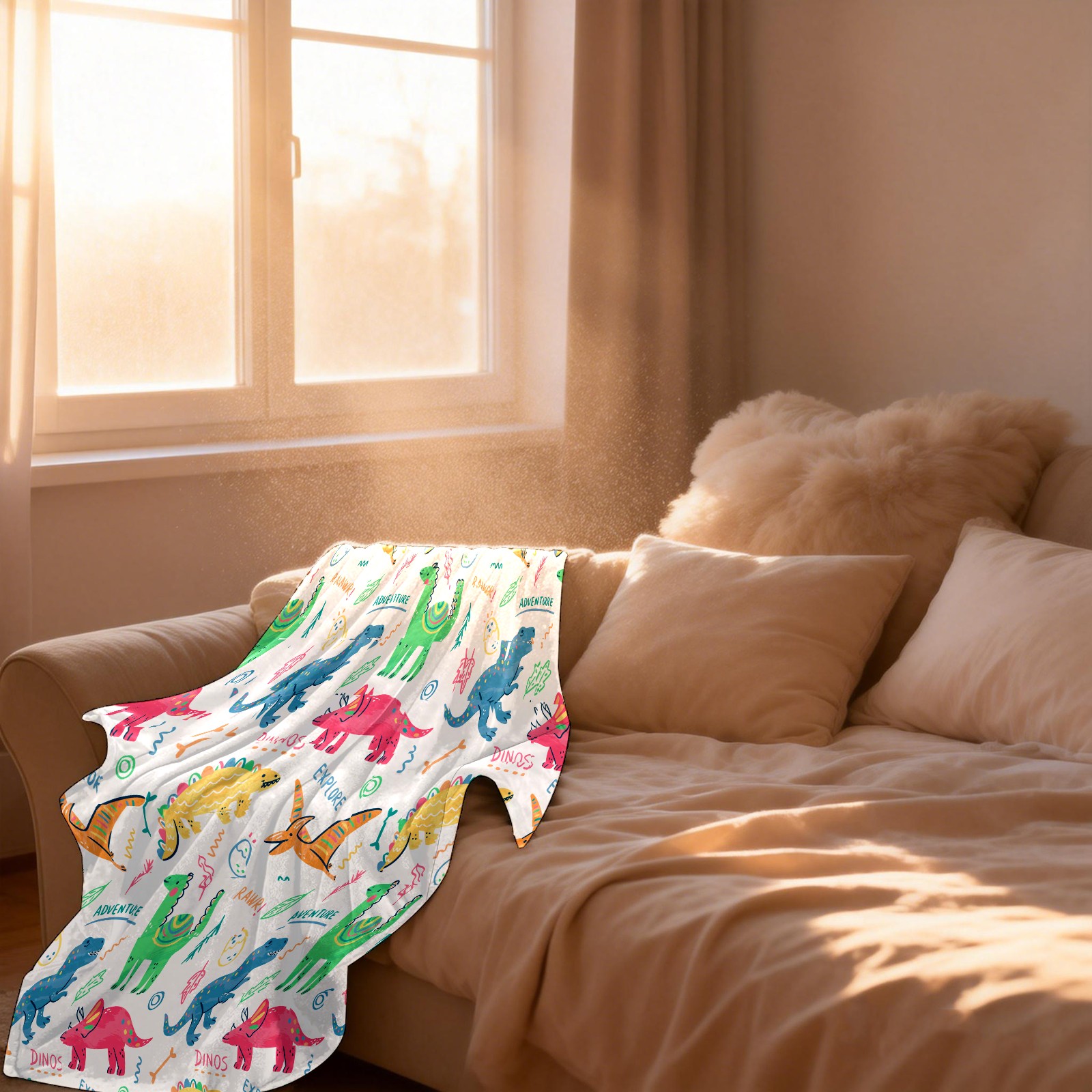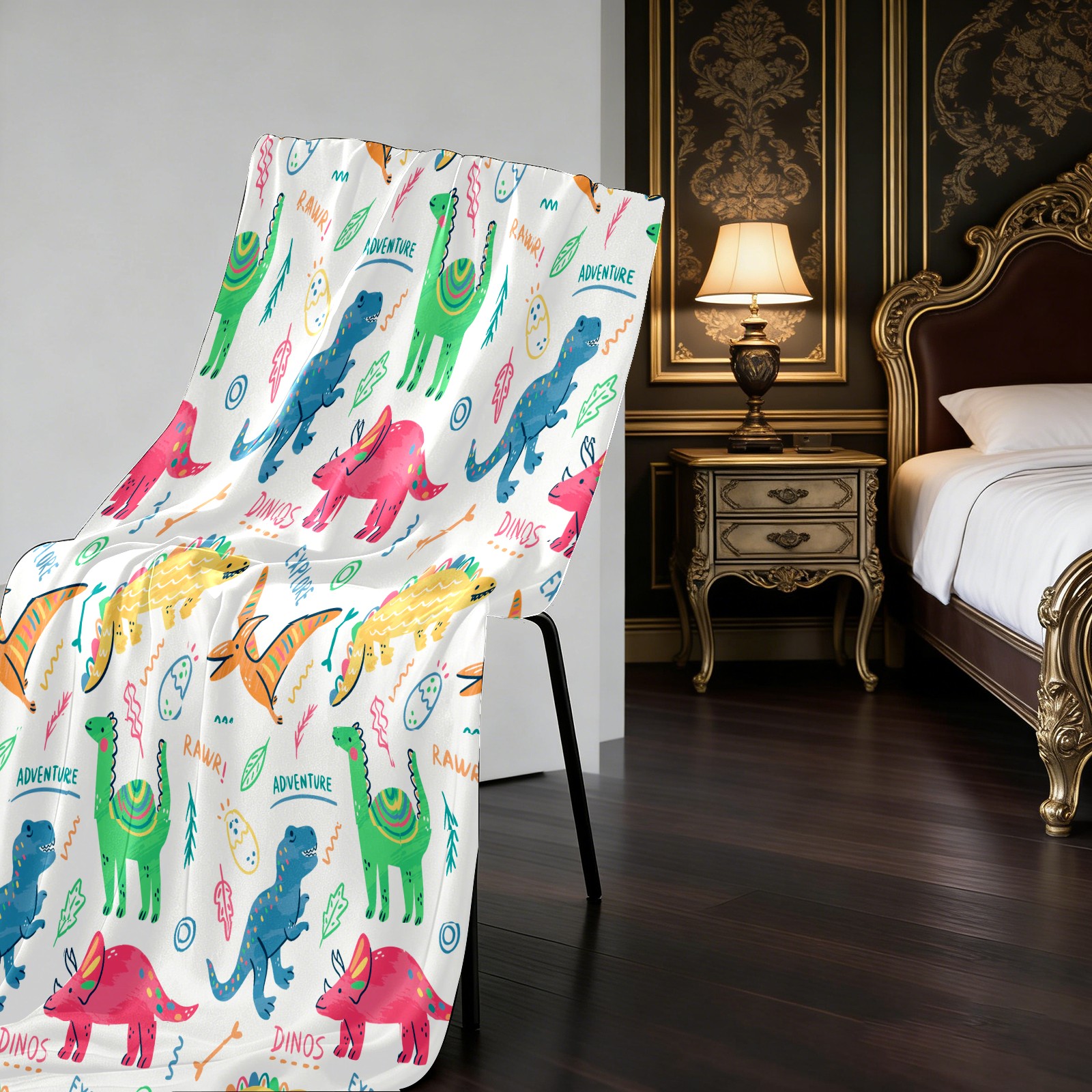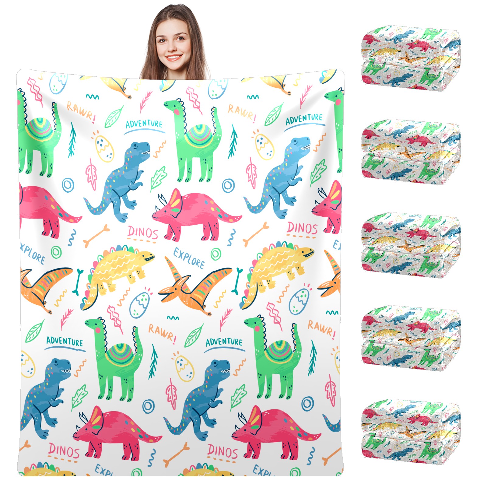 Colorful Doodle Dinosaurs Words Pattern