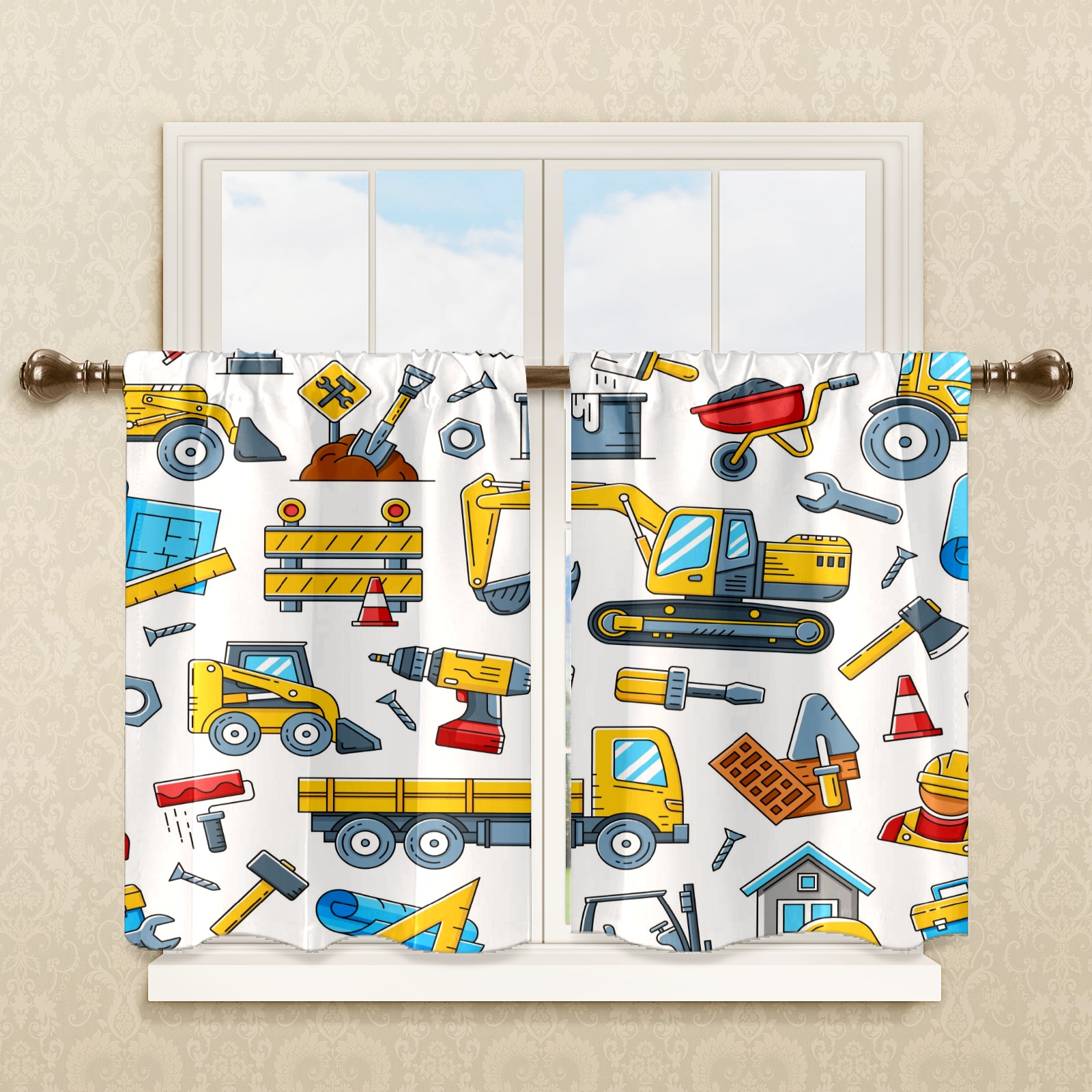 Шторы-панно для дома, декоративные драпировки для гостиной и спальни, легкие и прочные, Tractor Truck Construction Tools
