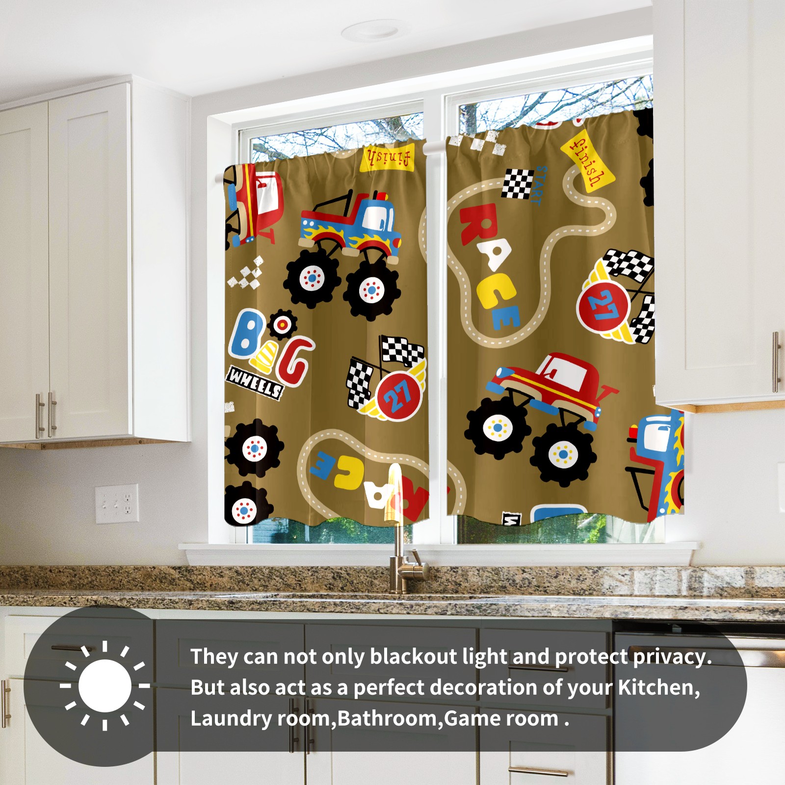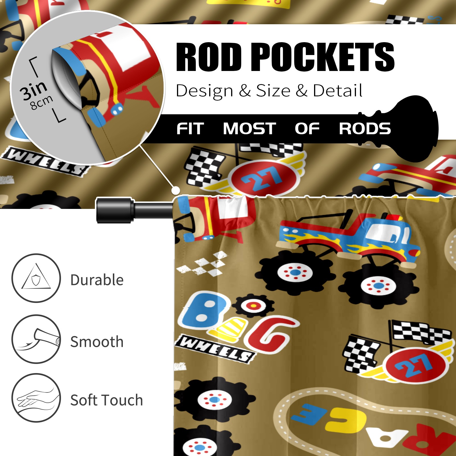 Шторы-панно для дома, декоративные драпировки для гостиной и спальни, легкие и прочные, Vintage Retro Cartoon Monster Trucks Pattern